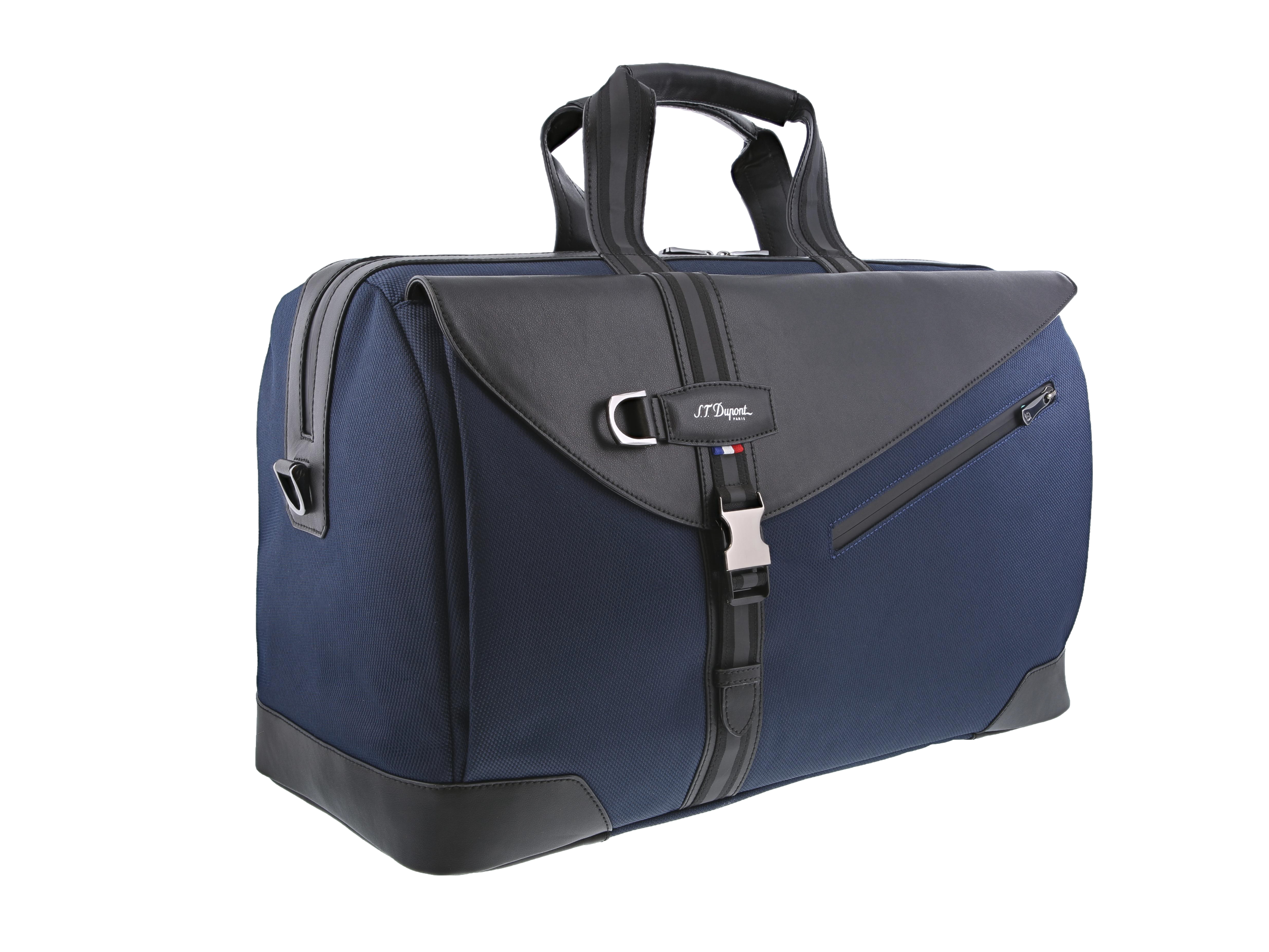 La collection Defi Millennium a été méticuleusement conçue avec les tissus les plus fins et les plus performants – un nylon bleu foncé résistant à l’eau et aux UV – pour assurer une durabilité inégalée et proposer des compagnons à la fois légers et robustes face aux nombreux imprévus de la vie. Les fermetures à glissière sont invisibles ; les poignées en cuir facilitent la prise en main ; les détails élégants de cuir noir rehaussent une coupe impeccable ; et les finitions sont soignées avec un élégant ruban noir et gris, des fermoirs en métal et le logo S.T. Dupont tricolore qui rappelle son origine française.