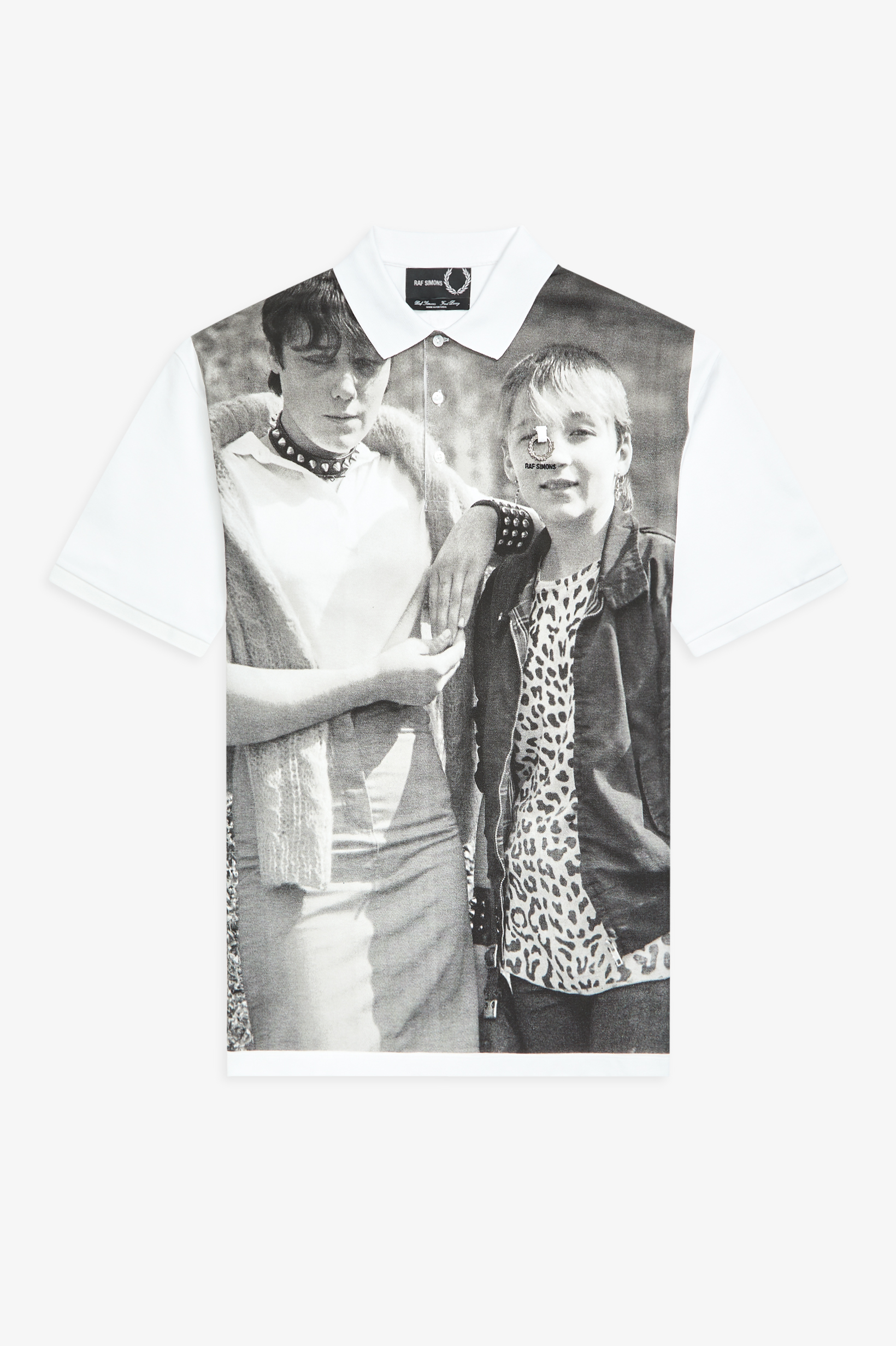 Reprenant les pièces iconiques de la marque anglaise, plusieurs détails signés y sont ajoutés : les épaules tombantes donnant du caractère aux sweat-shirts, l’application d’imprimés et de logo en décalé ; la collection explore le vêtement punk, son unicité et l’attitude qui s’en dégage. Un laurier argenté sert de signature aux polos, chemises, sweat-shirts et hoodies, et est surmonté d’une étiquette en coton, en dessous de laquelle le logo « Raf Simons » est délicatement brodé.