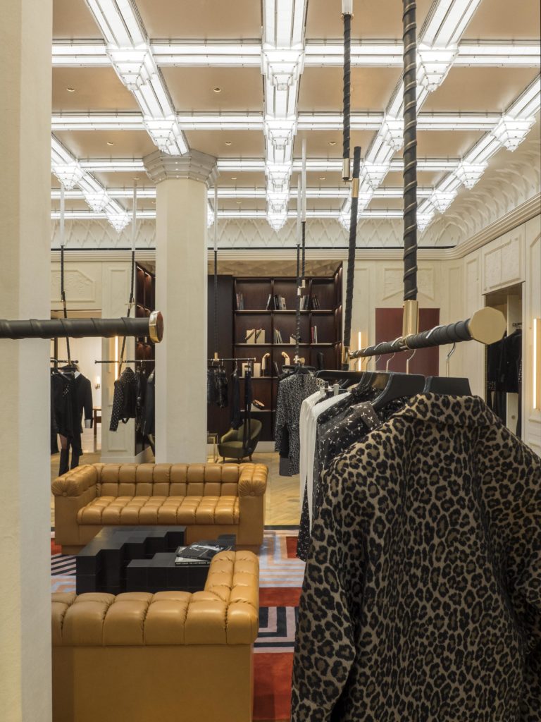 L’intérieur est signé studiolucaguadagnino, cabinet d’architecture d’intérieur lancé par Luca il y a de cela trois ans. Les moindres recoins de cette surface de 372 m² sont conçus pour refléter l’inspiration et les émotions qui caractérisent le label Redemption. Luca Guadagnino et son équipe ont débuté ce projet de boutique phare en étudiant des photographies des Rolling Stones enregistrant un album dans une maison de la Côte d’Azur, dans les années 1970. On pouvait voir sur ces images une atmosphère vaporeuse, des intérieurs luxueux et des motifs intemporels aux détails parfaitement travaillés.
