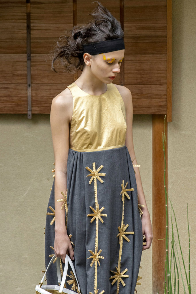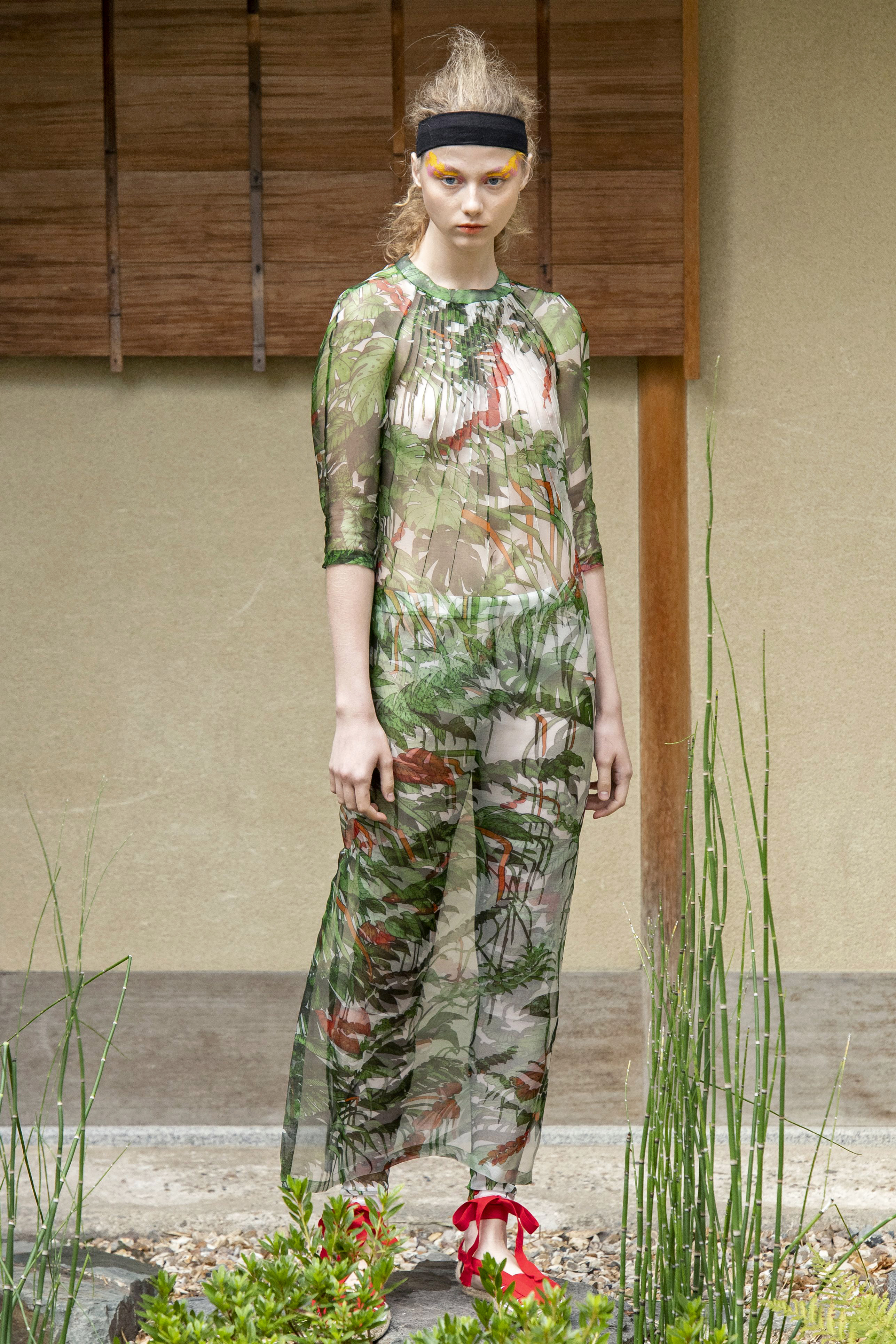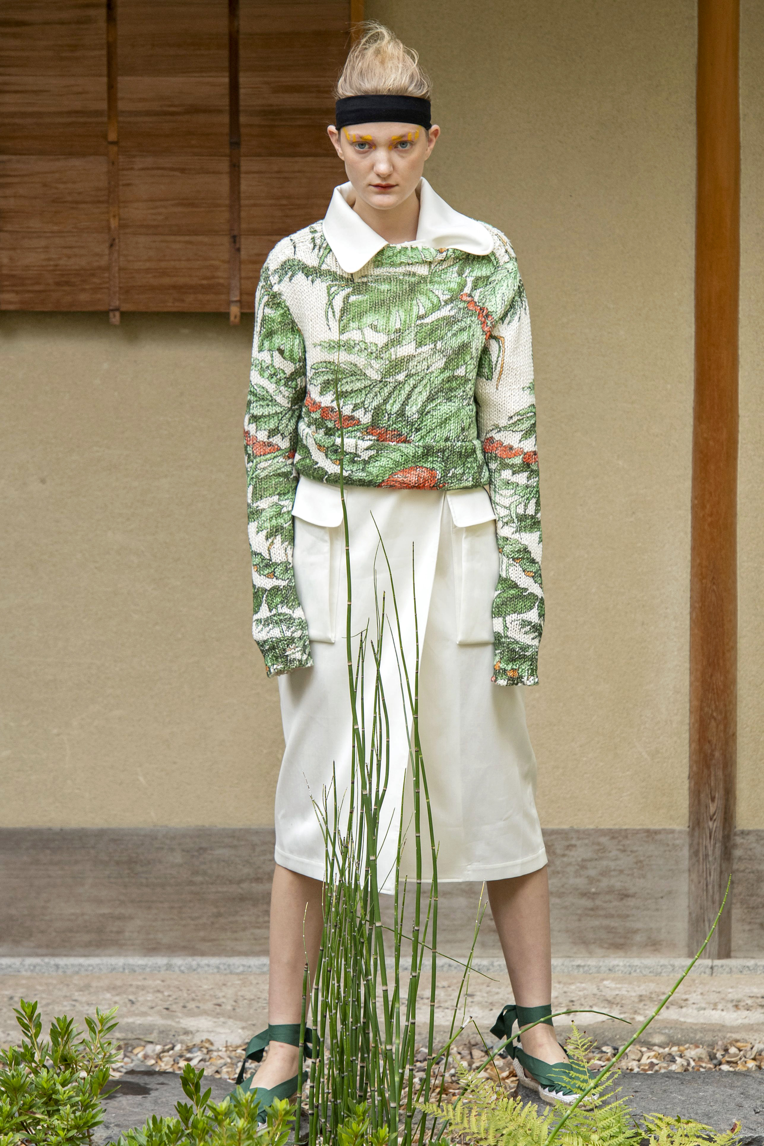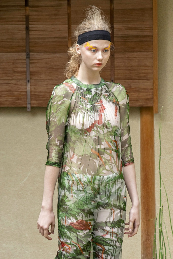 La plus parisienne des japonaises avec l’artiste Cyprien Chabert a recrée une nature aussi luxuriante que réjouissante ou des plantes et fleurs de tous les continents, viennent caresser d’un voile de tulle, effleurer d’un souffle d’organza, réchauffer d’une maille ou protéger d’un piqué de coton.