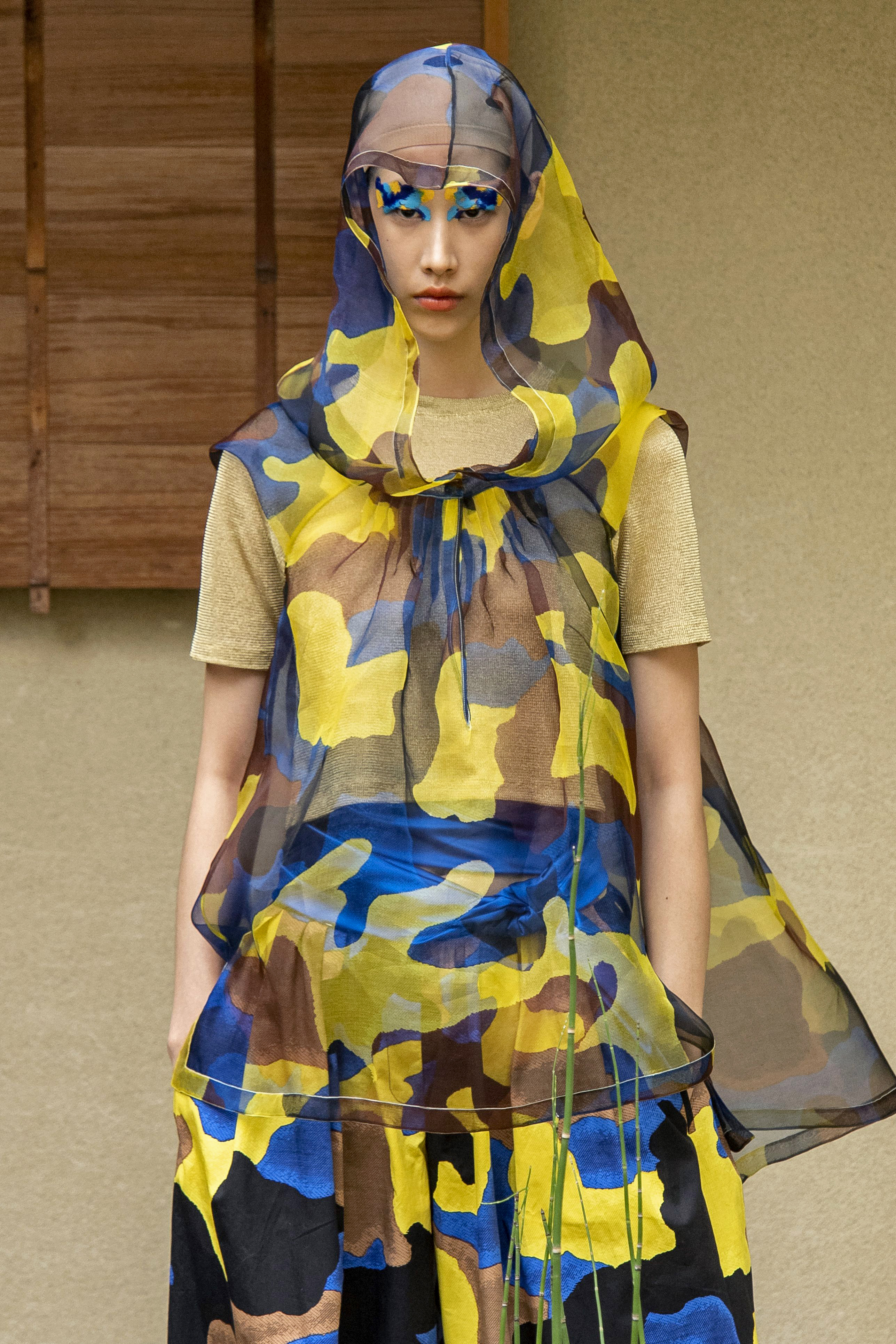 Colorée, exotique, fleurie Junko Shimada surfe sur les imprimés évoquant ou inspirant des sensations, des visions voisines de celle d’un état psychédélique.