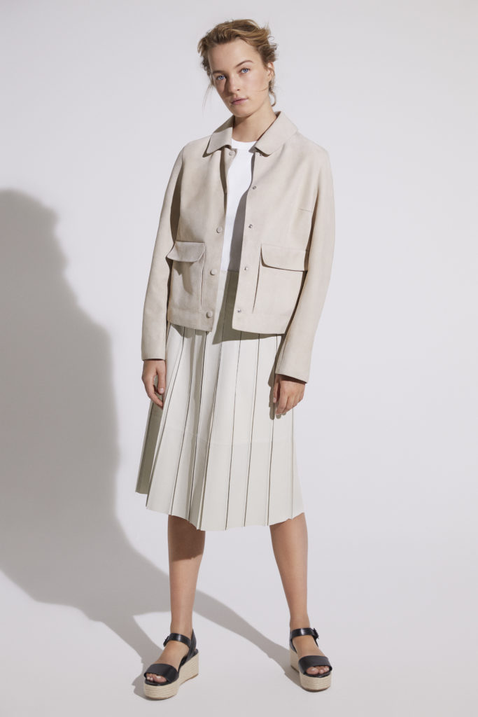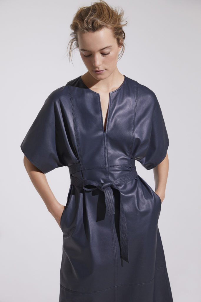Matière phare de cette saison, le cuir joue la carte de l’ultralégèreté, perpétuant la tradition initiée par la Maison dans ses récentes collections de Prêt-à-porter.