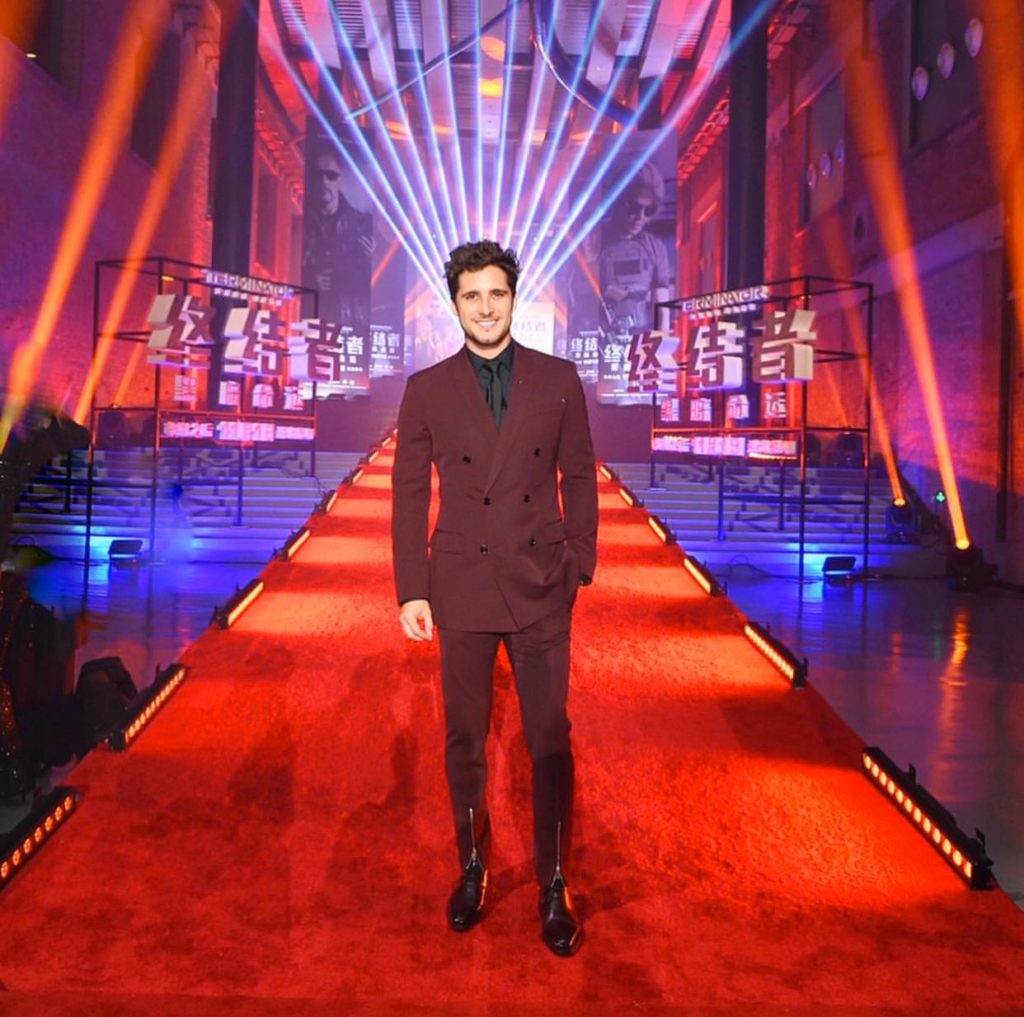 Diego Boneta habillé en Berluti pour la première du film Terminator, en Chine.