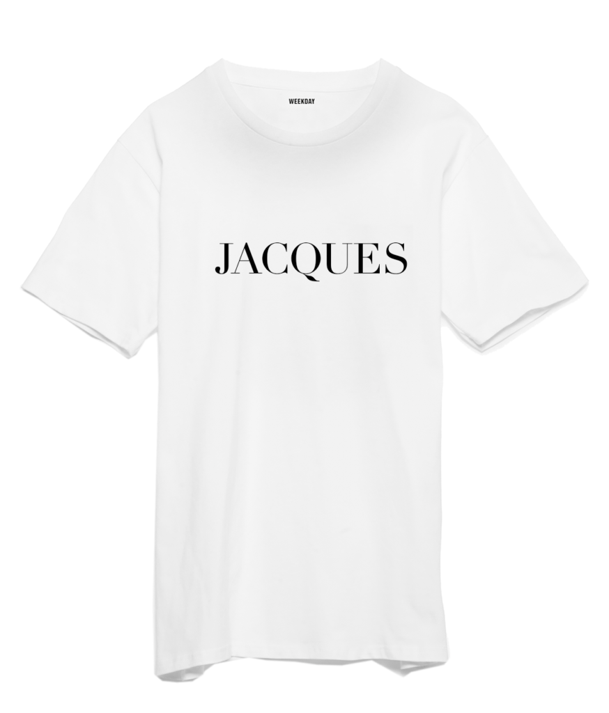 WEEKDAY fait un hommage à notre cher ancien président Jacques Chirac ainsi qu’à tous les Jacques de ce monde. Le t shirt en version blanche ou noire est disponible dès maintenant à faire flocker sur place à la boutique du 121 rue Vieille du Temple, 75003.