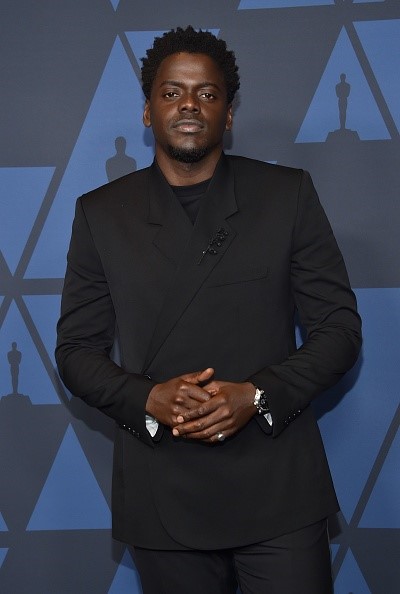Daniel Kaluuya wore a Dior men’s collection black mohair wool « tailleur oblique » suit, a classic black cotton t-shirt and a black « Lilly of the Valley » brooch.