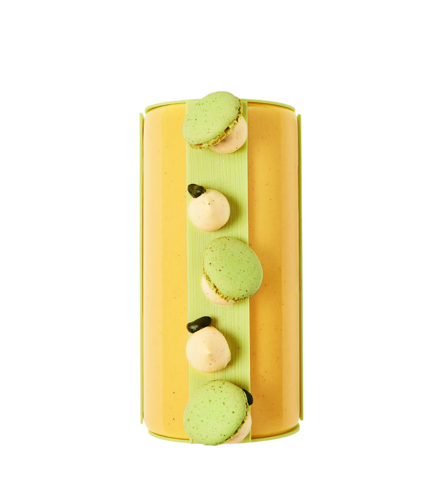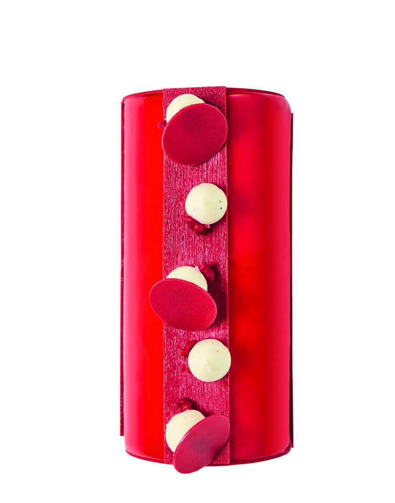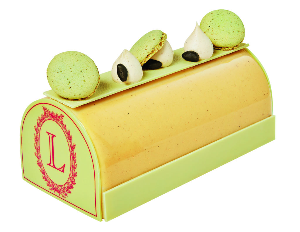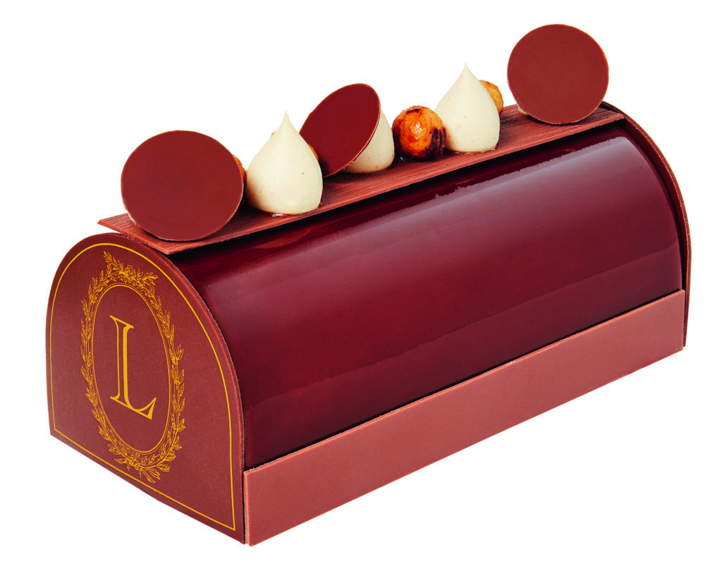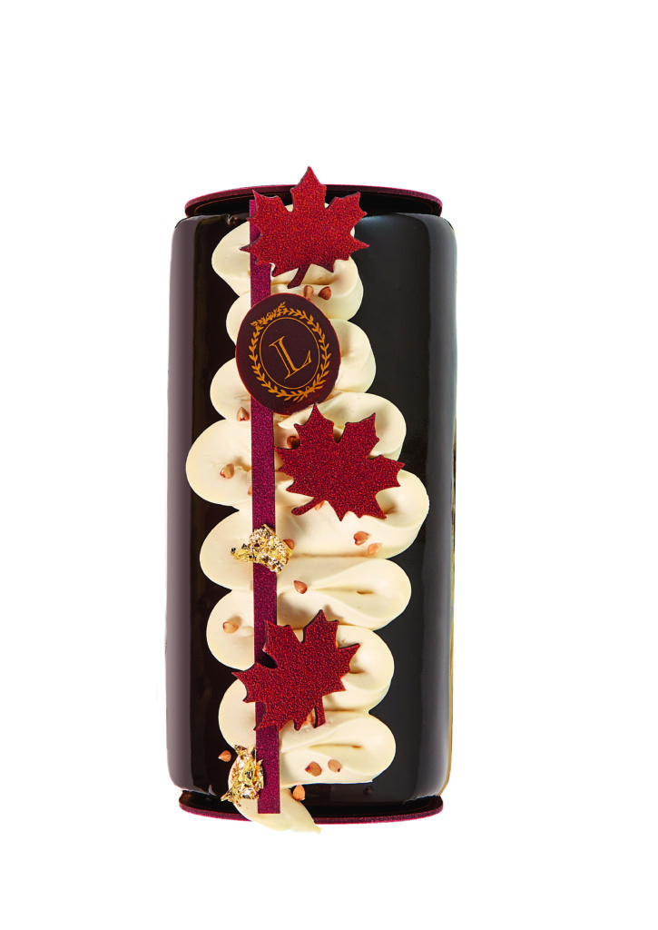Cette année la Maison Ladurée collabore avec l’étoile montante de la pâtisserie canadienne Patrice Demers qui nous fait voyager sur sa terre natale pour passer un réveillon aux saveurs typiquement québécoise avec une bûche légère qui allie la douceur du sirop d’érable et l’acidité de la canneberges dans une mousse au chocolat et des macarons parfum sirop d’érable et noix de pécan ou parfum camerise.