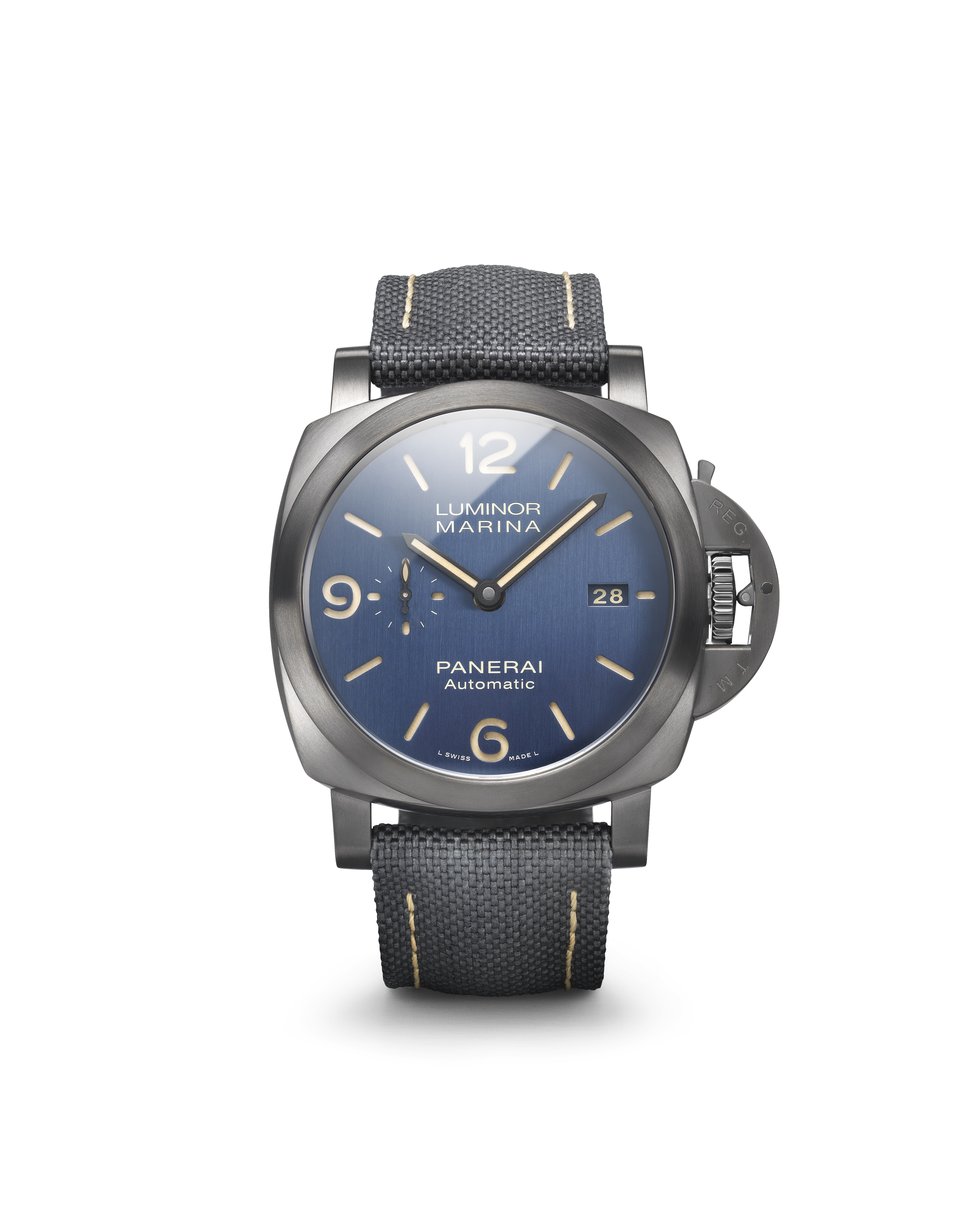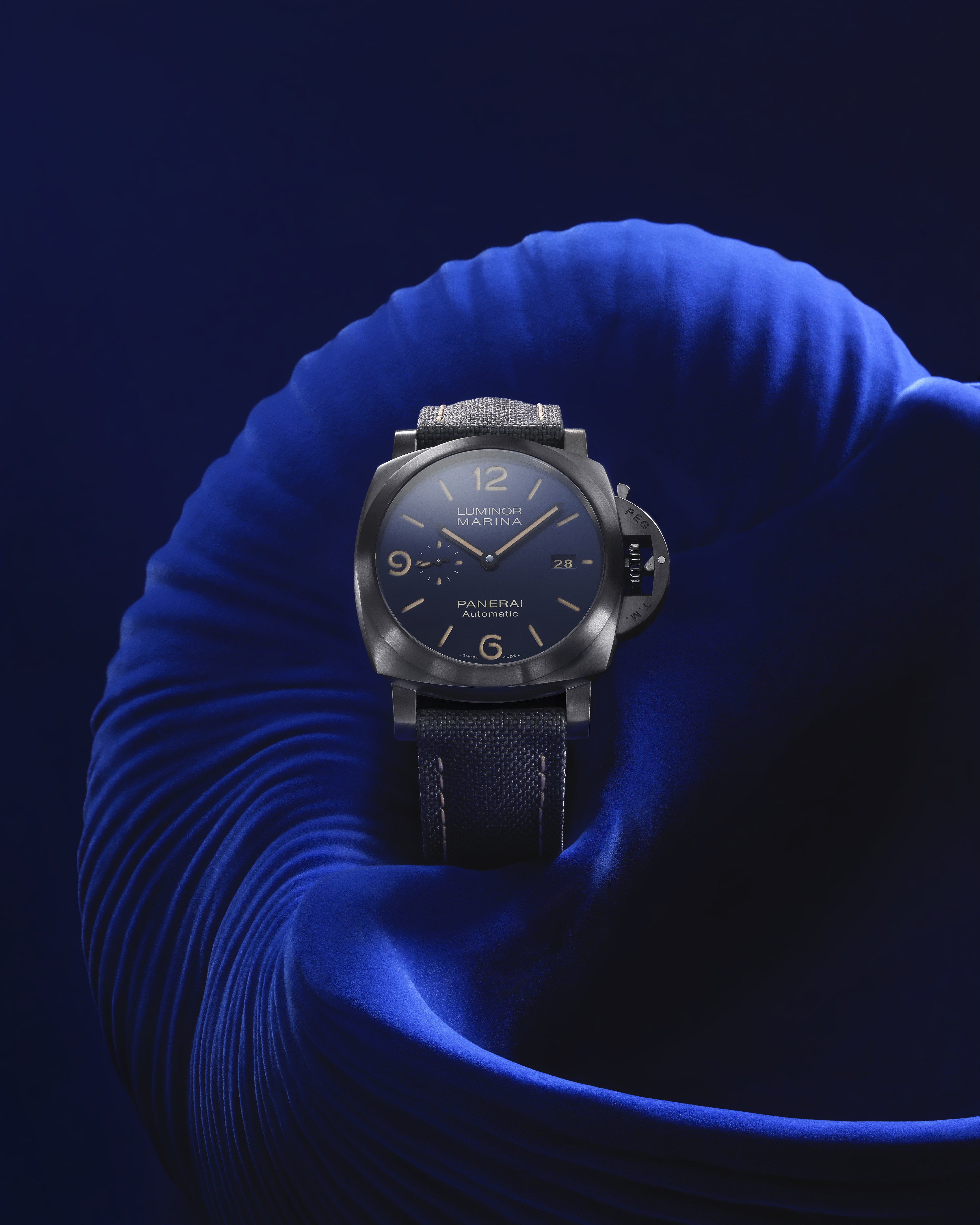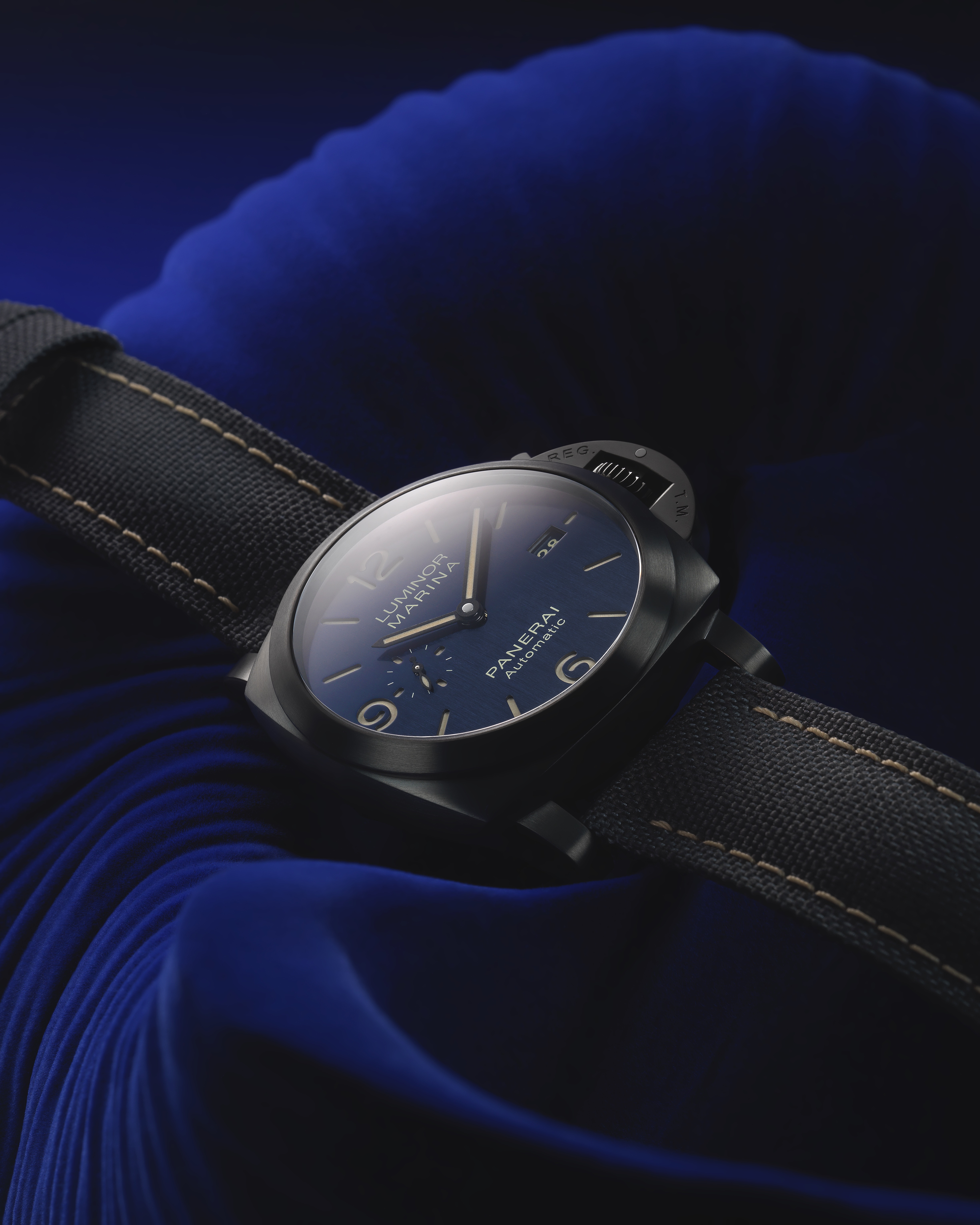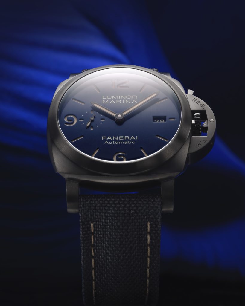 Cette montre est disponible depuis le 24 octobre 2019 en exclusivité dans les boutiques Bucherer ainsi que sur son site e-commerce, www.bucherer.com PANERAI, Luminor Marina Bucherer BLUE, Titanio/DLC, 44 mm, mouvement