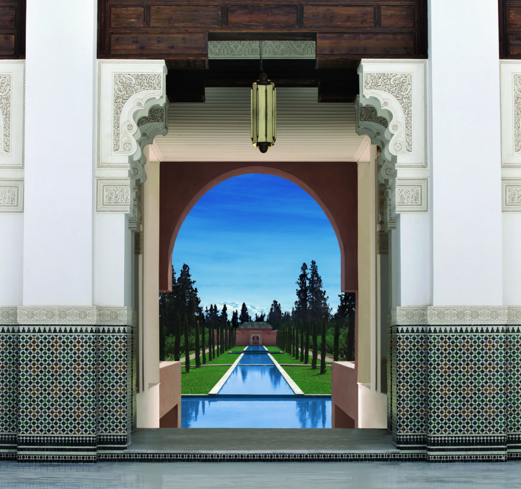 Le design de ce resort de luxe s’inspire de la magnifique architecture marocaine. La cour du bâtiment principal reprend la forme de l’historique Medersa Ben Youssef, construite au XIVe siècle, l’un des monuments les plus célèbres de Marrakech.