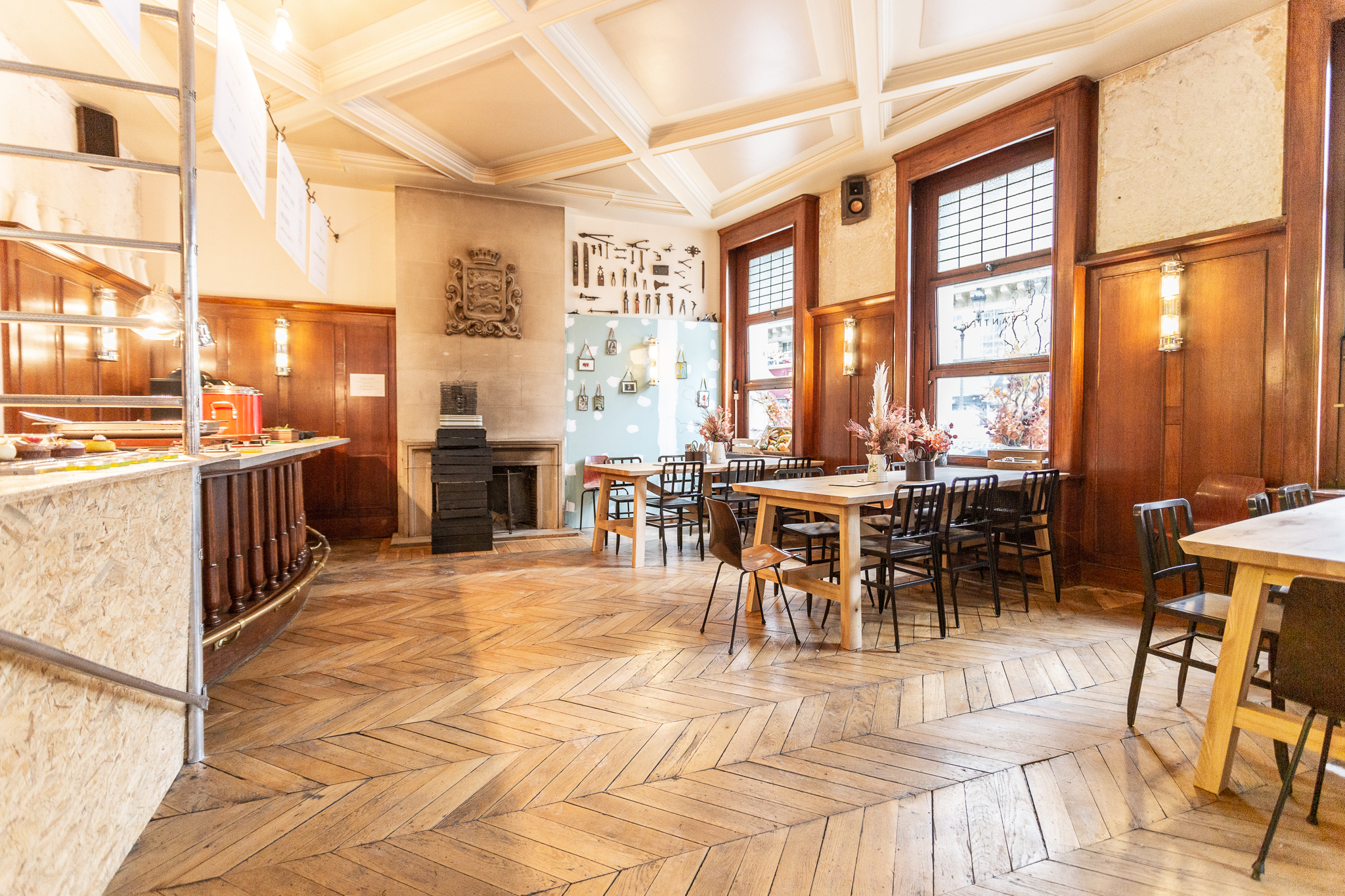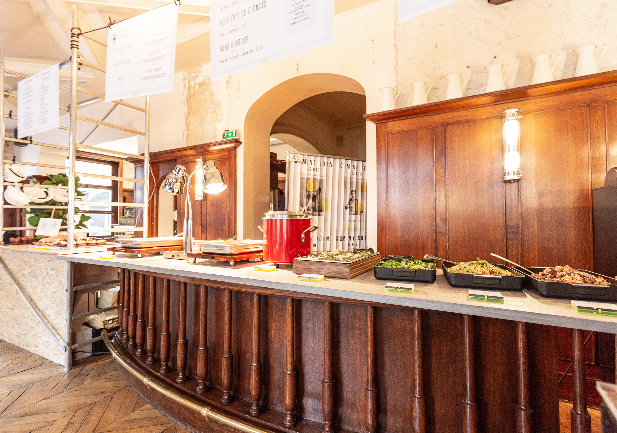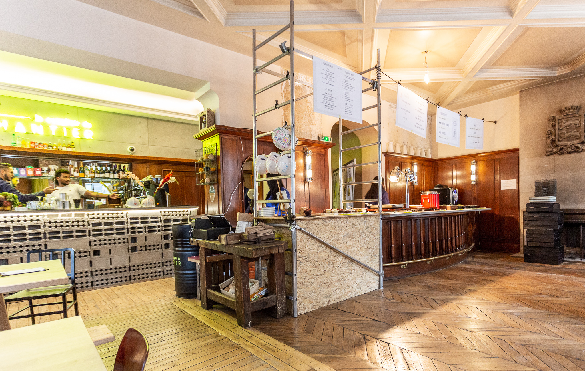Finies les traditionnelles gamelles du maçon ! Place à une offre centrée sur la naturalité et le partage dans un décor sur deux salles mettant en lumière des matériaux bruts et des éléments d’ameublement inspirés de l’univers du chantier : grand buffet sous forme d’échafaudage, vaisselle en métal, tuiles de PVC, cagettes en bois, panneaux de signalisation… La deuxième salle à manger s’inspire des anciennes salles de repos d’ouvriers des années 70 avec une touche de kitsch… En bref, un nouvel hotspot food qui joue sur les contrastes et prend à contre-pied le concept de cantine de chantier pour en réinventer les codes et les adapter aux préoccupations actuelles des consommateurs.