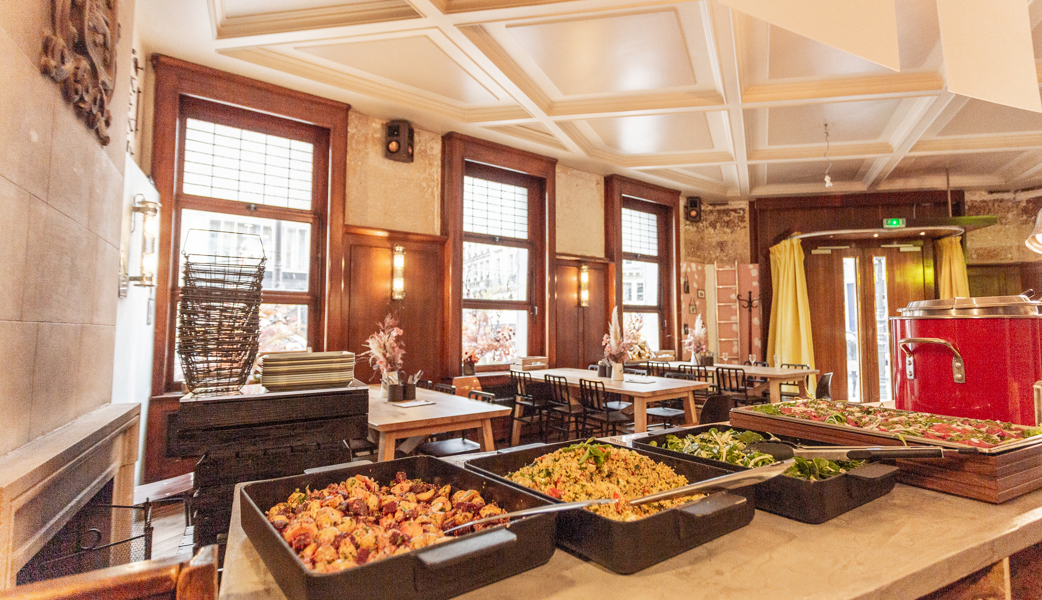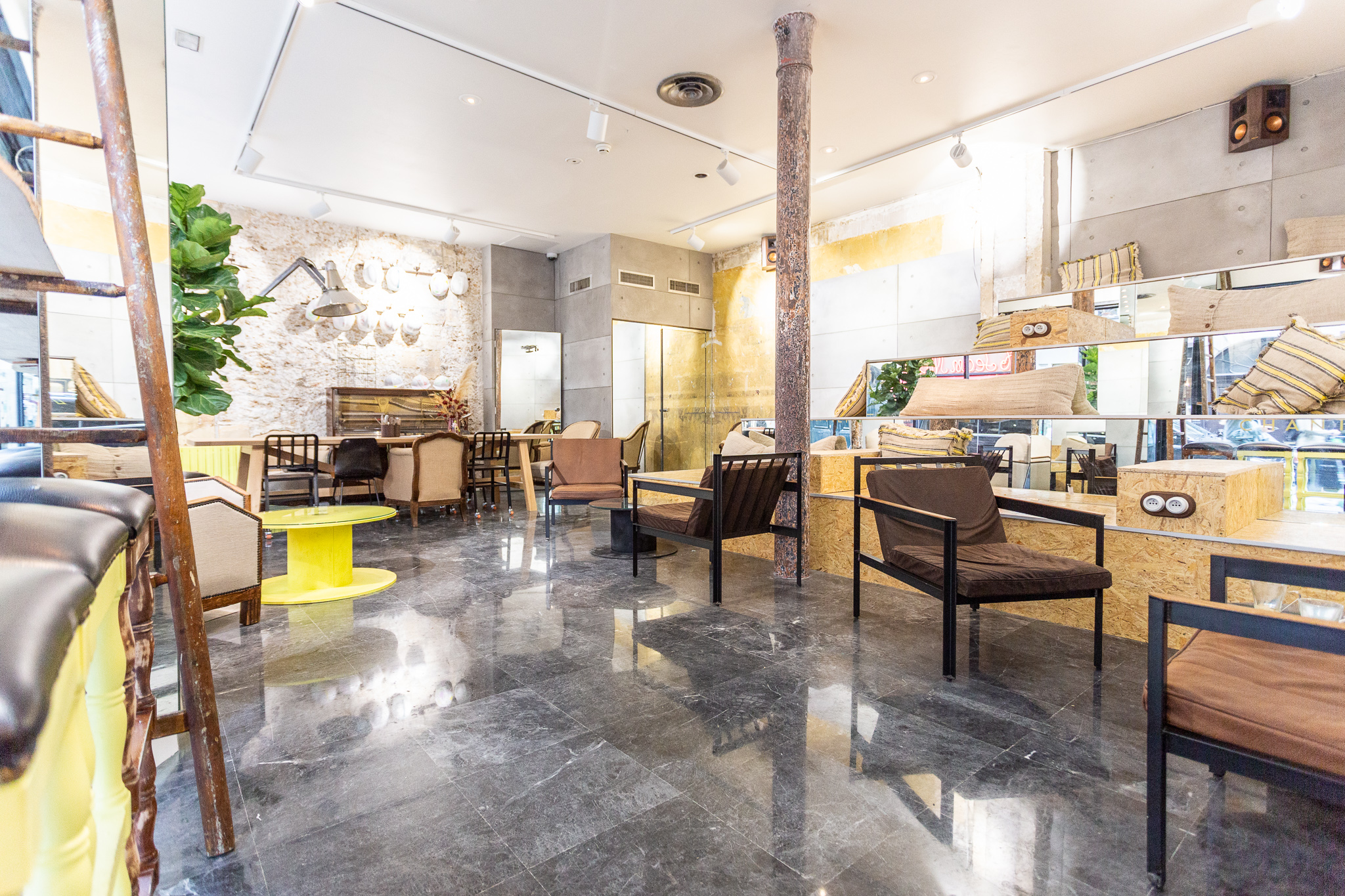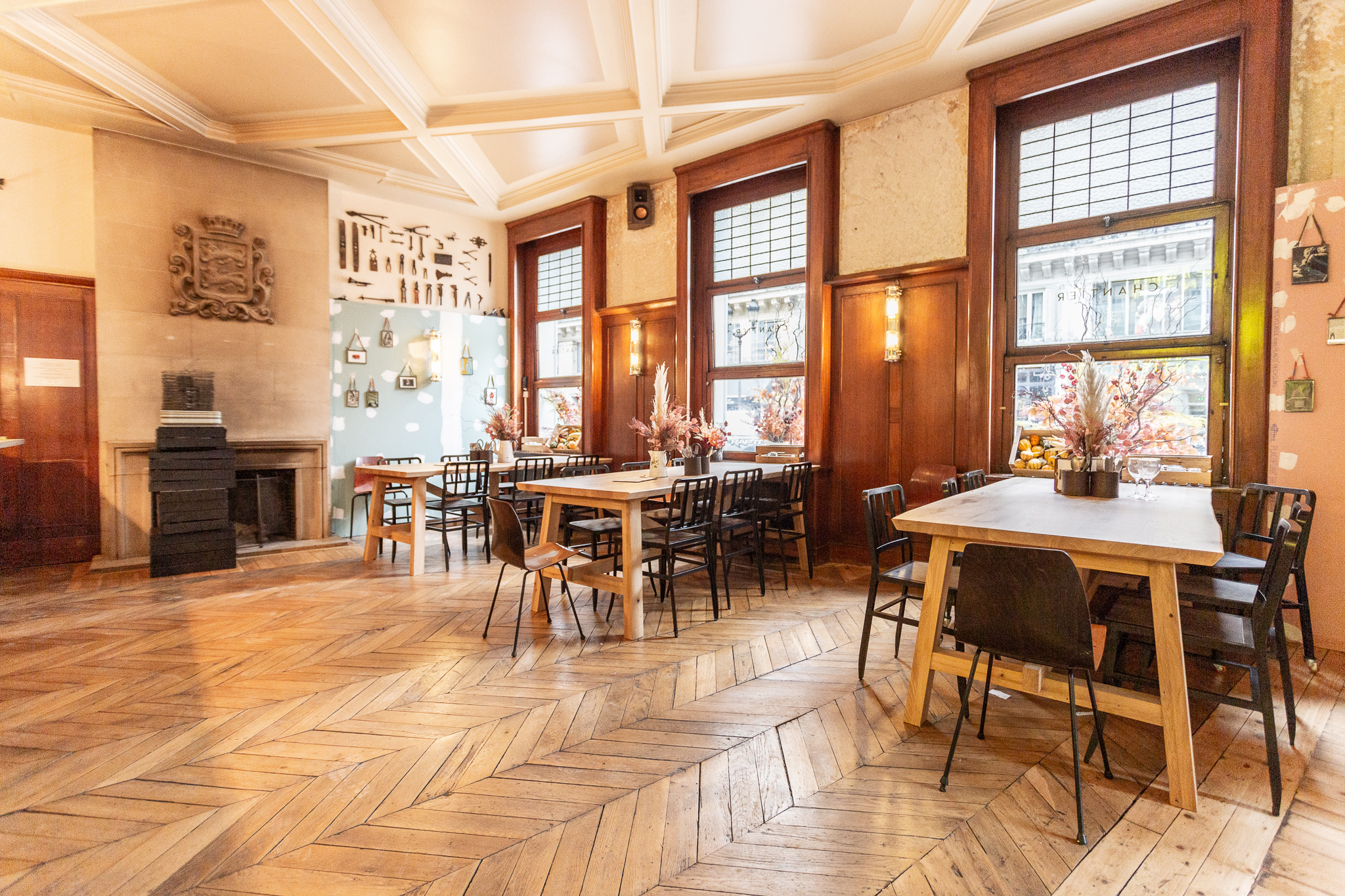 Finies les traditionnelles gamelles du maçon ! Place à une offre centrée sur la naturalité et le partage dans un décor sur deux salles mettant en lumière des matériaux bruts et des éléments d’ameublement inspirés de l’univers du chantier : grand buffet sous forme d’échafaudage, vaisselle en métal, tuiles de PVC, cagettes en bois, panneaux de signalisation… La deuxième salle à manger s’inspire des anciennes salles de repos d’ouvriers des années 70 avec une touche de kitsch… En bref, un nouvel hotspot food qui joue sur les contrastes et prend à contre-pied le concept de cantine de chantier pour en réinventer les codes et les adapter aux préoccupations actuelles des consommateurs.