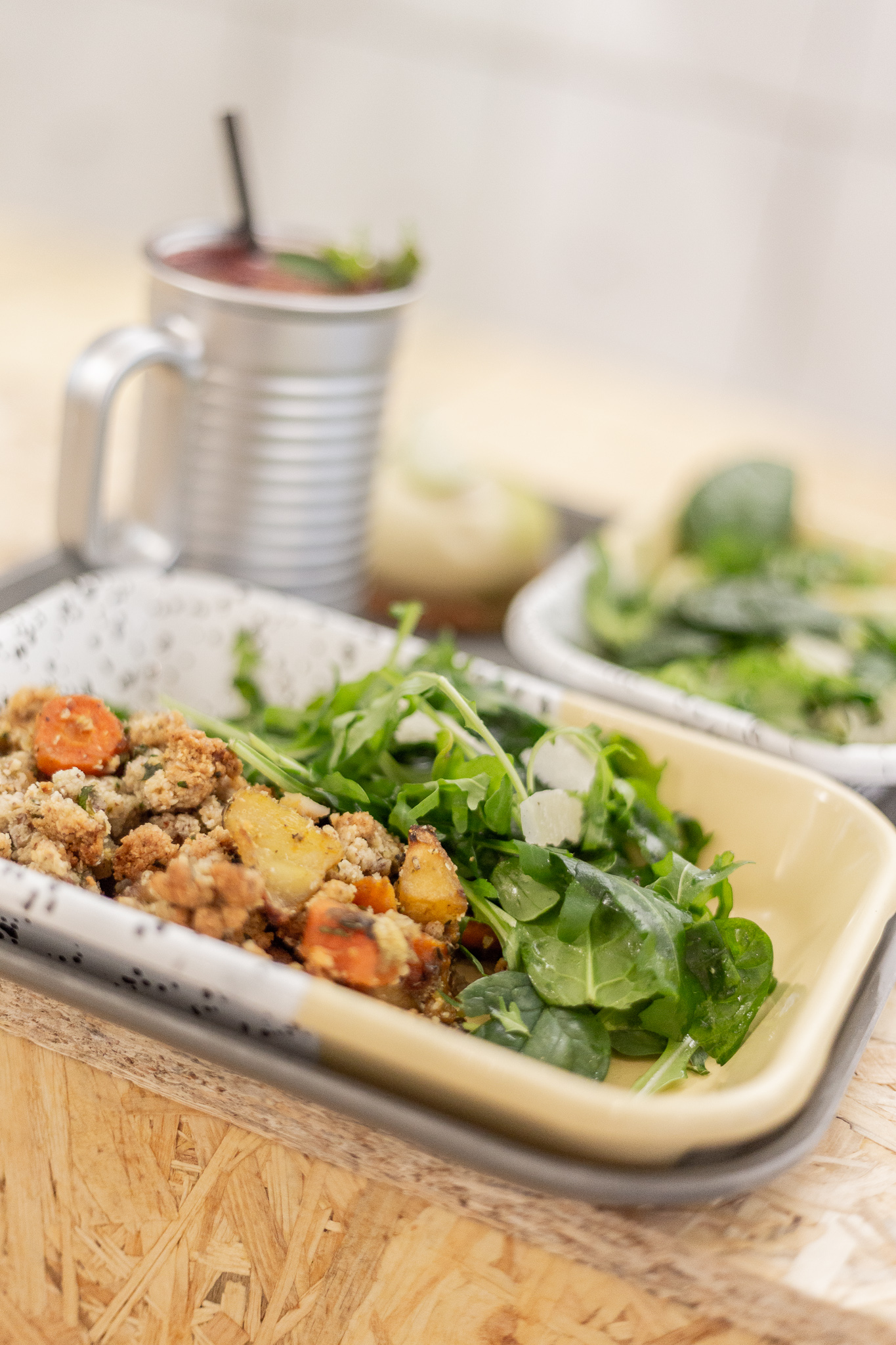 A la carte : Smoothies & jus maison, Milshake Vegan, Salades fraîches, soupe & plats chauds ainsi que des pâtisseries végétales