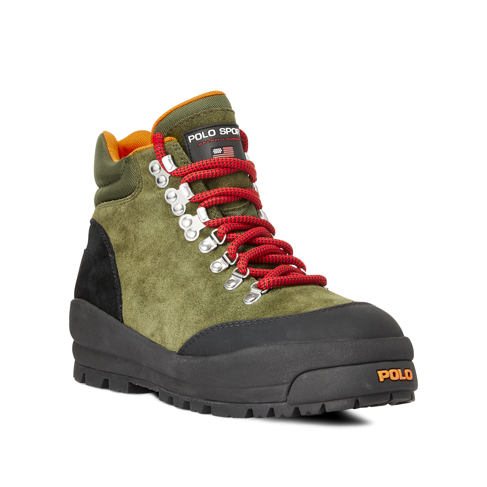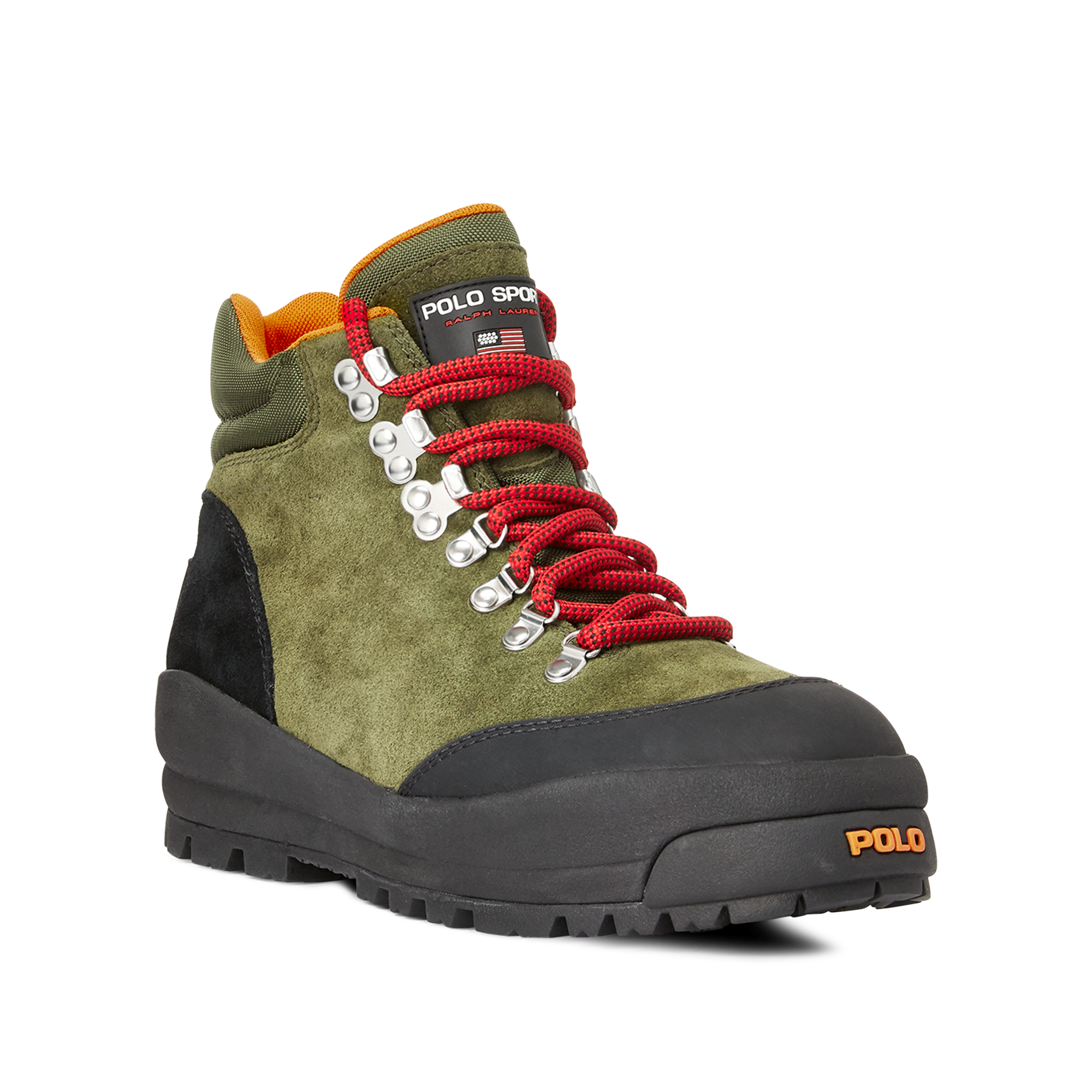 Inspirée de la collection pour sports d’hiver hommes et femmes proposée initialement en 1998, la série Polo Sport Outdoors réédite et revisite ces tenues d’extérieur emblématiques. Les motifs et logos vintage Polo Sport accompagnent des imprimés hérités des années 1990 sur les vestes, les pantalons, les pulls, les accessoires et les chaussures. Un motif tout droit tiré des « guides des cours d’eau » se décline dans de nouvelles couleurs à la fois sur un anorak et un poncho, créations phares de cette collection capsule. Quant aux très prisées chaussures de randonnée Polo Sport des années 1990, elles reviennent dans un daim rouge foncé et vert, tandis que des lunettes de soleil Polo Sport complètent la collection pour la première fois. Le vert militaire est présent à la fois sur la veste sans manche et le pantalon de randonnée, le sac à dos et le chapeau de randonnée. Autant de pièces ornées de patches Polo Sport et qui mettent en valeur le côté fonctionnel de la collection originale.