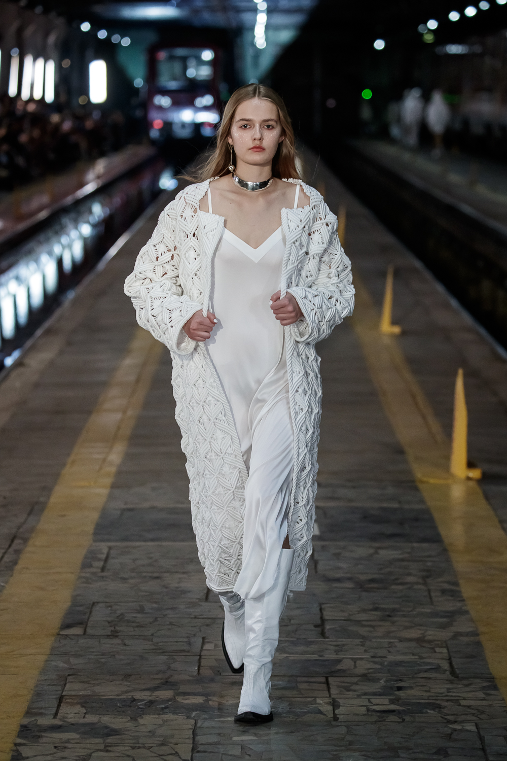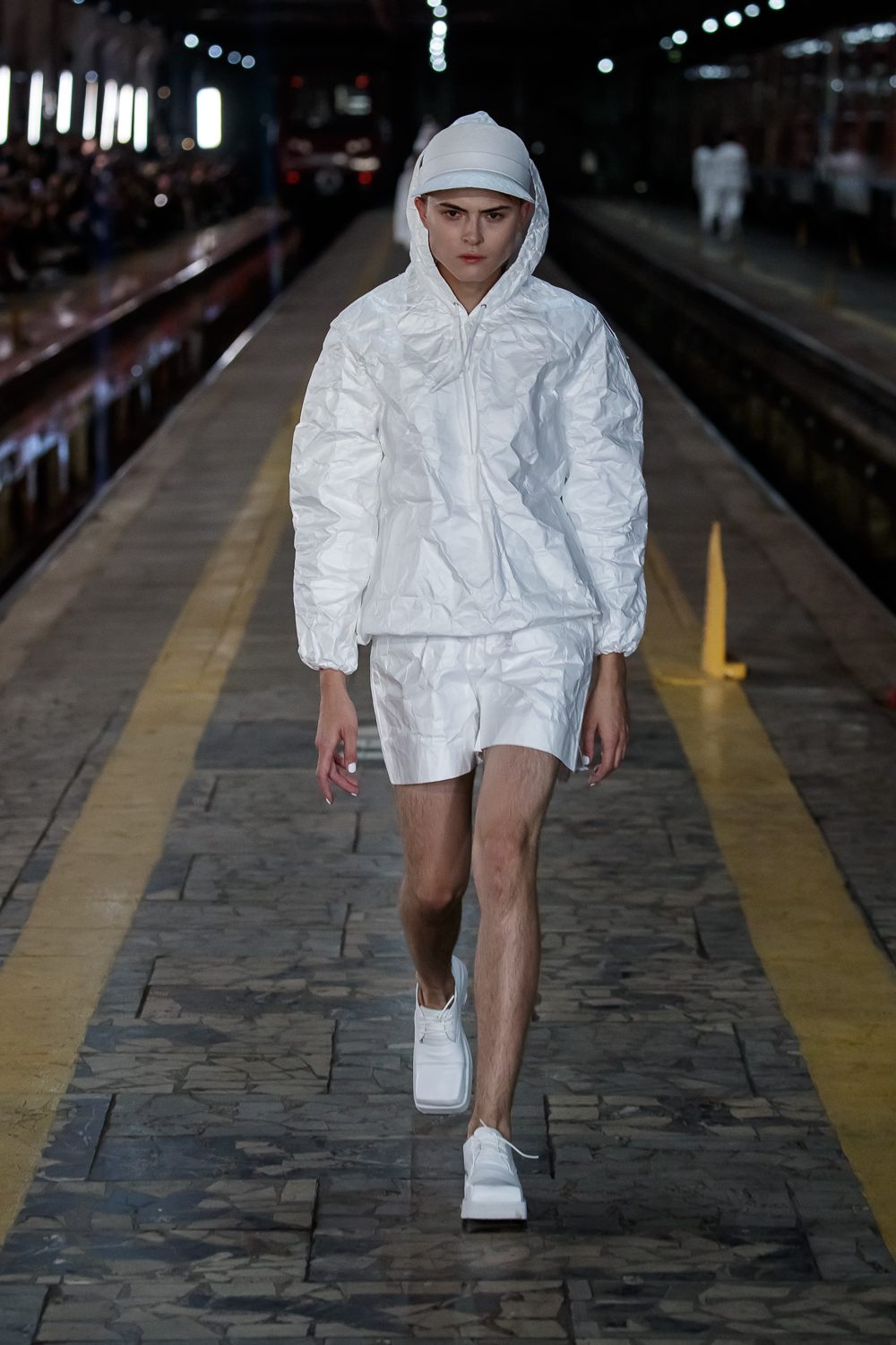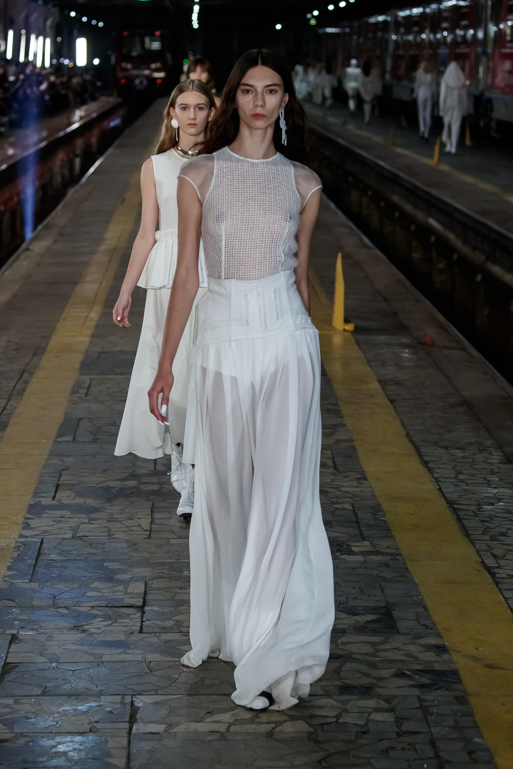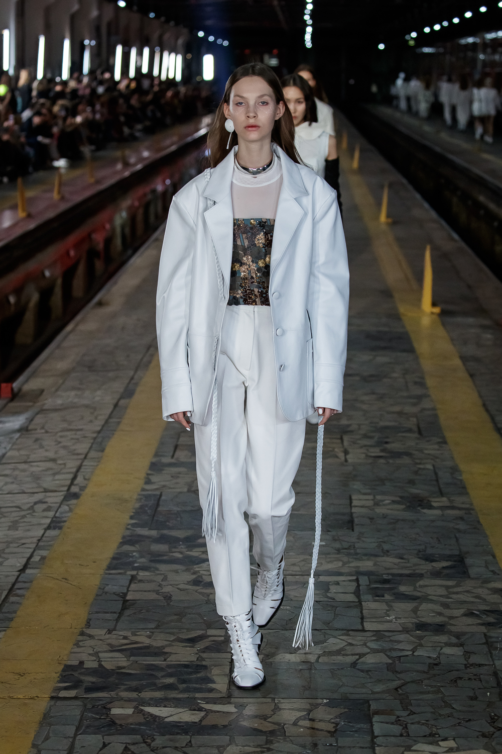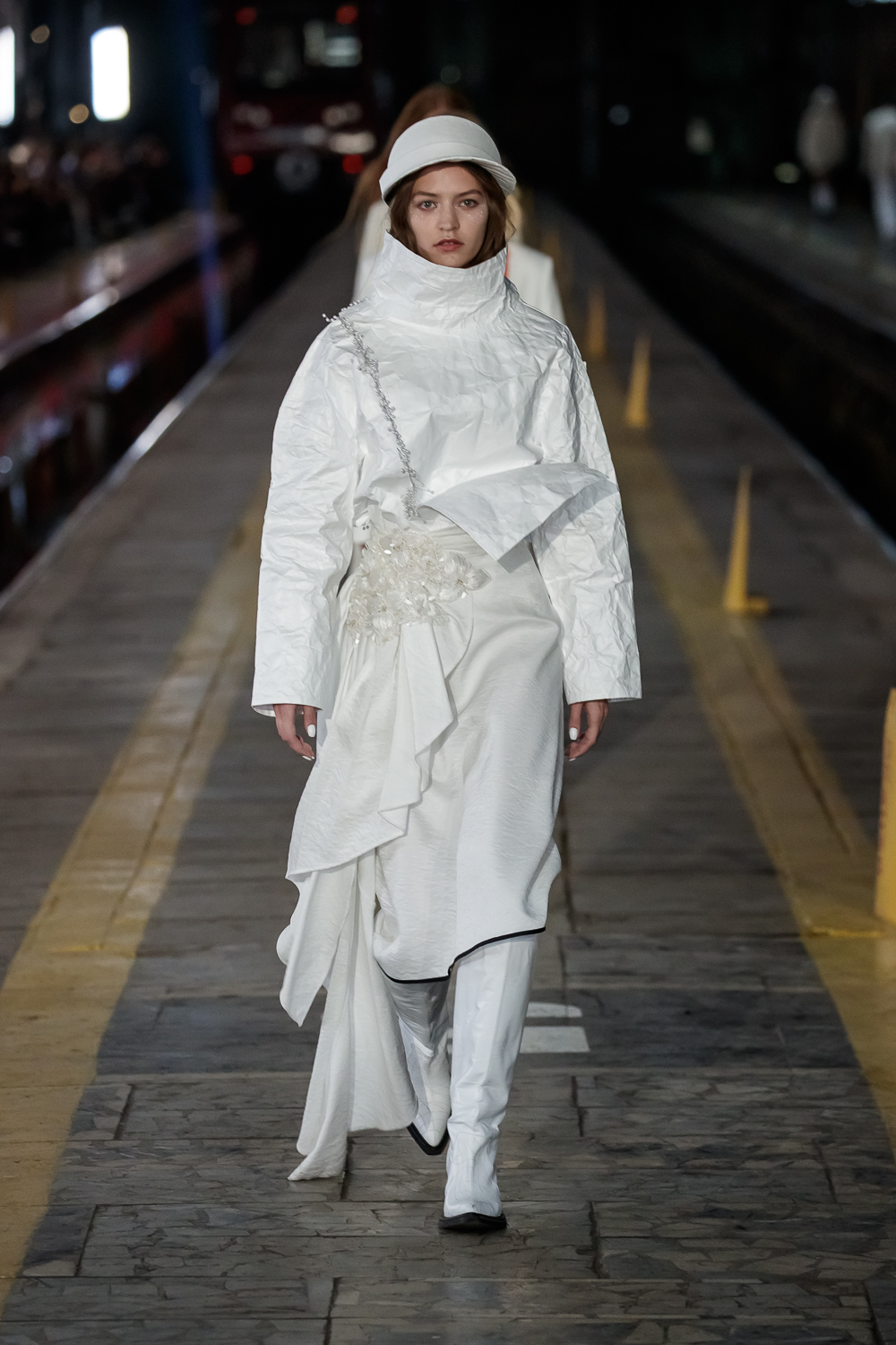 During the Mercedes – Benz Fashion Week Russia, the Russian Designer presented his SS20 Collection right on the railway of the train station in the heart of Moscow.