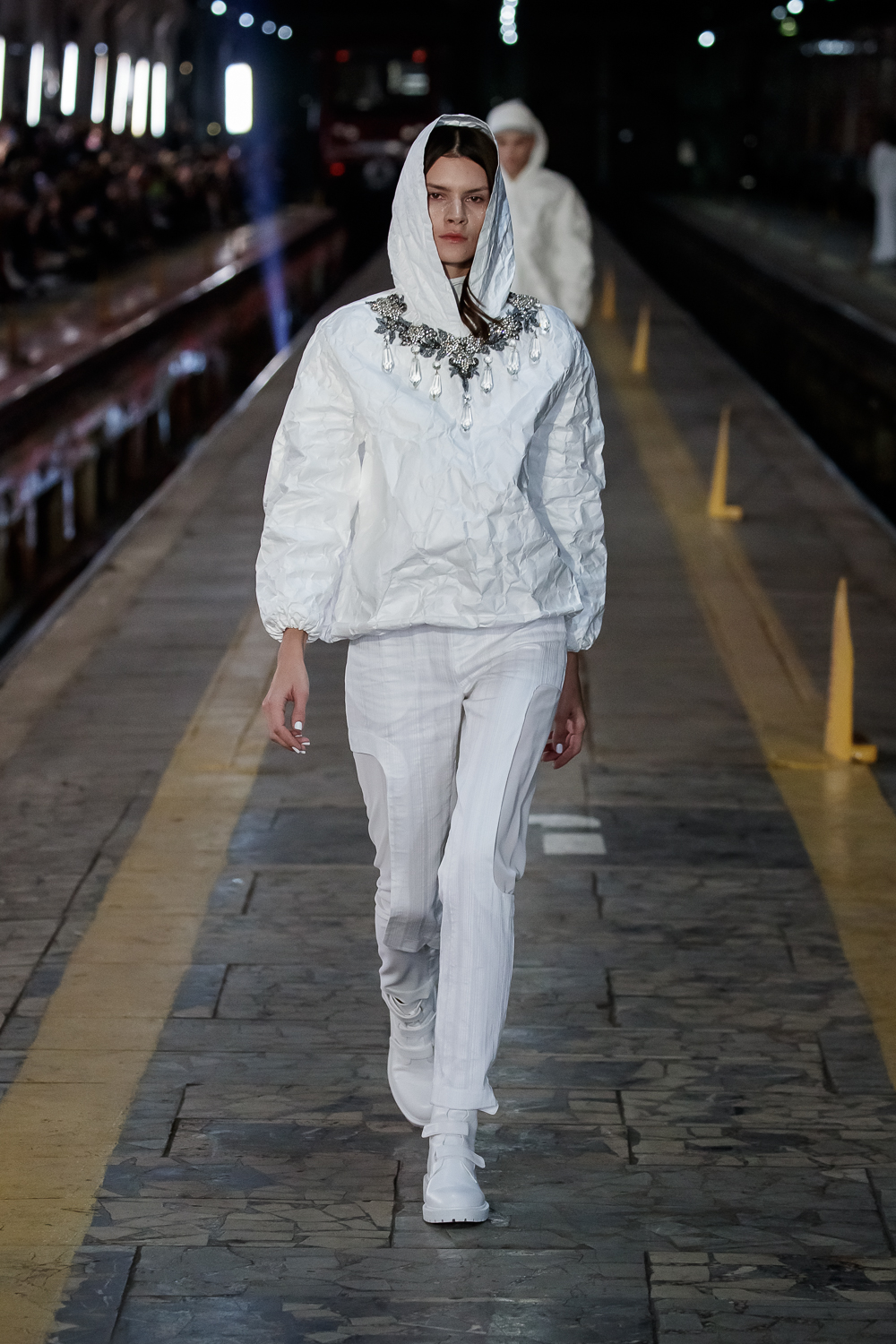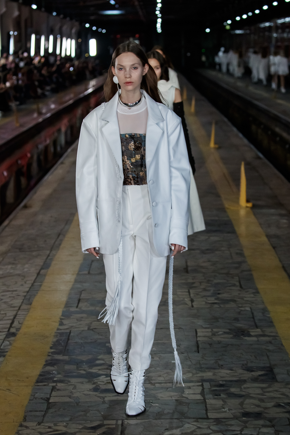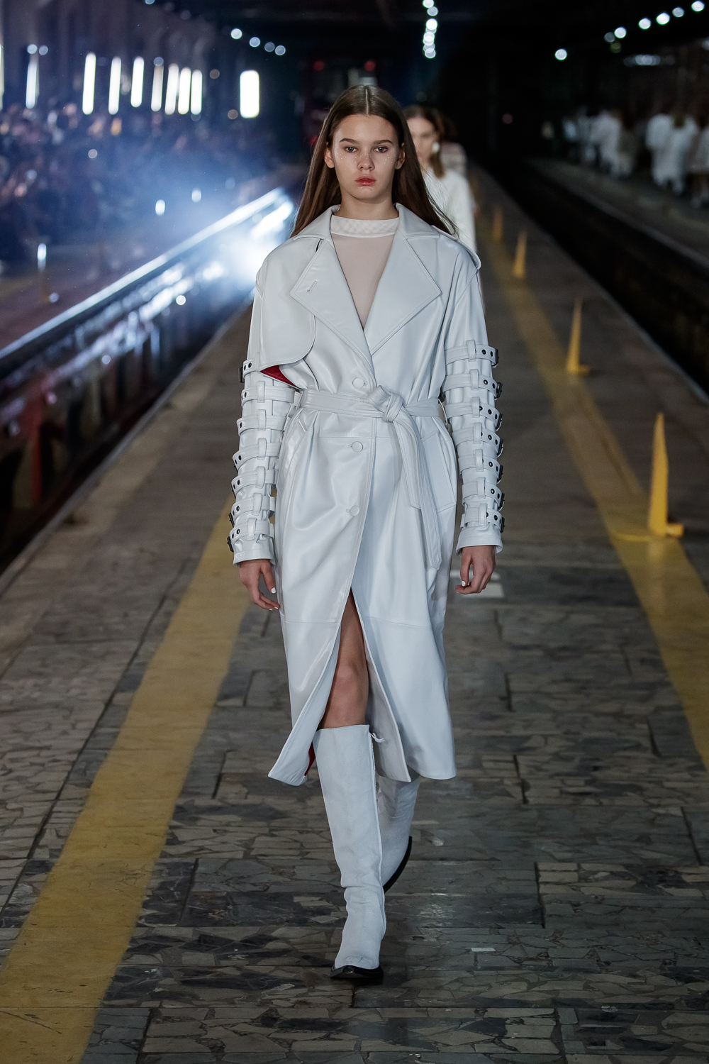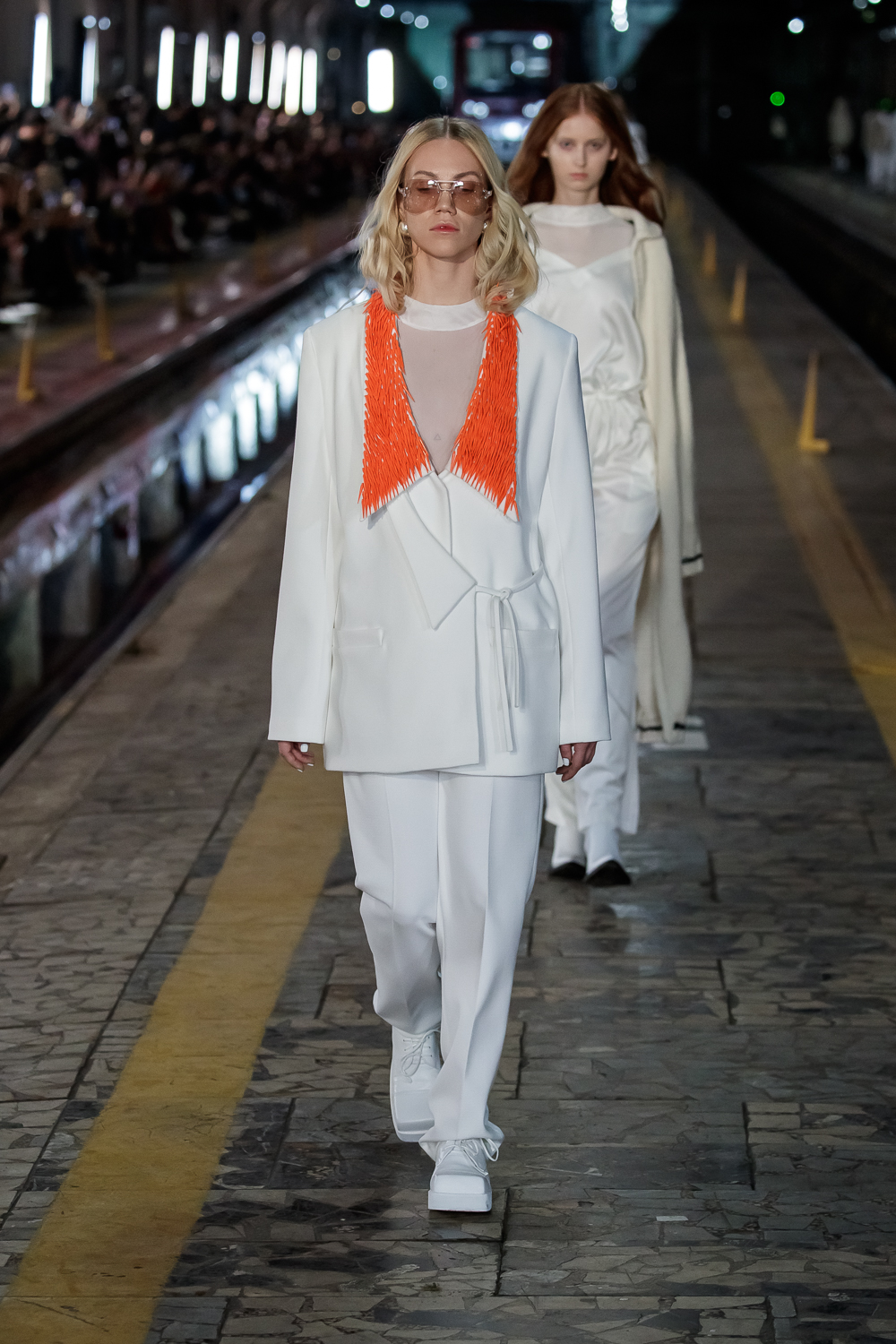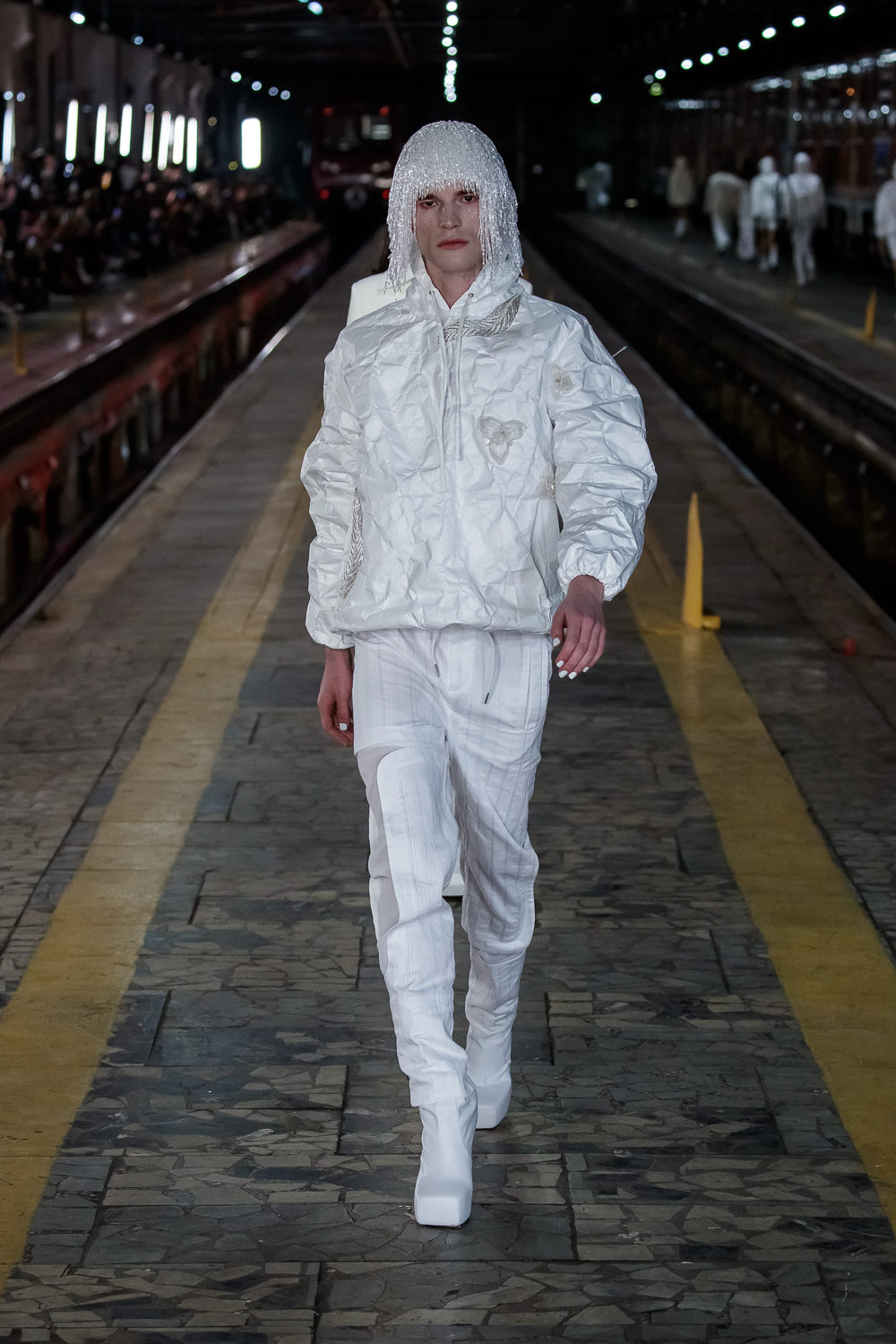 During the Mercedes – Benz Fashion Week Russia, the Russian Designer presented his SS20 Collection right on the railway of the train station in the heart of Moscow.