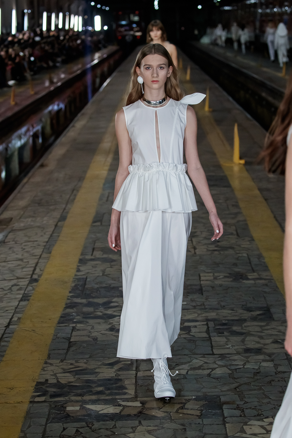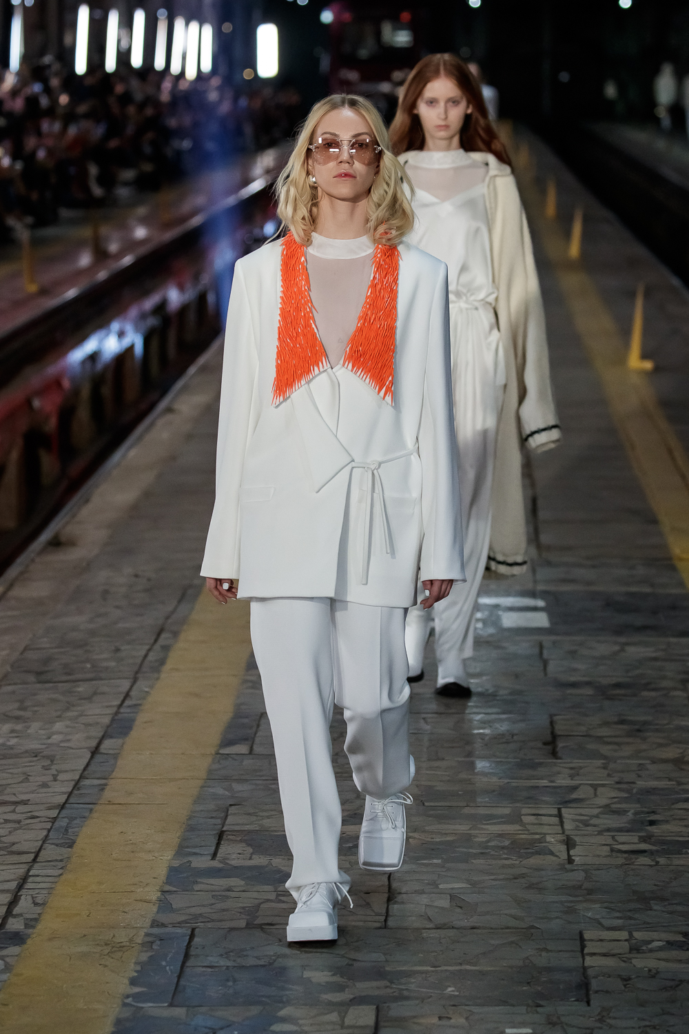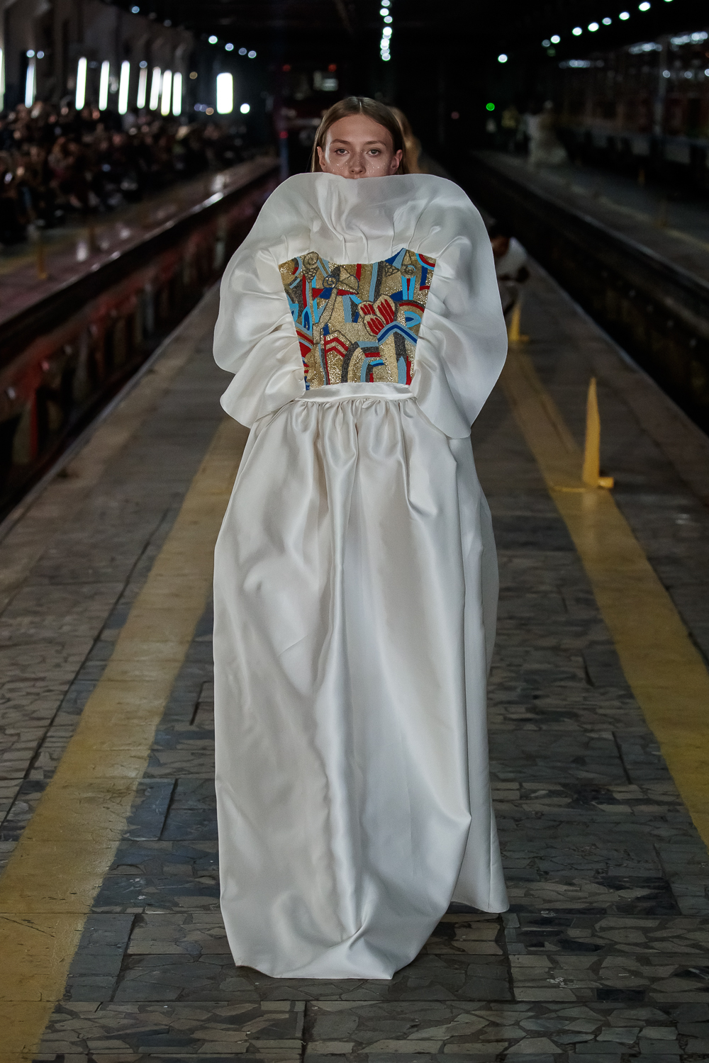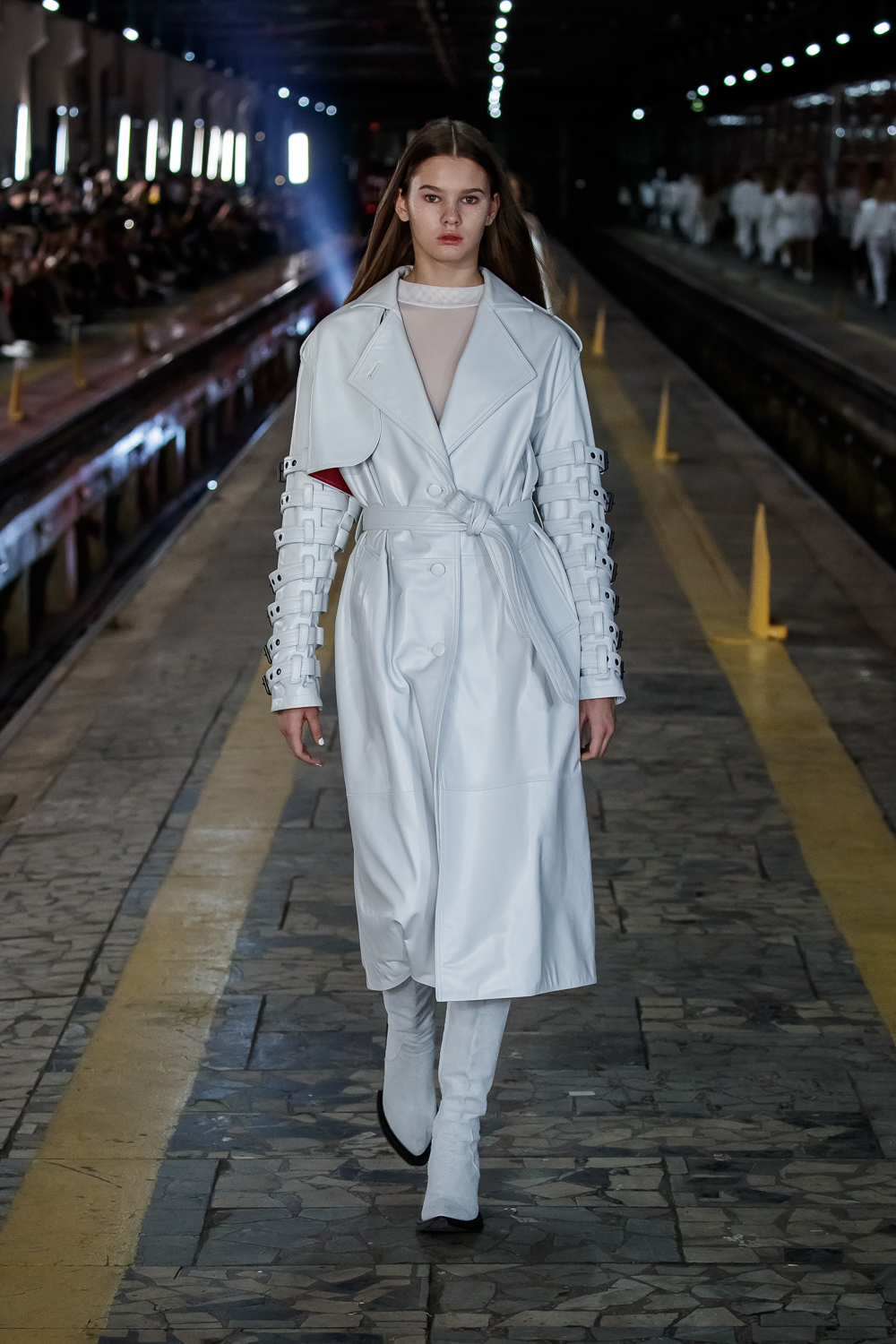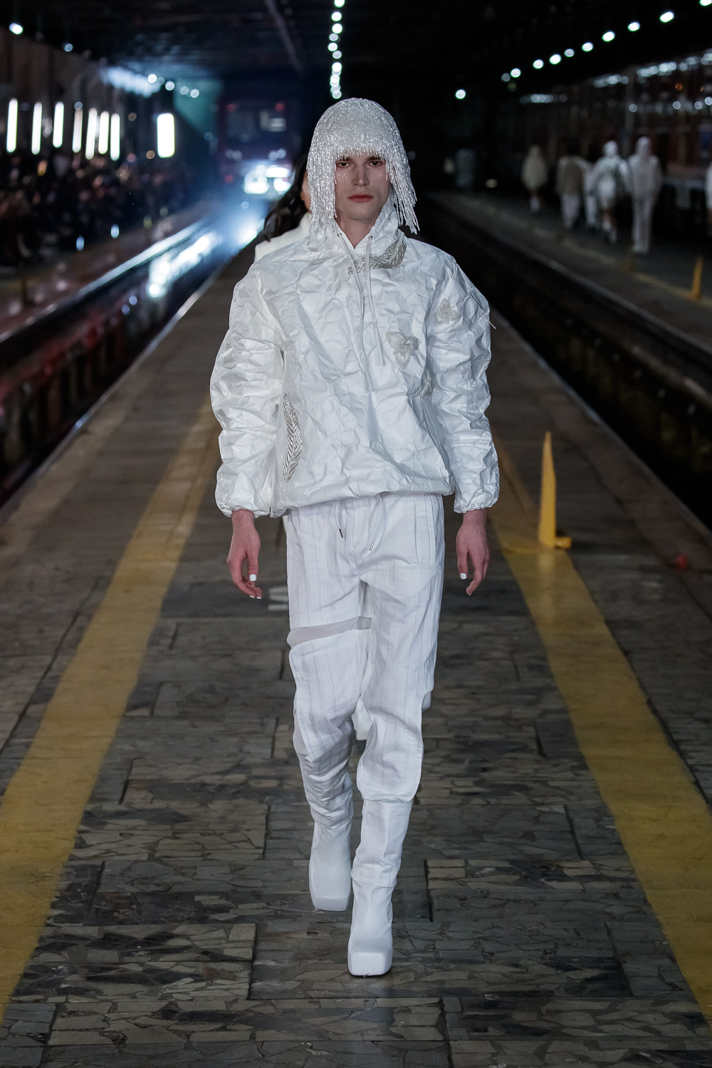 During the Mercedes – Benz Fashion Week Russia, the Russian Designer presented his SS20 Collection right on the railway of the train station in the heart of Moscow.