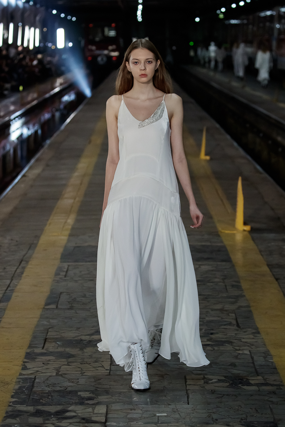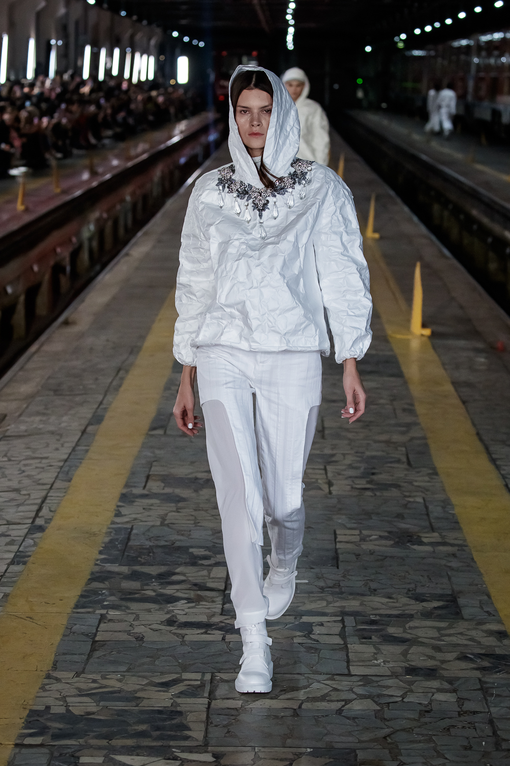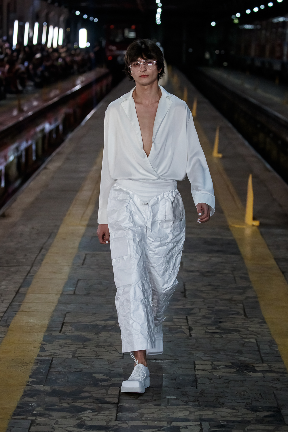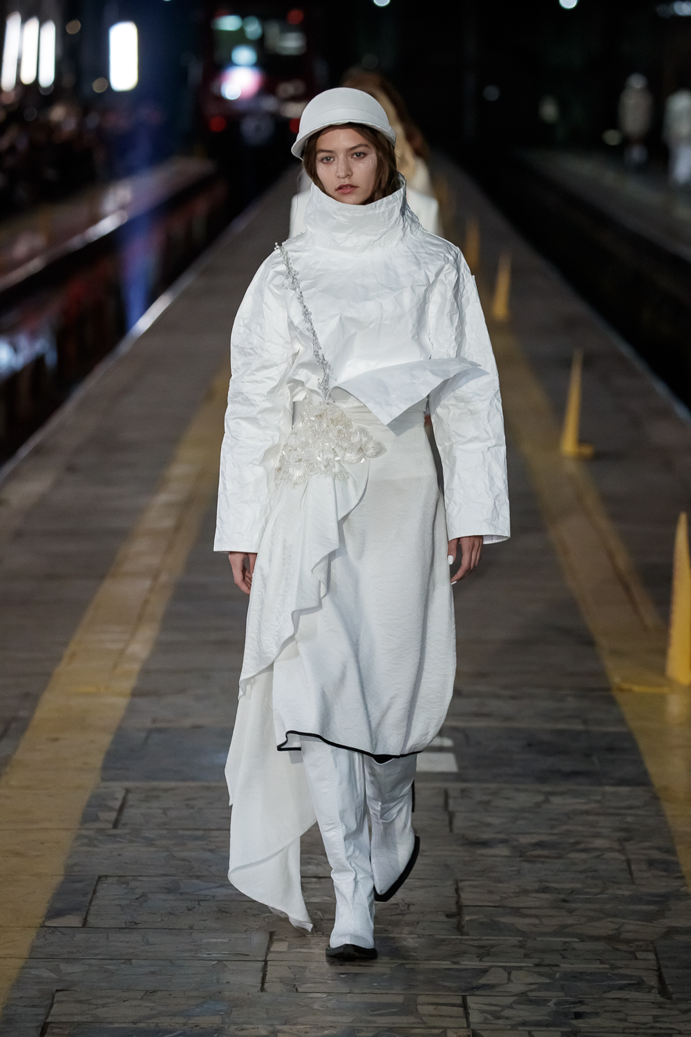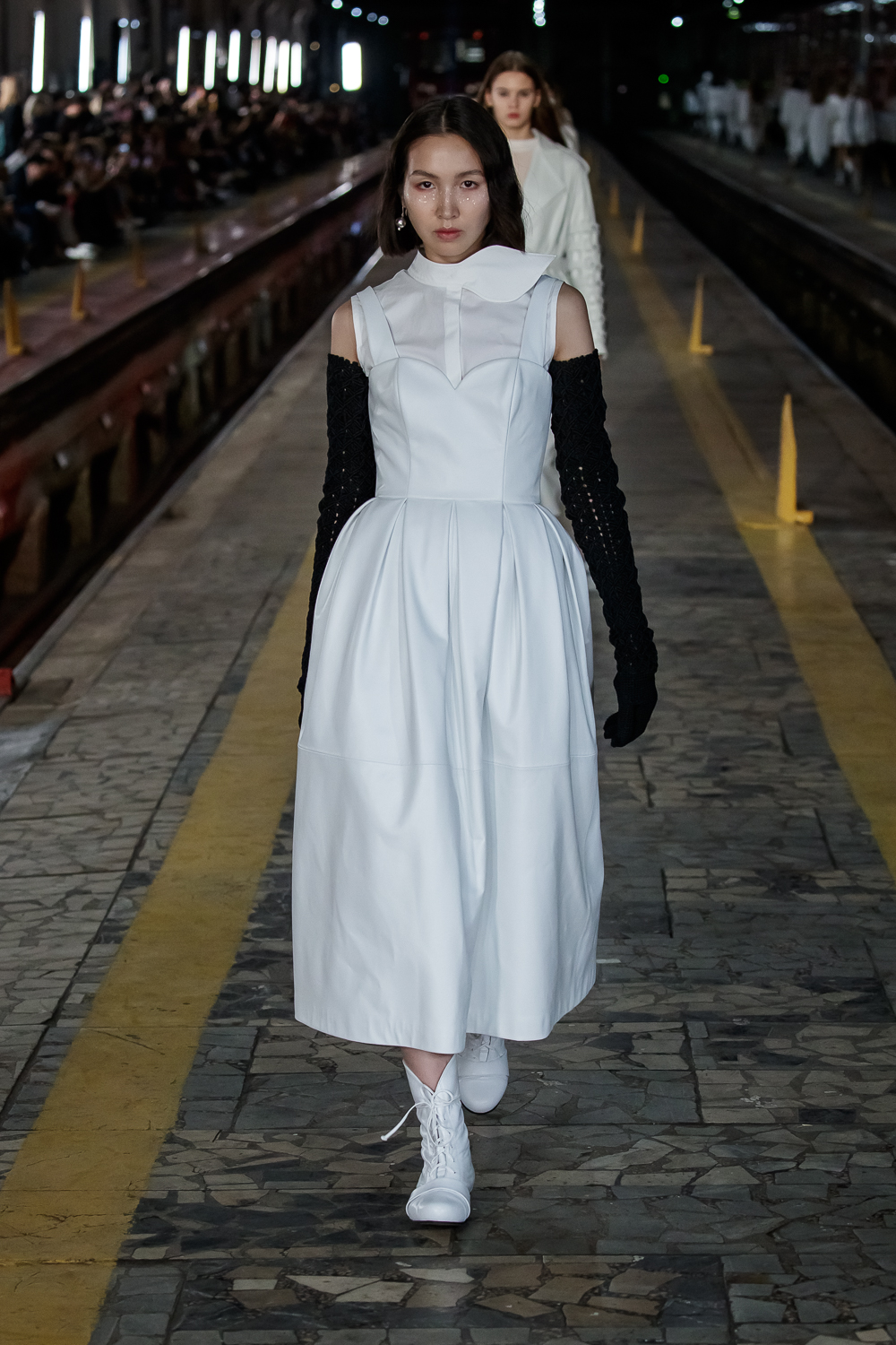 During the Mercedes – Benz Fashion Week Russia, the Russian Designer presented his SS20 Collection right on the railway of the train station in the heart of Moscow.