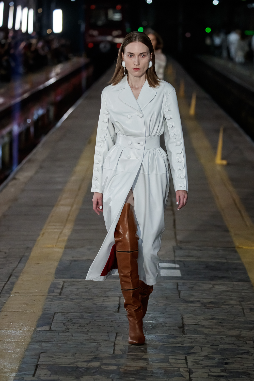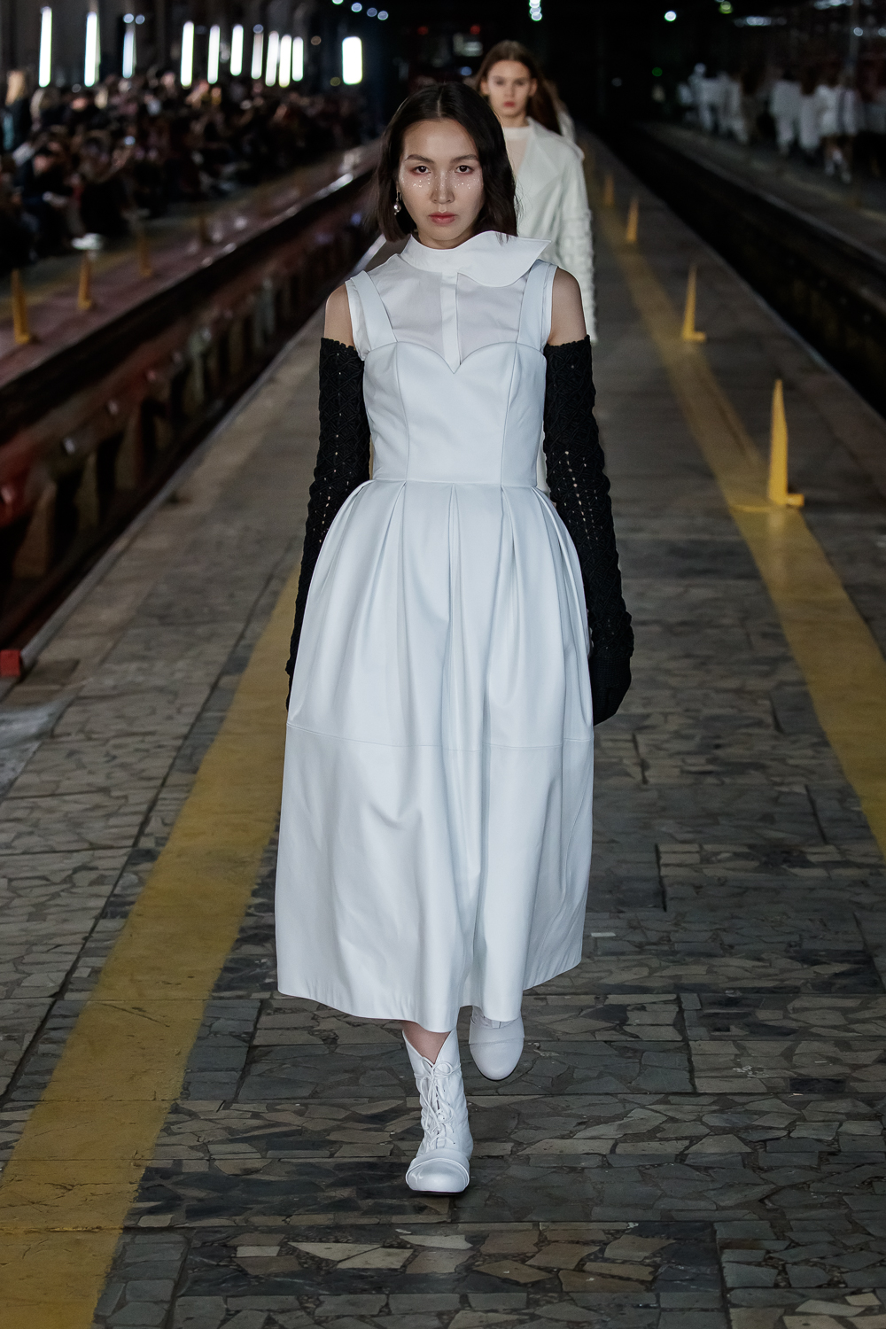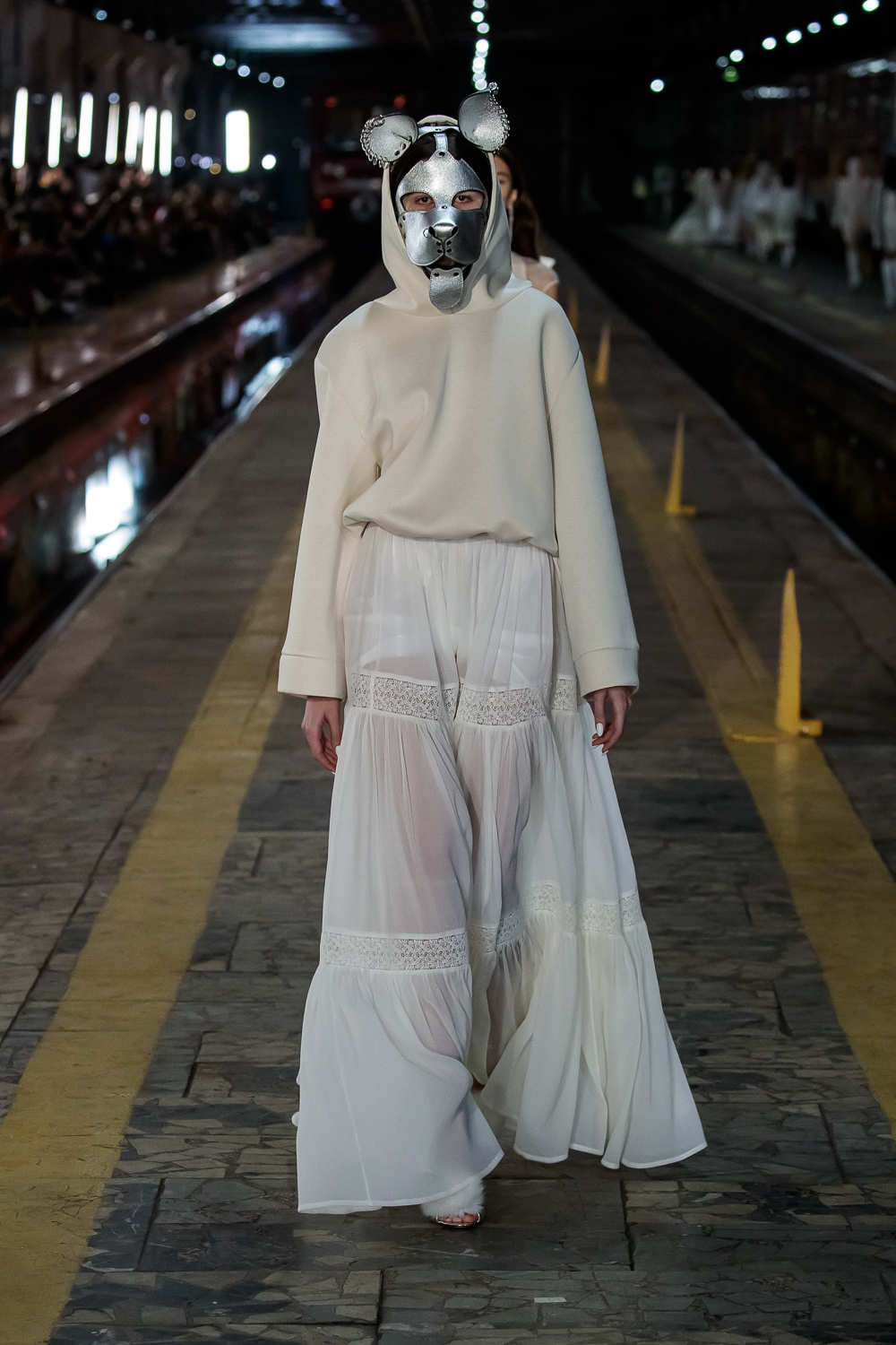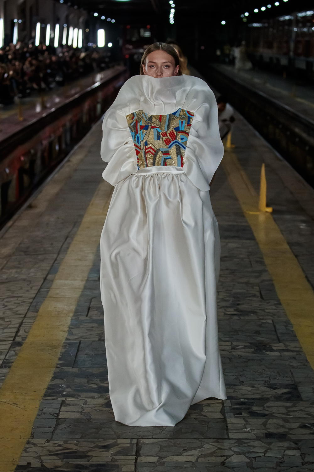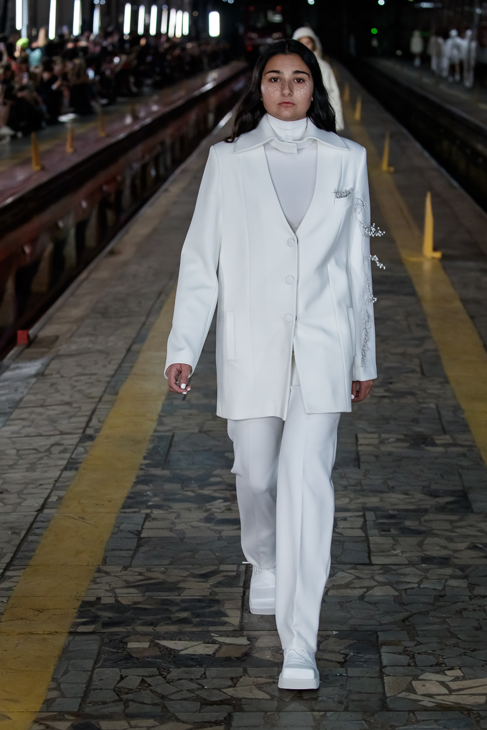 During the Mercedes – Benz Fashion Week Russia, the Russian Designer presented his SS20 Collection right on the railway of the train station in the heart of Moscow.