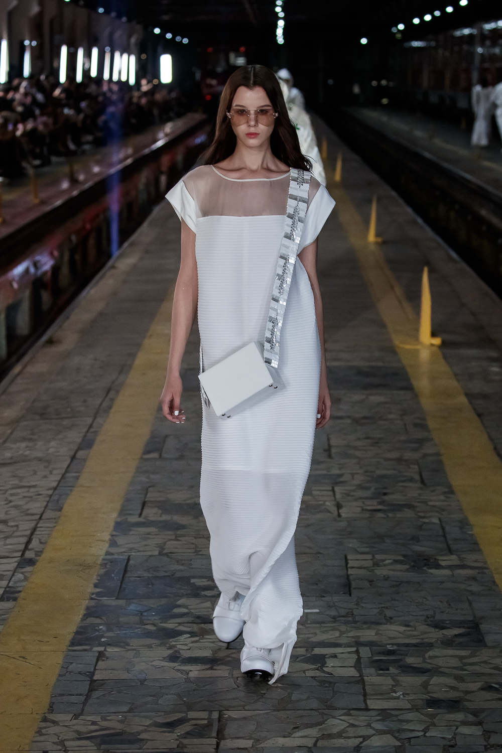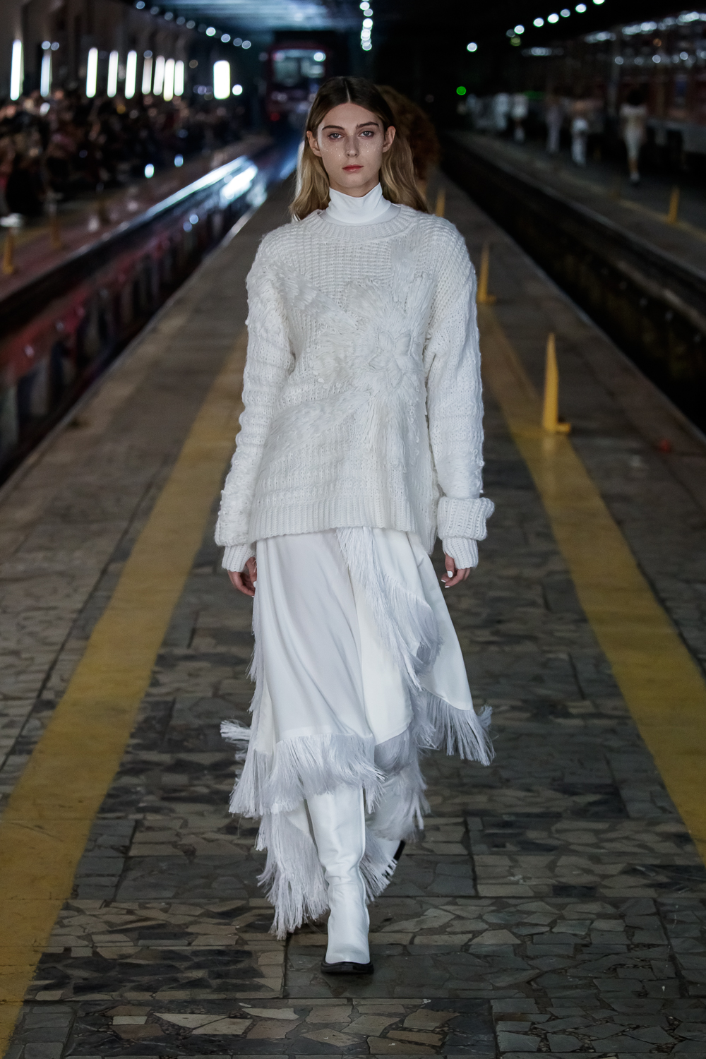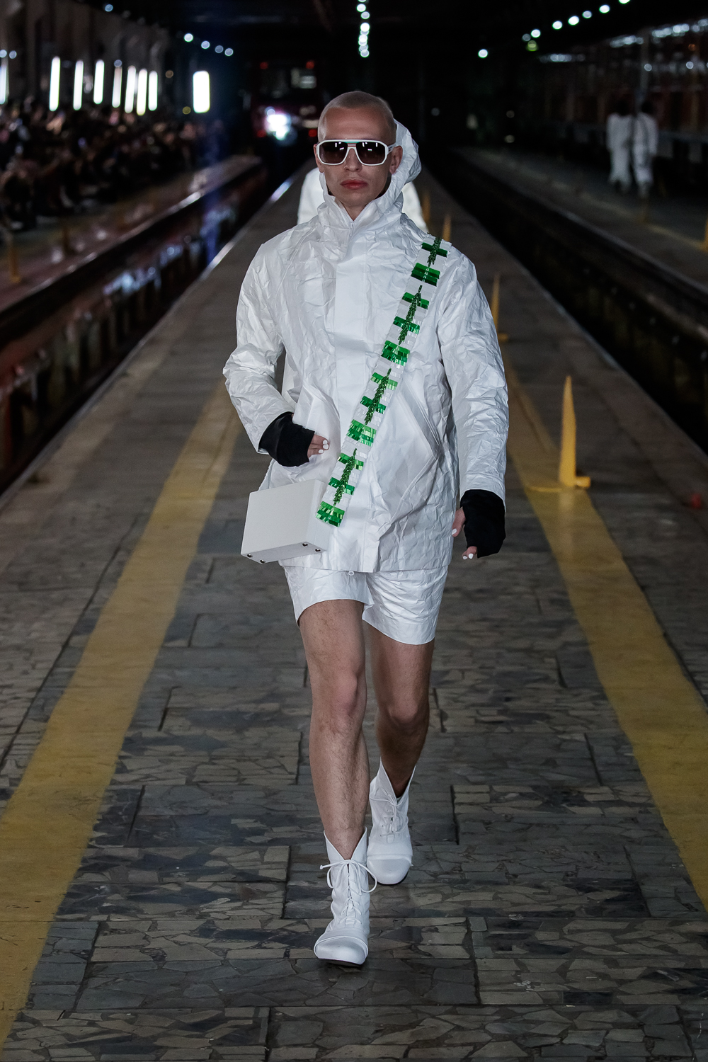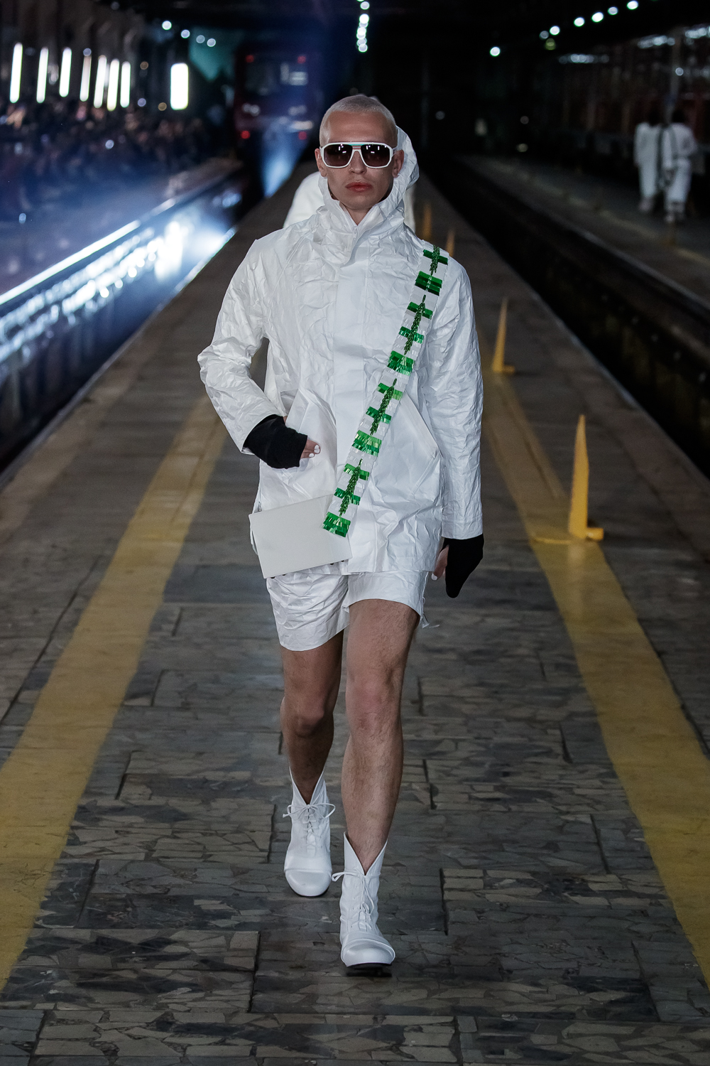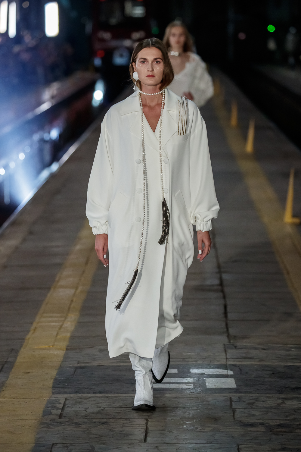 During the Mercedes – Benz Fashion Week Russia, the Russian Designer presented his SS20 Collection right on the railway of the train station in the heart of Moscow.