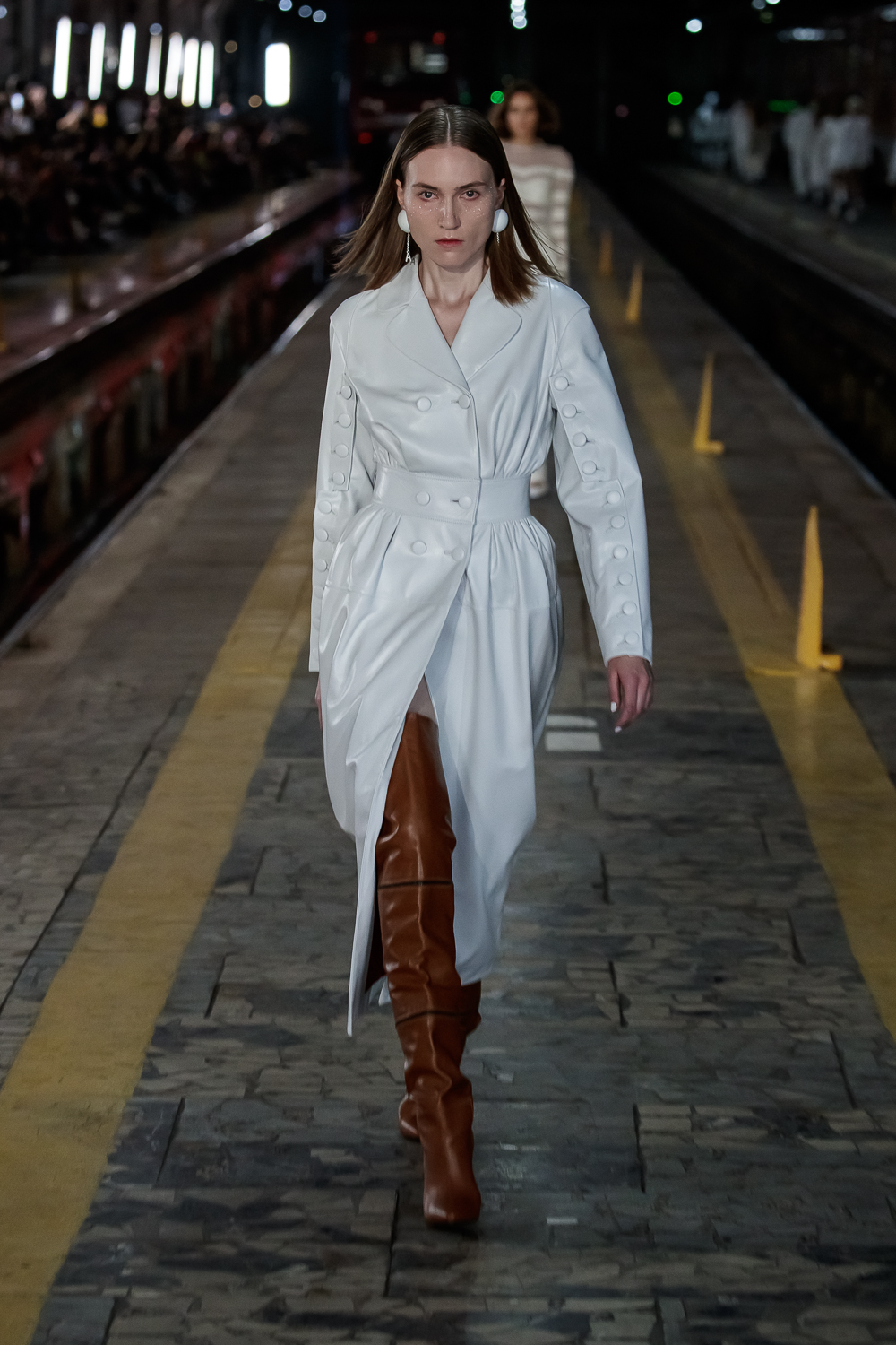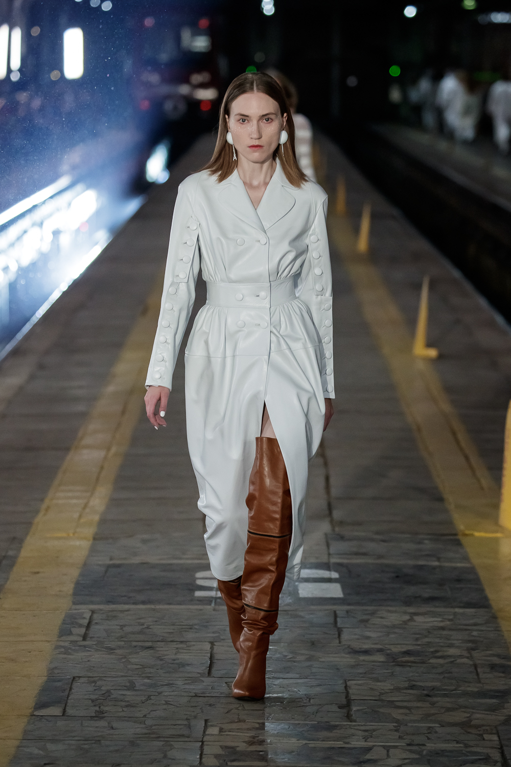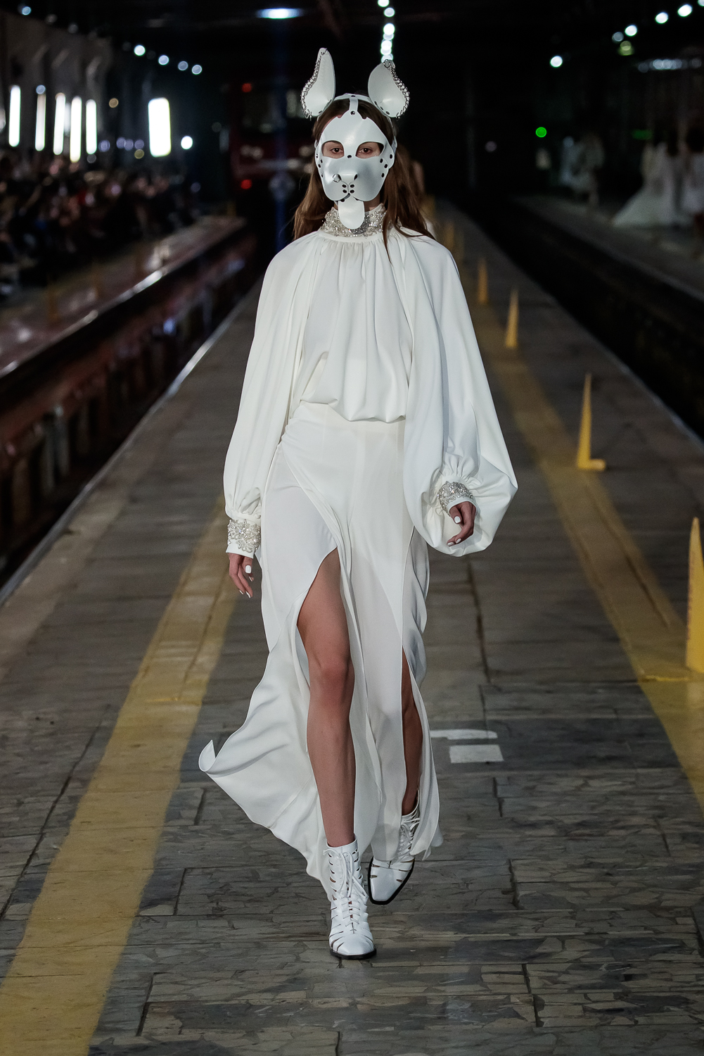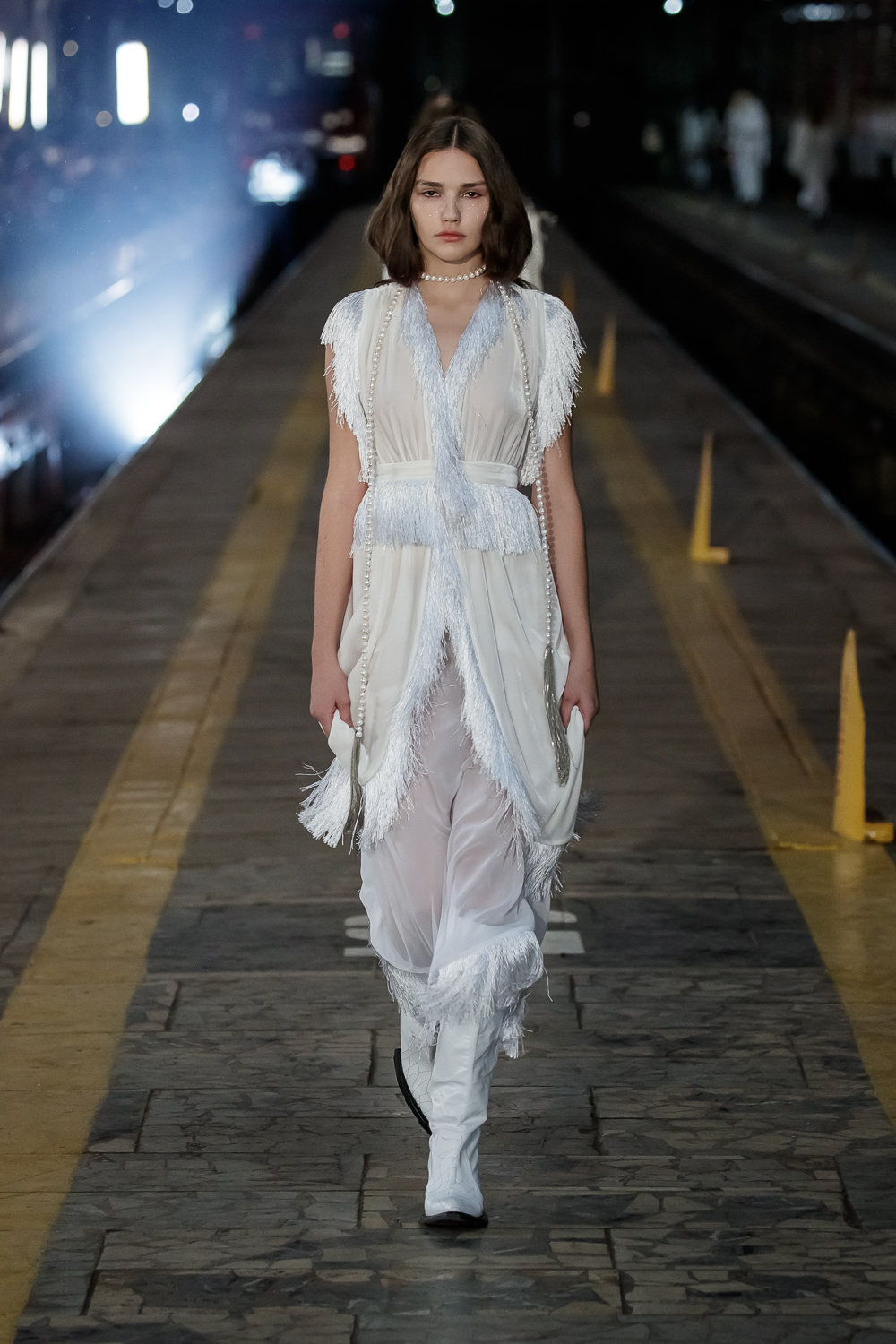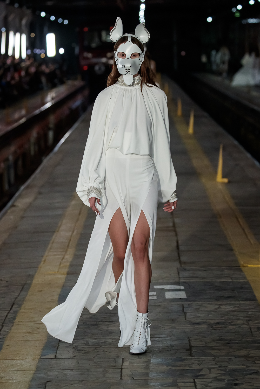 During the Mercedes – Benz Fashion Week Russia, the Russian Designer presented his SS20 Collection right on the railway of the train station in the heart of Moscow.