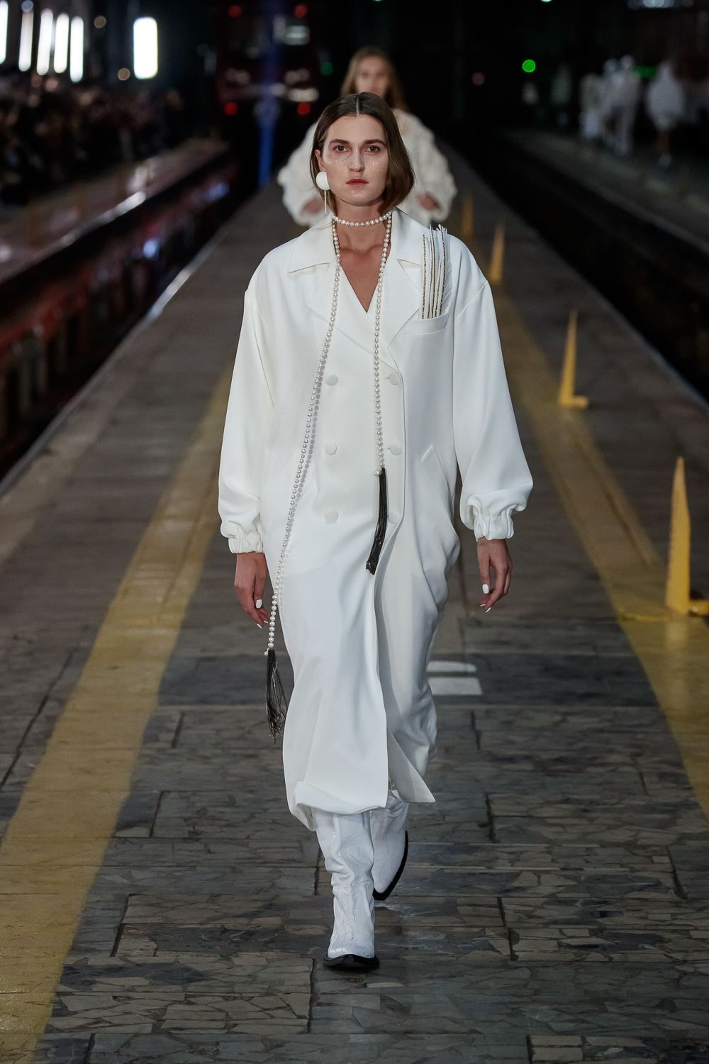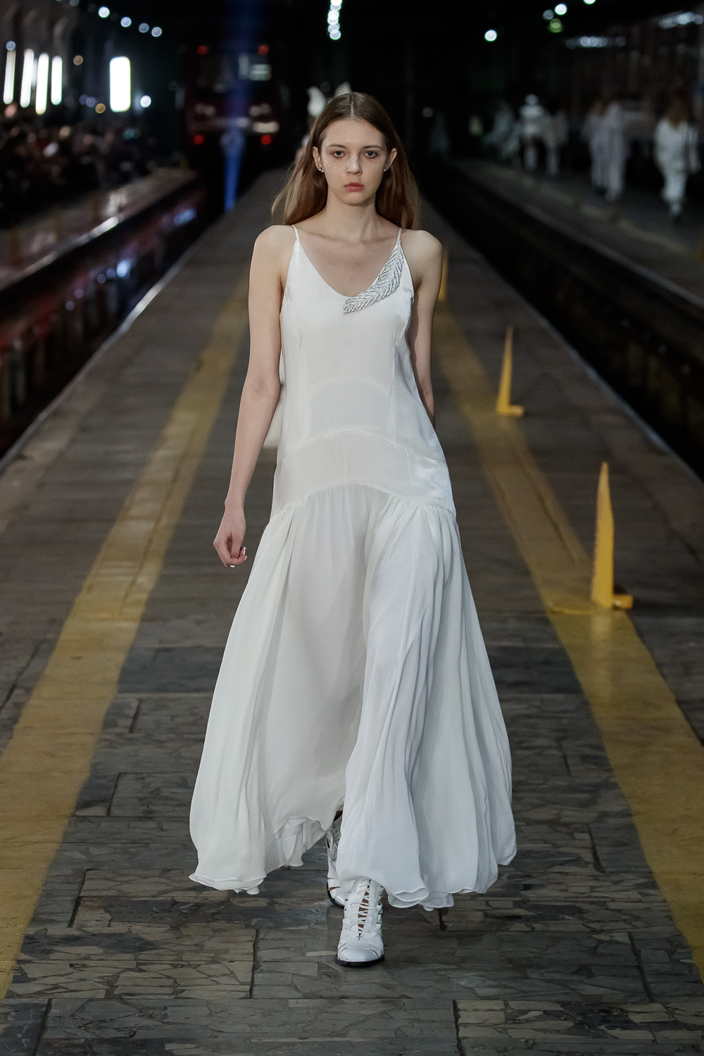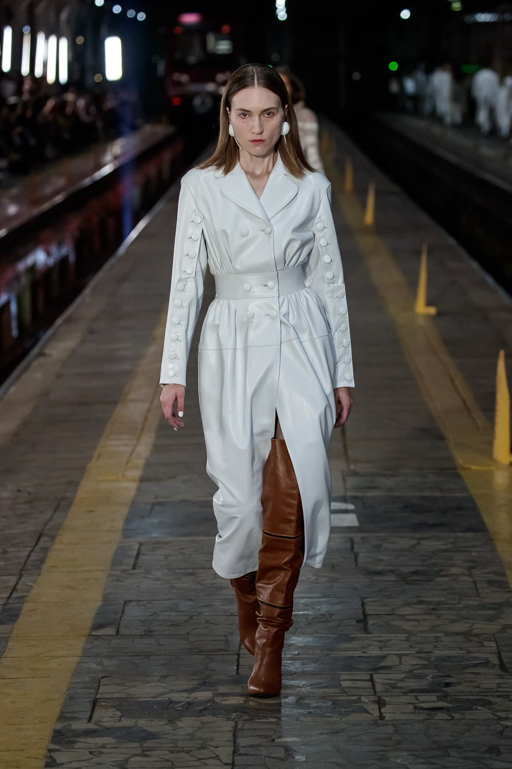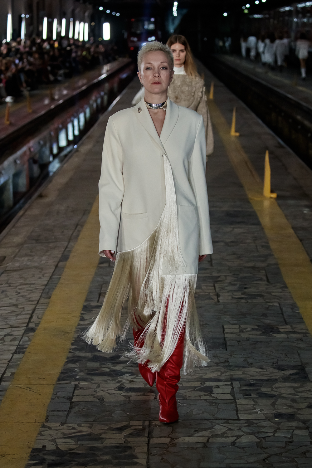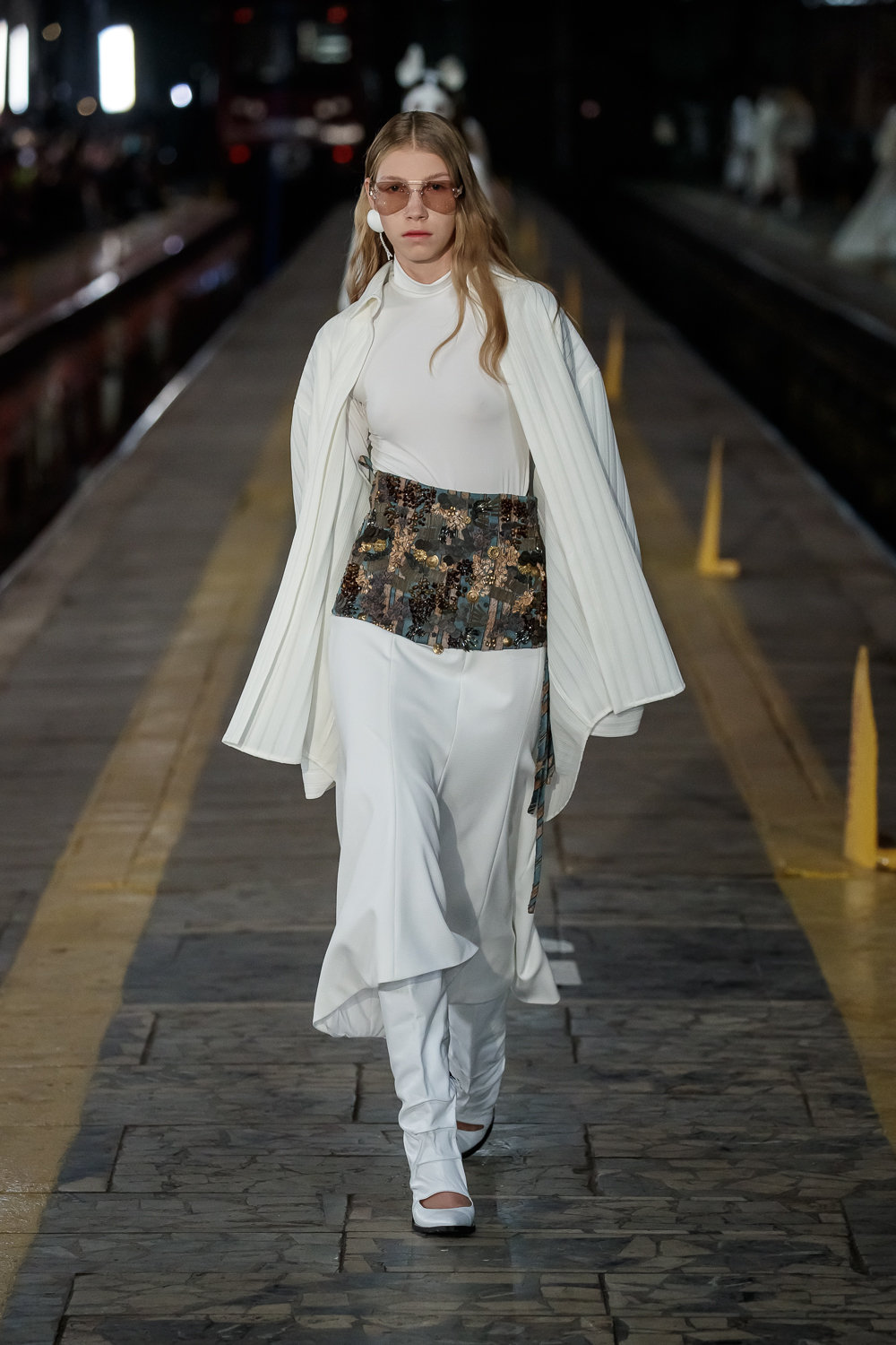During the Mercedes – Benz Fashion Week Russia, the Russian Designer presented his SS20 Collection right on the railway of the train station in the heart of Moscow.