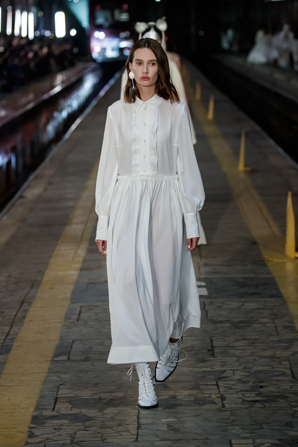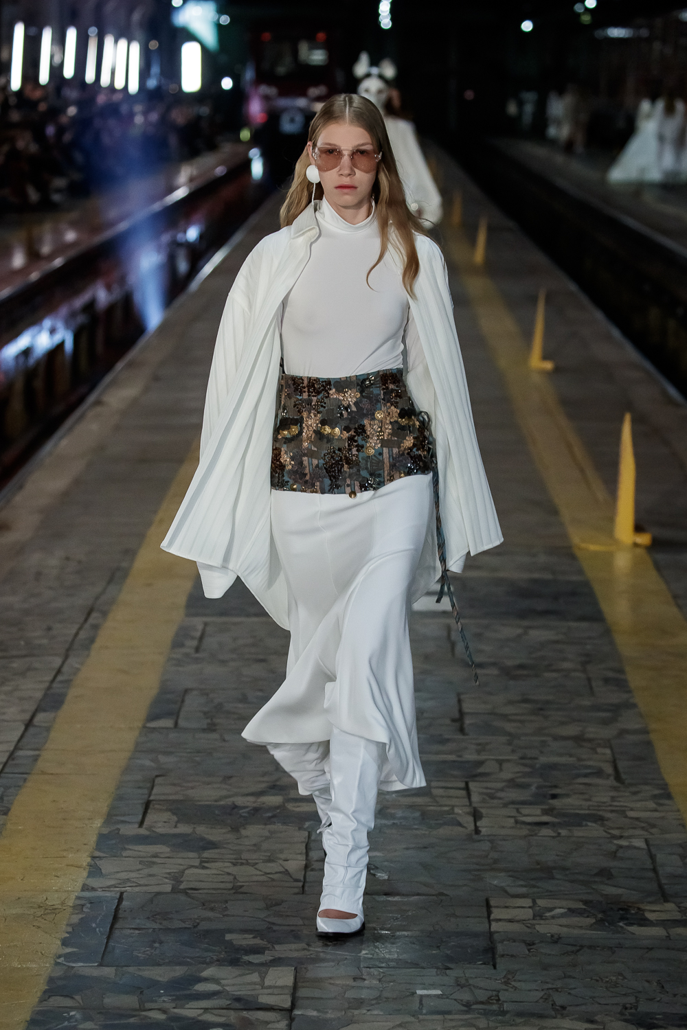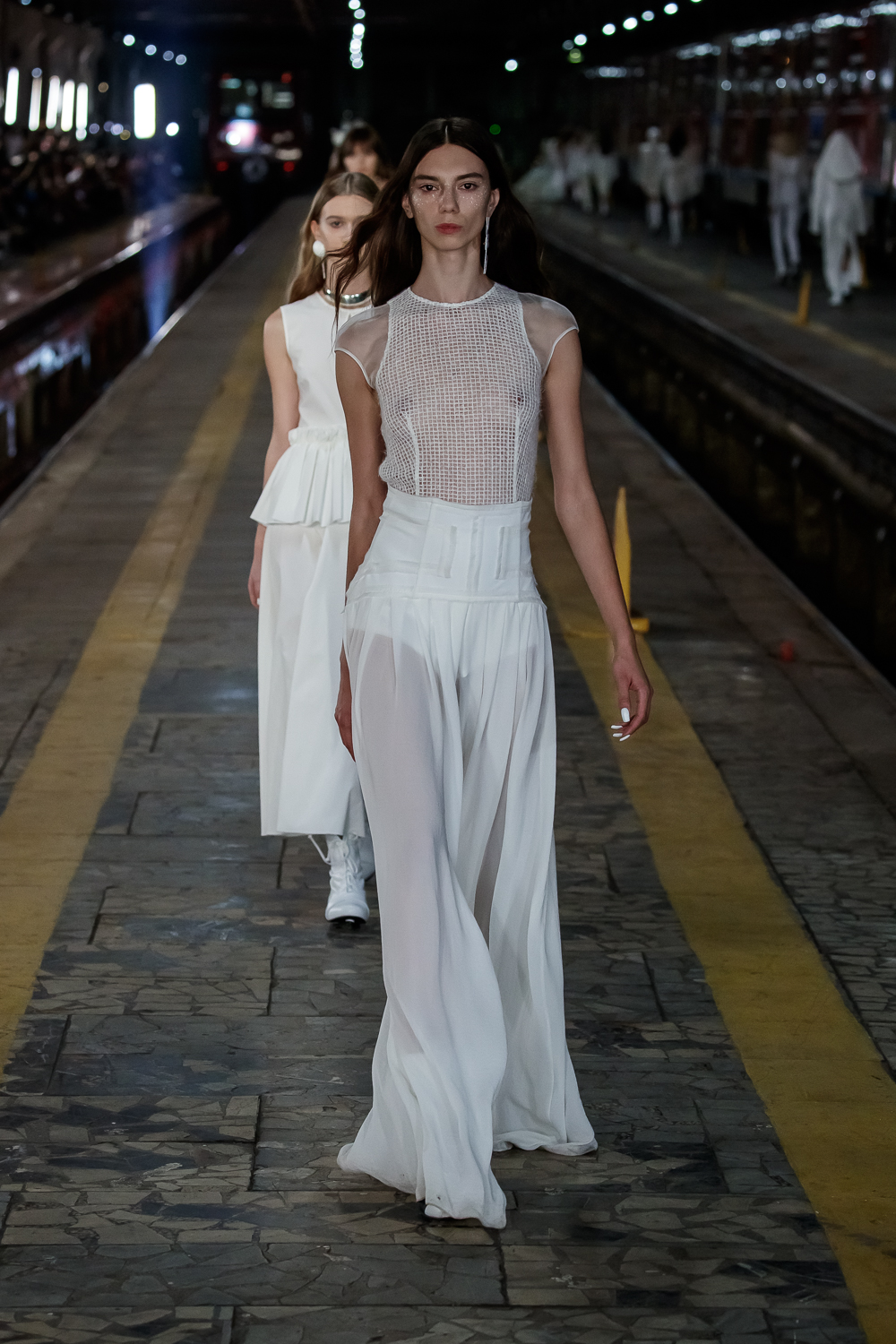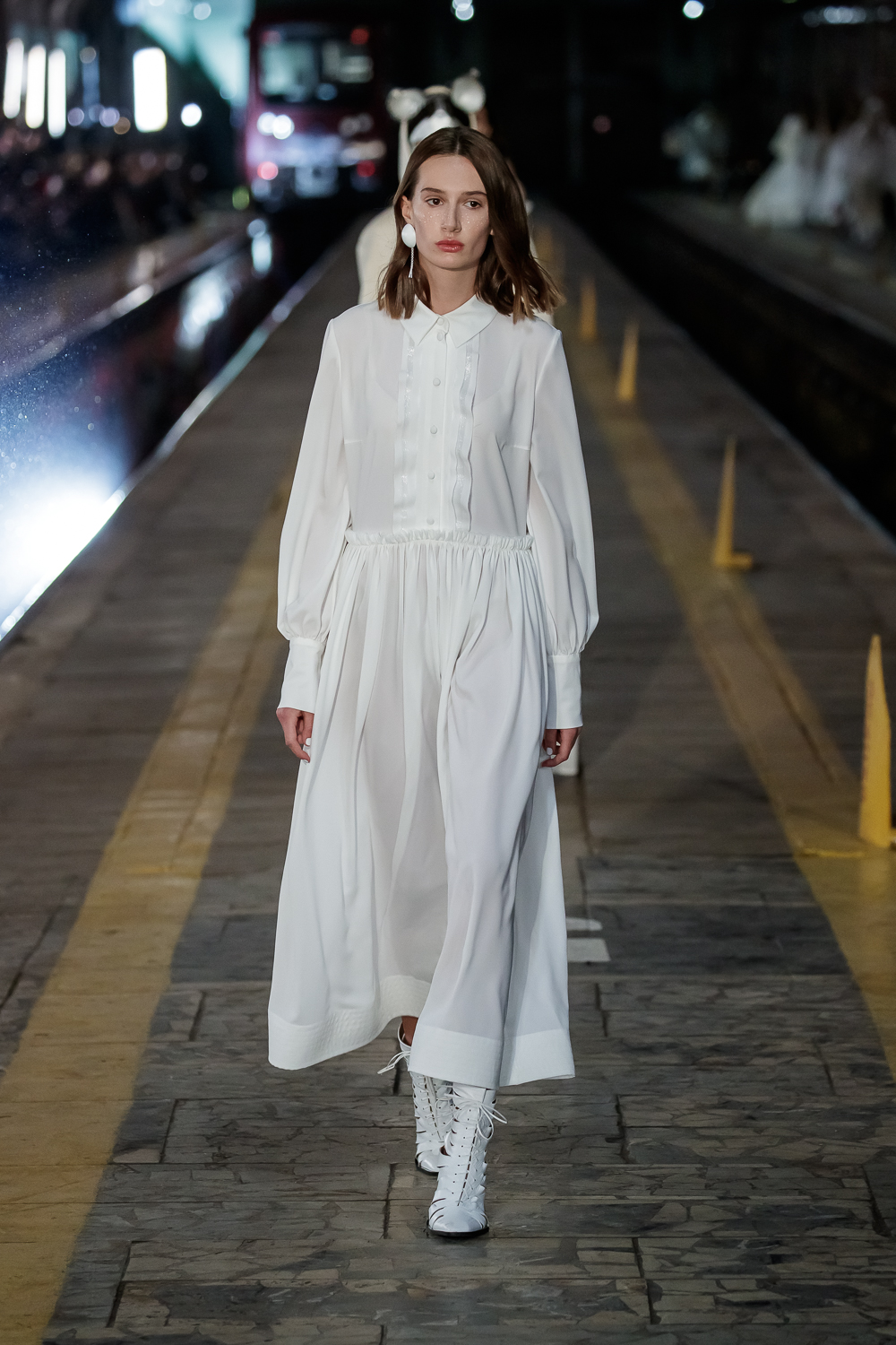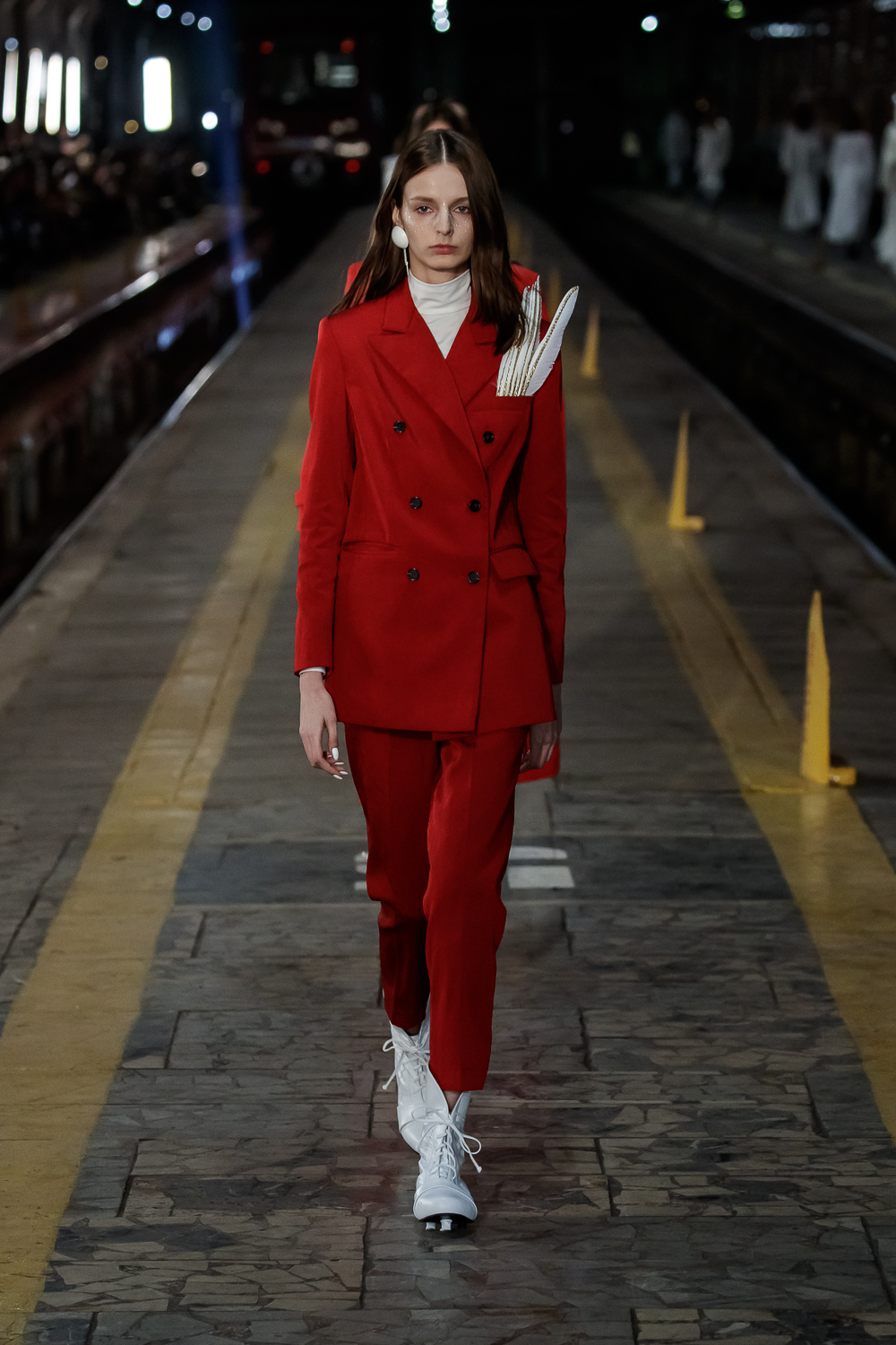 During the Mercedes – Benz Fashion Week Russia, the Russian Designer presented his SS20 Collection right on the railway of the train station in the heart of Moscow.