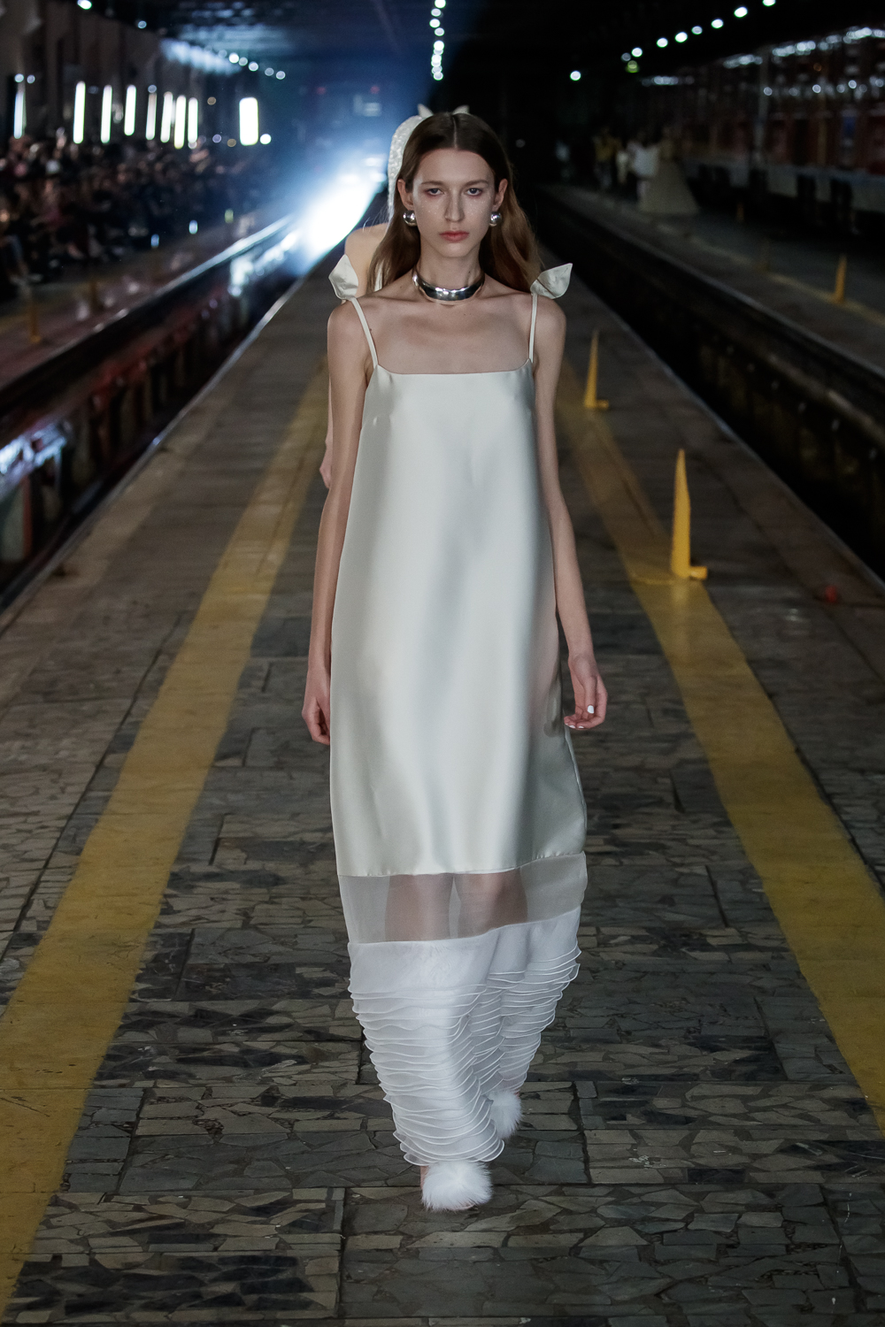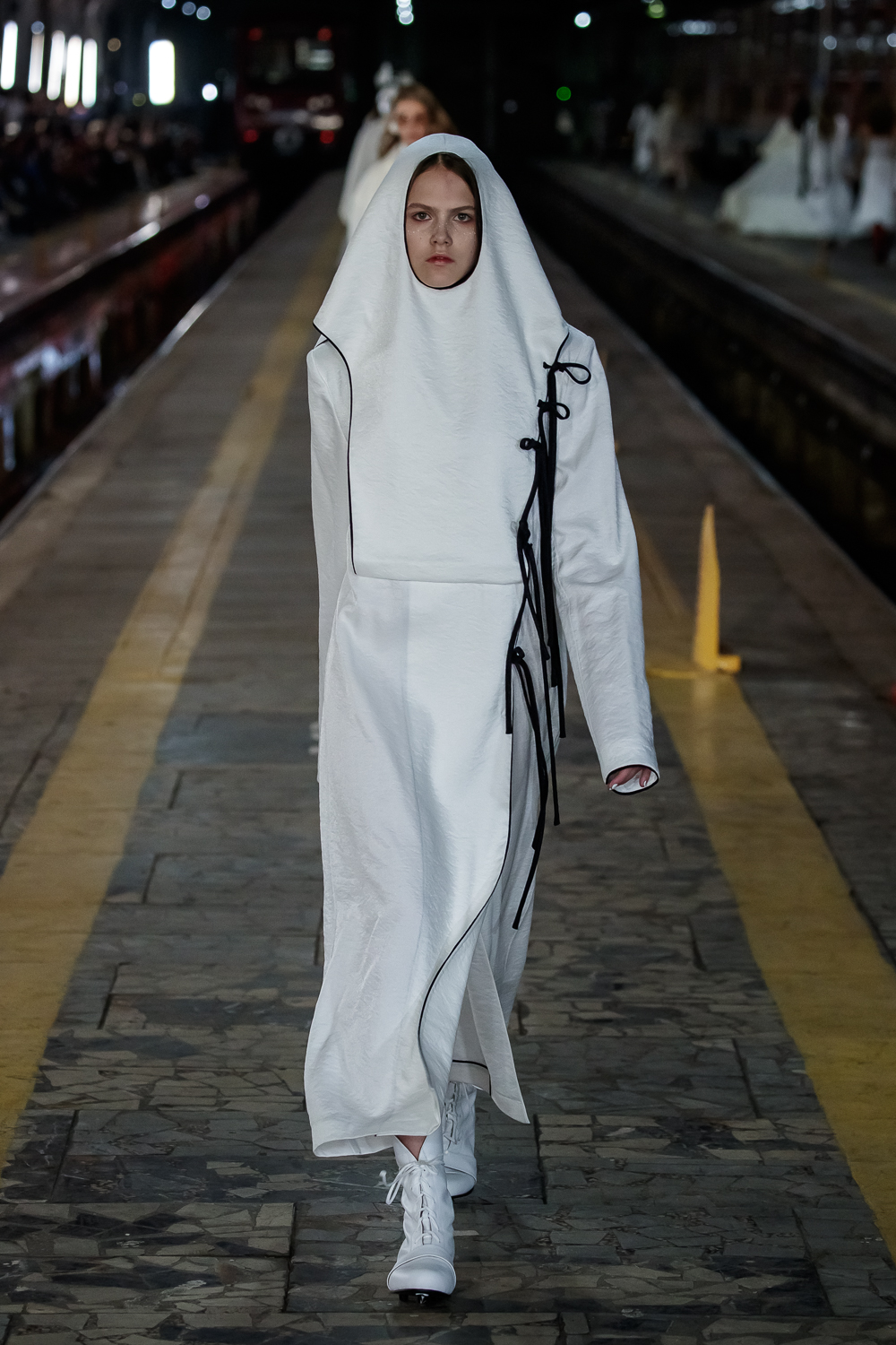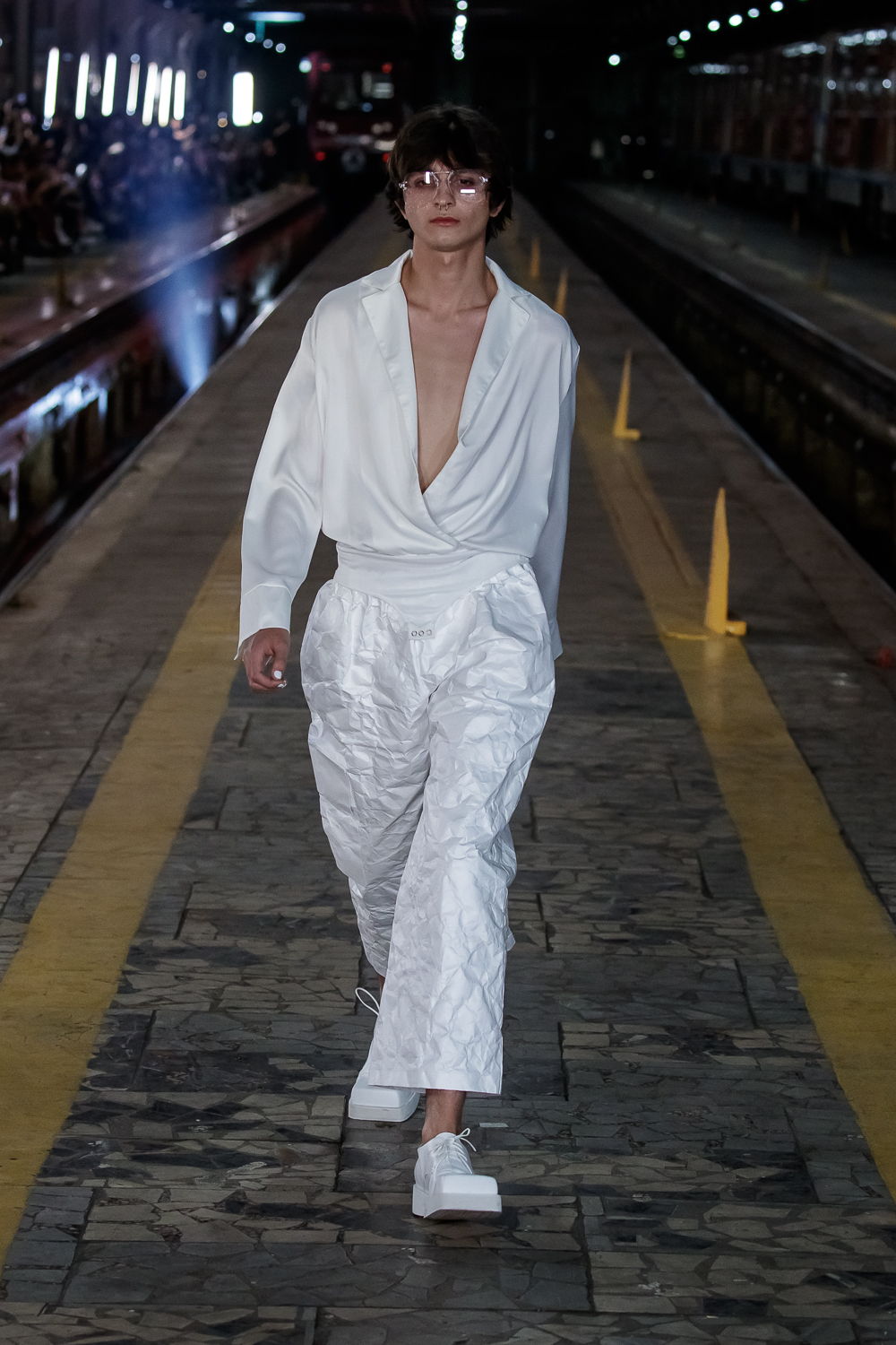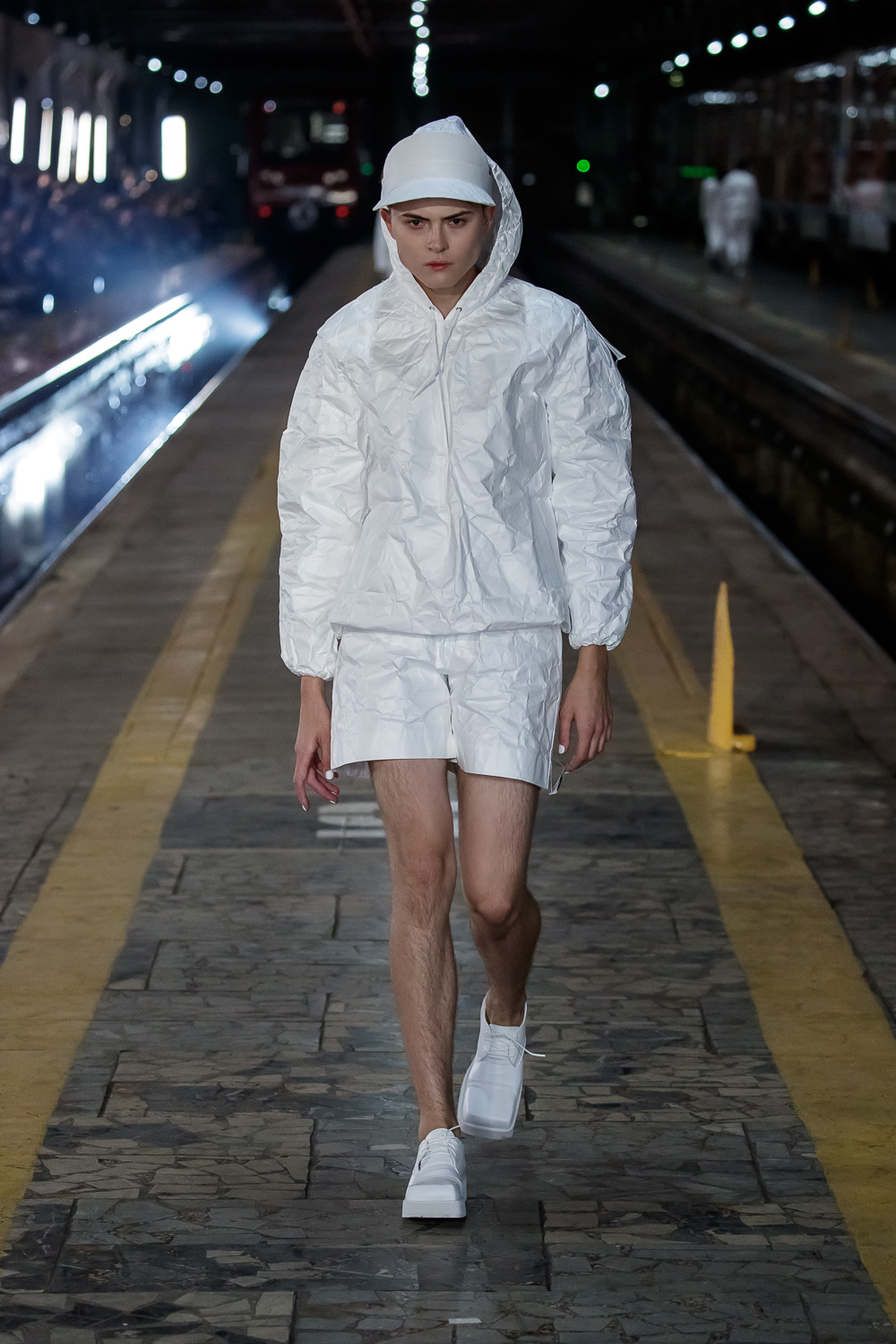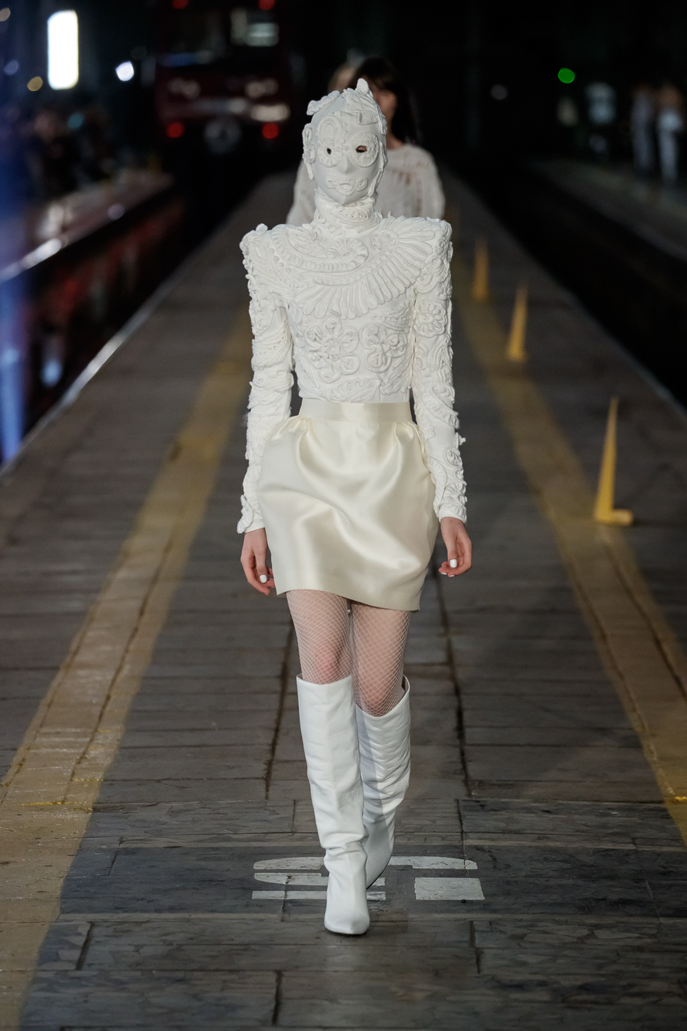 During the Mercedes – Benz Fashion Week Russia, the Russian Designer presented his SS20 Collection right on the railway of the train station in the heart of Moscow.