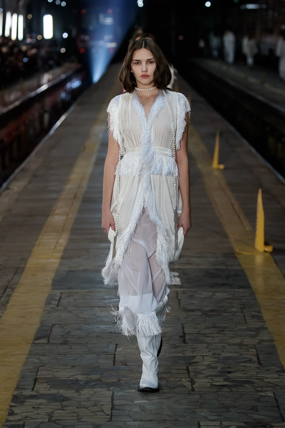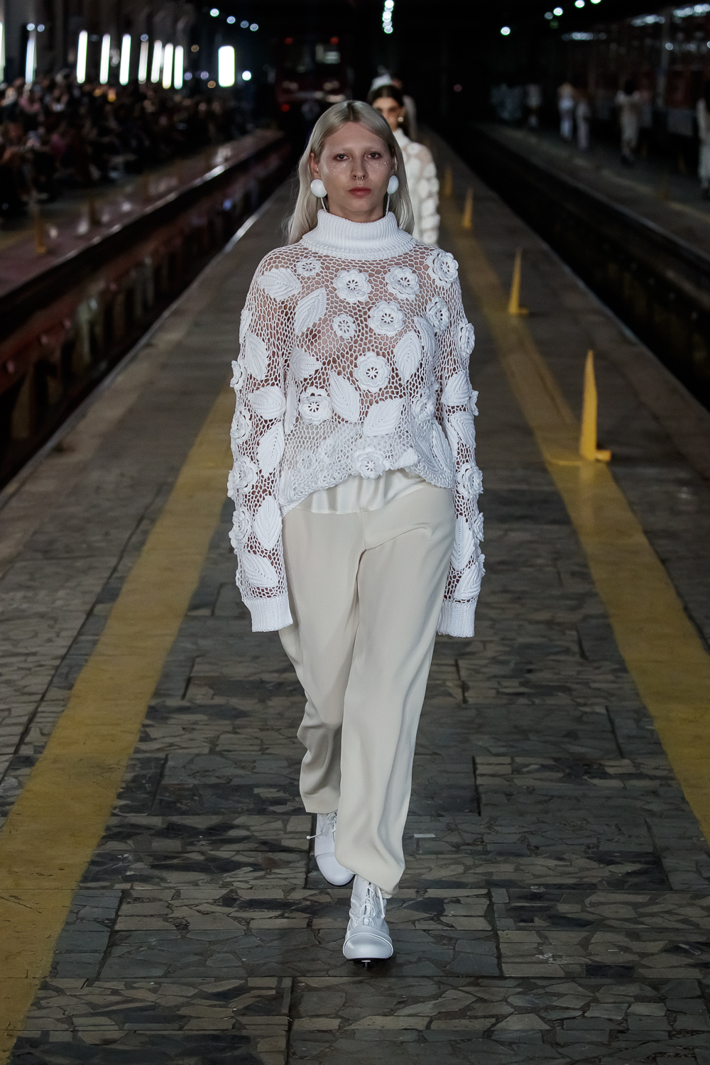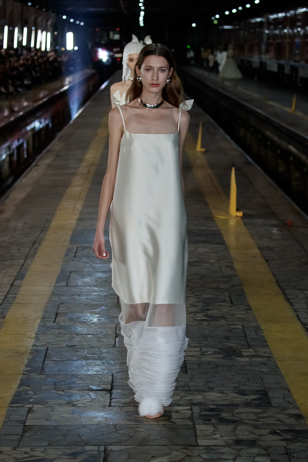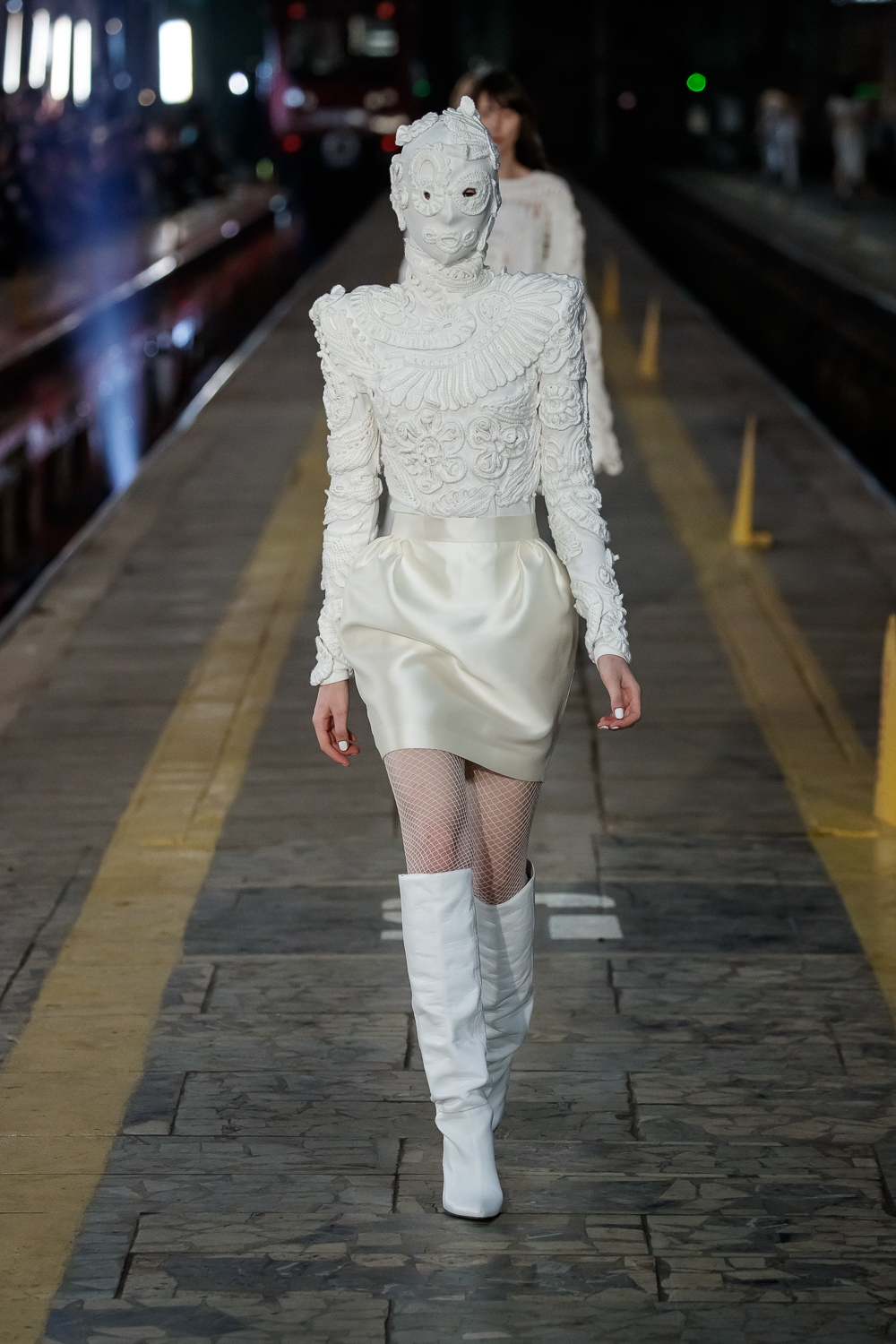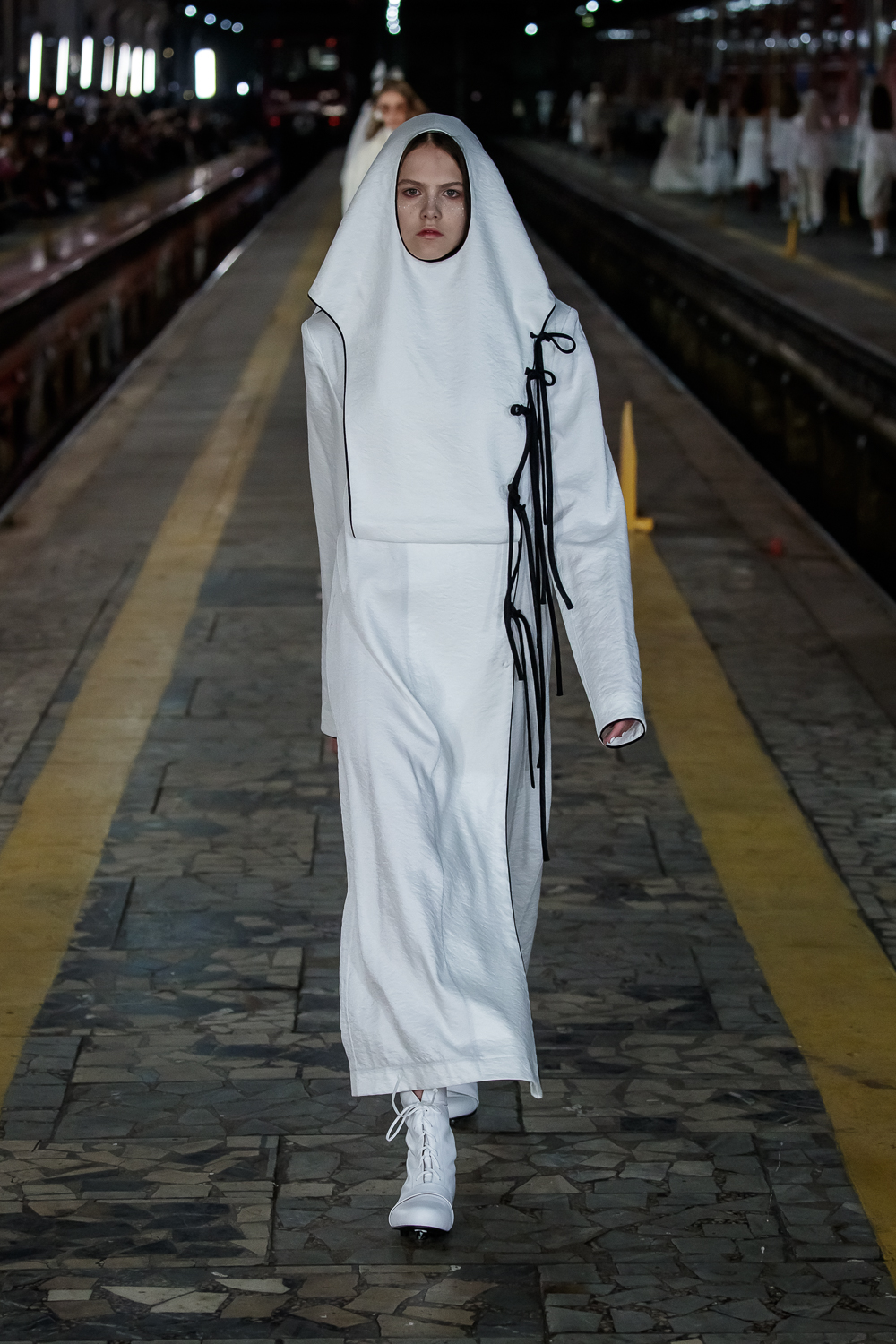 During the Mercedes – Benz Fashion Week Russia, the Russian Designer presented his SS20 Collection right on the railway of the train station in the heart of Moscow.