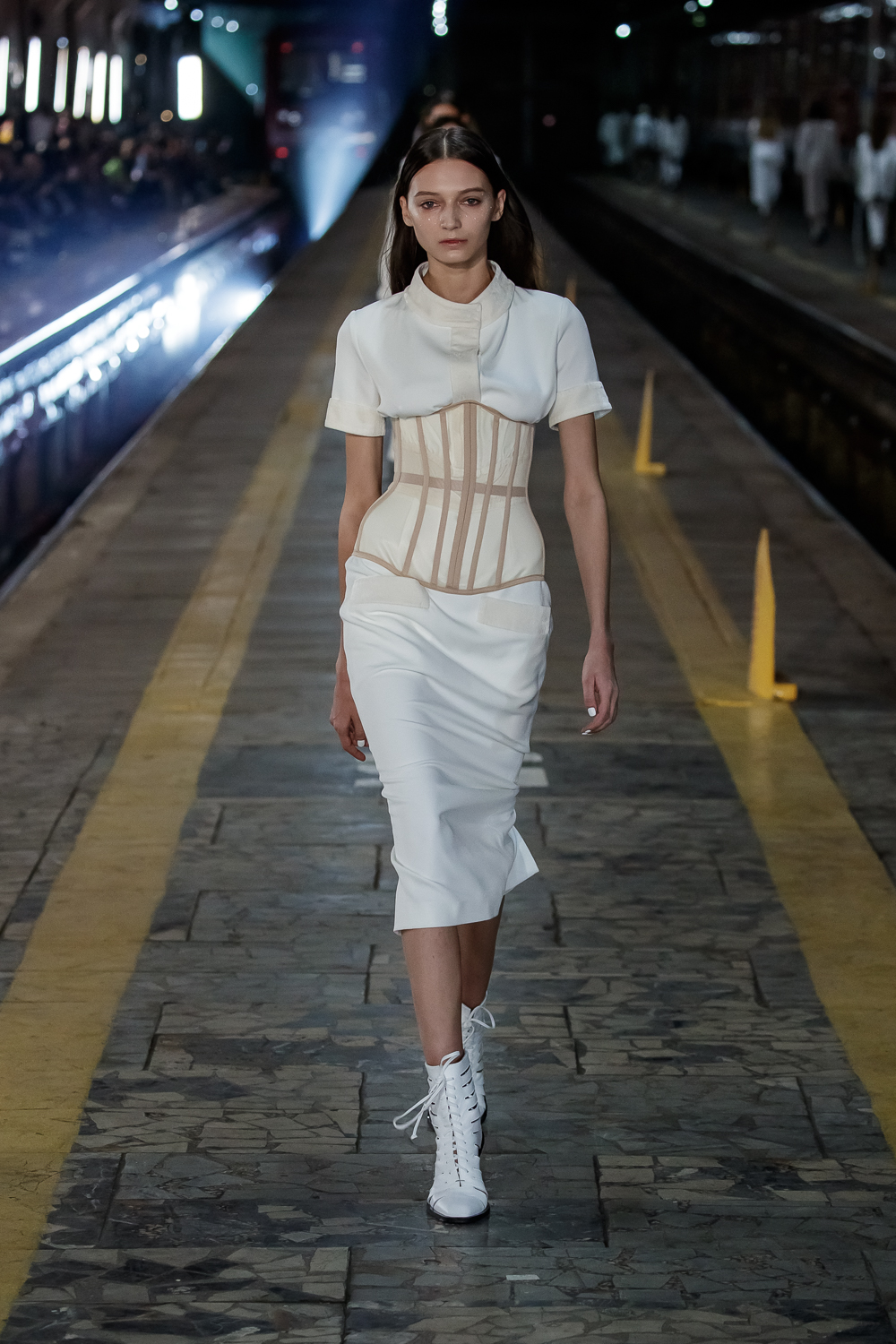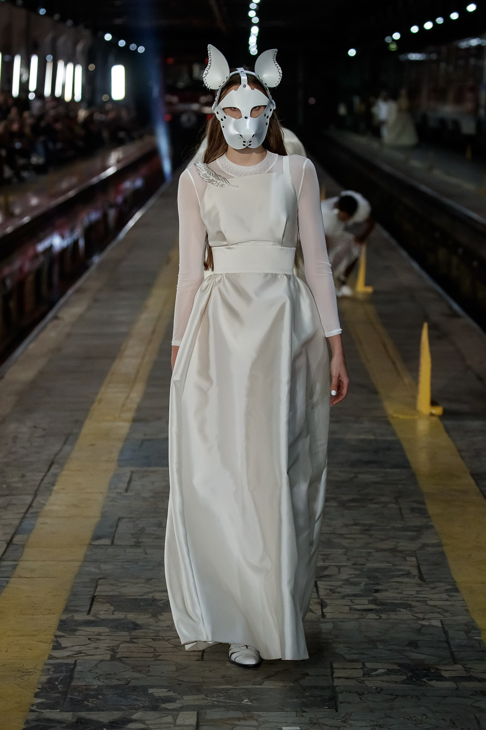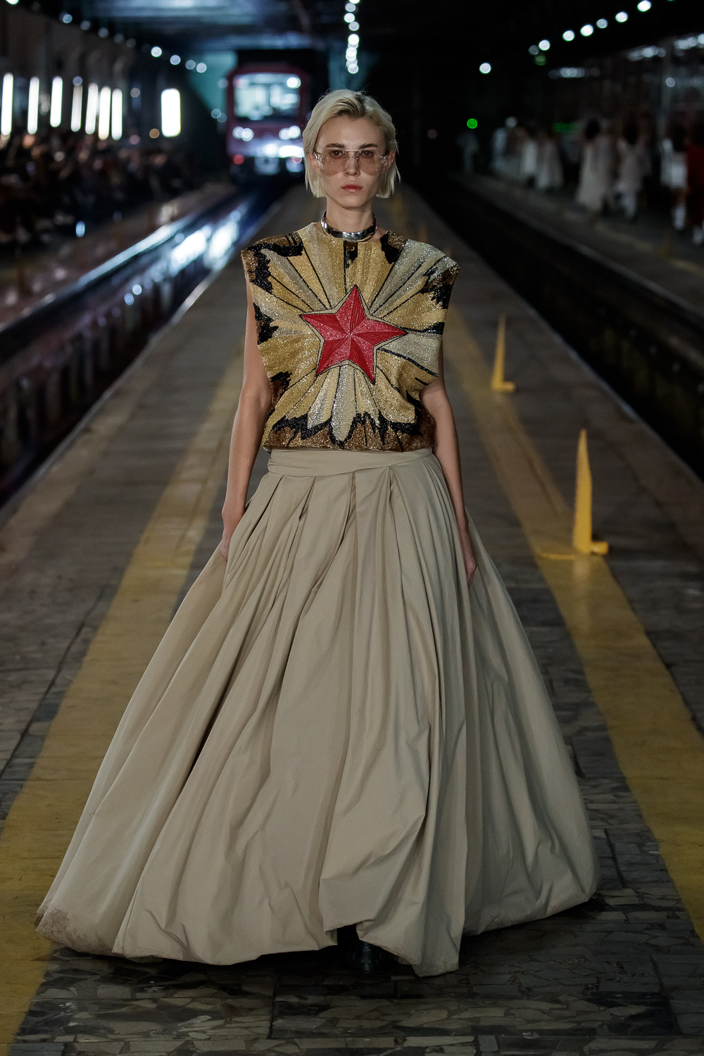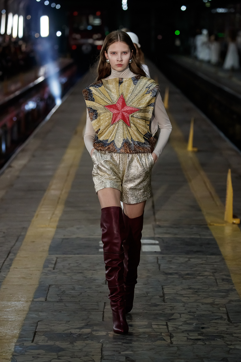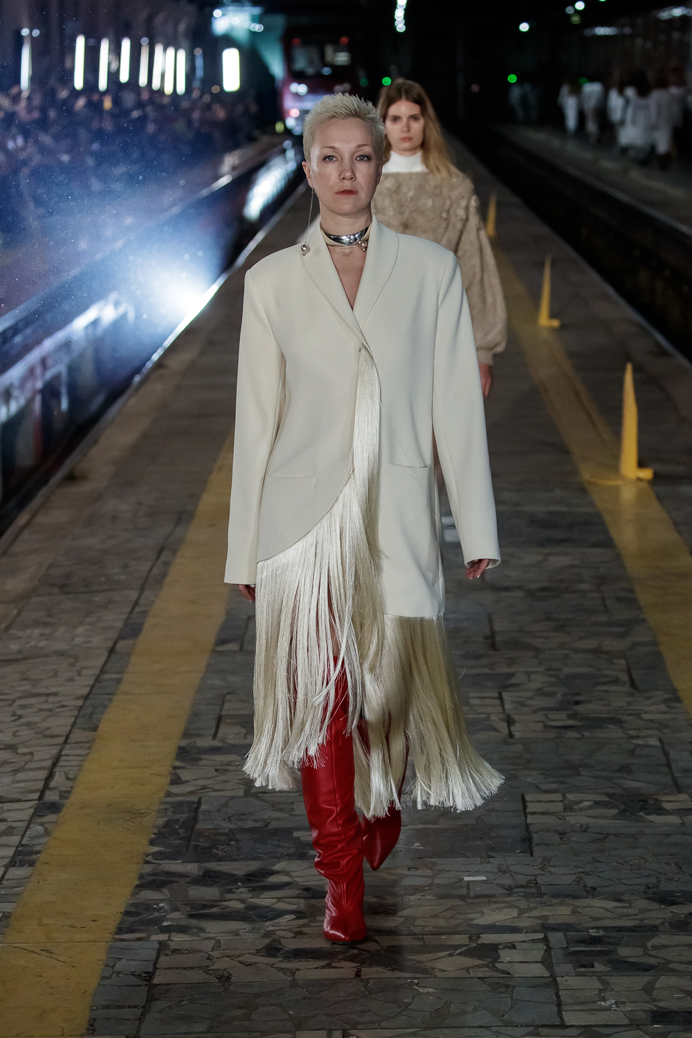 During the Mercedes – Benz Fashion Week Russia, the Russian Designer presented his SS20 Collection right on the railway of the train station in the heart of Moscow.