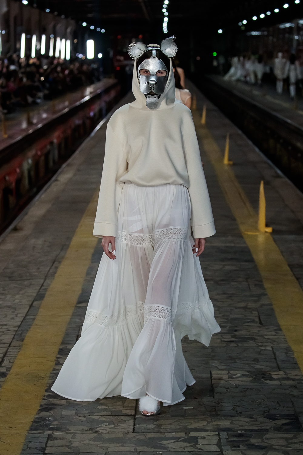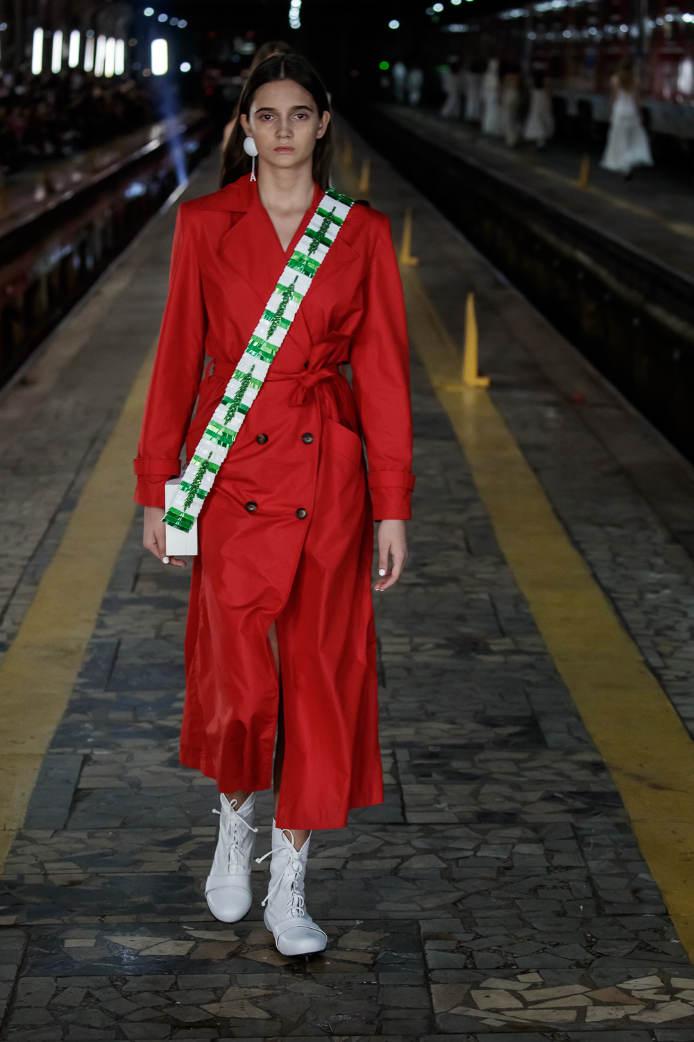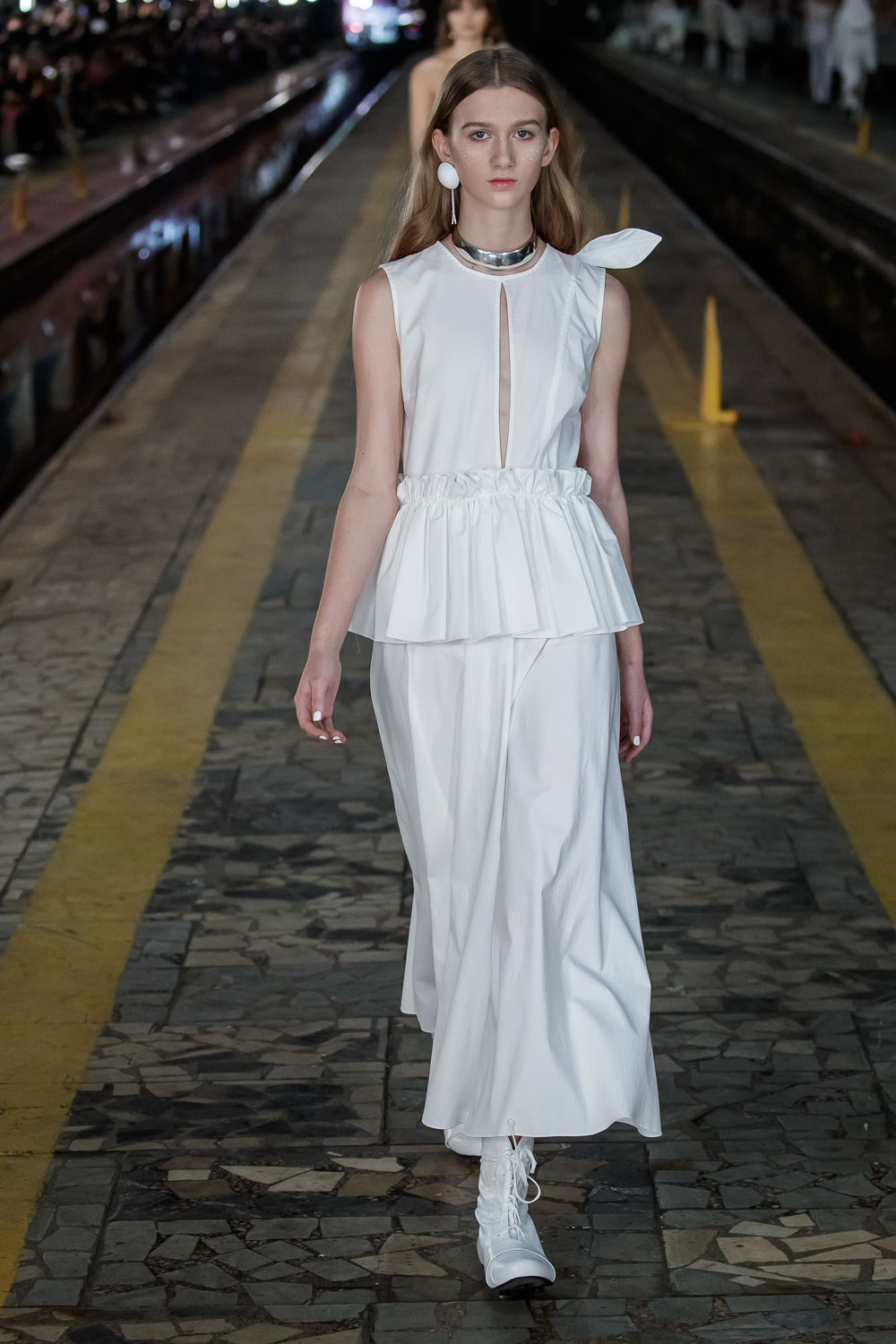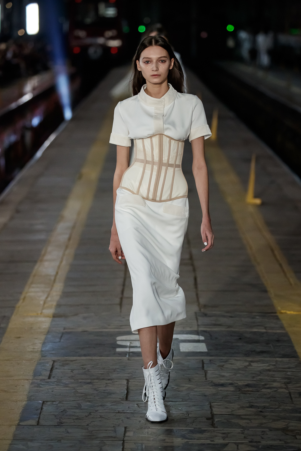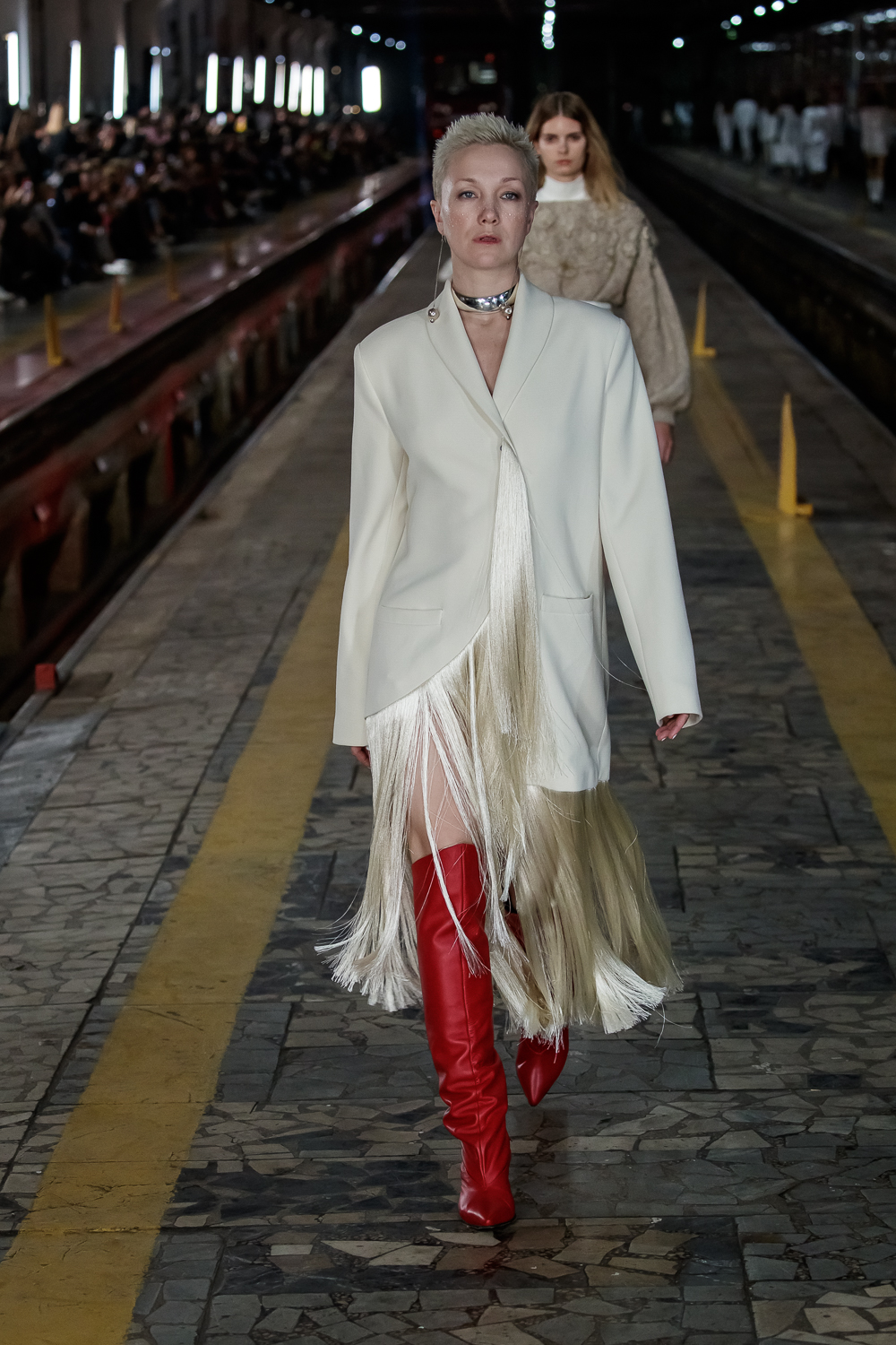 During the Mercedes – Benz Fashion Week Russia, the Russian Designer presented his SS20 Collection right on the railway of the train station in the heart of Moscow.