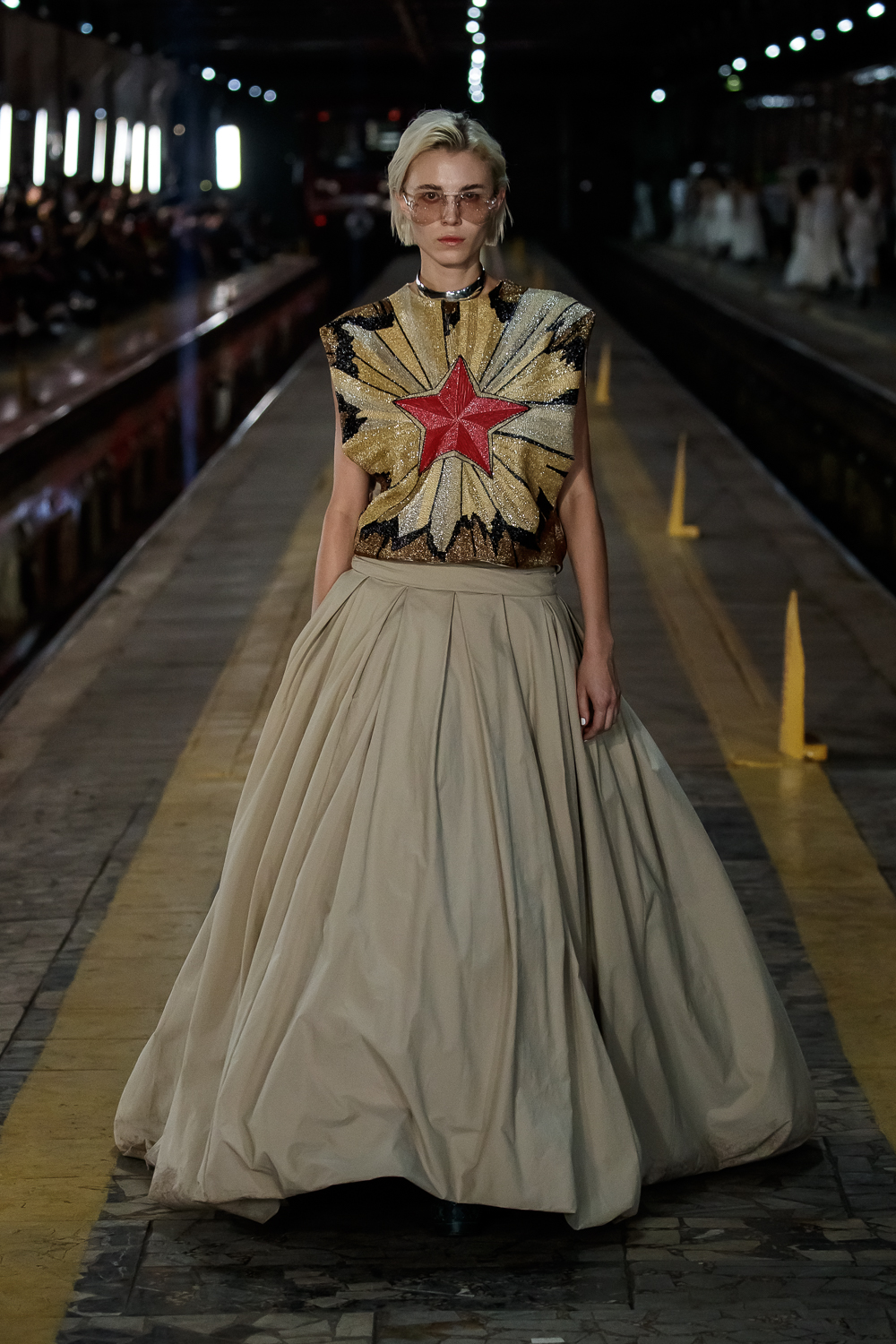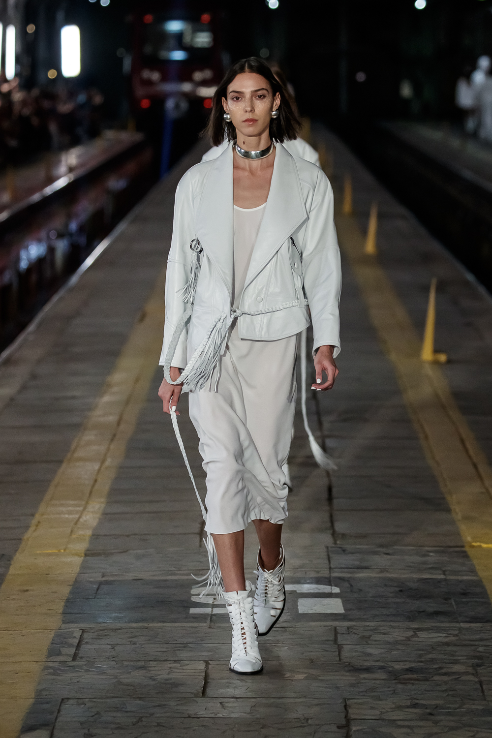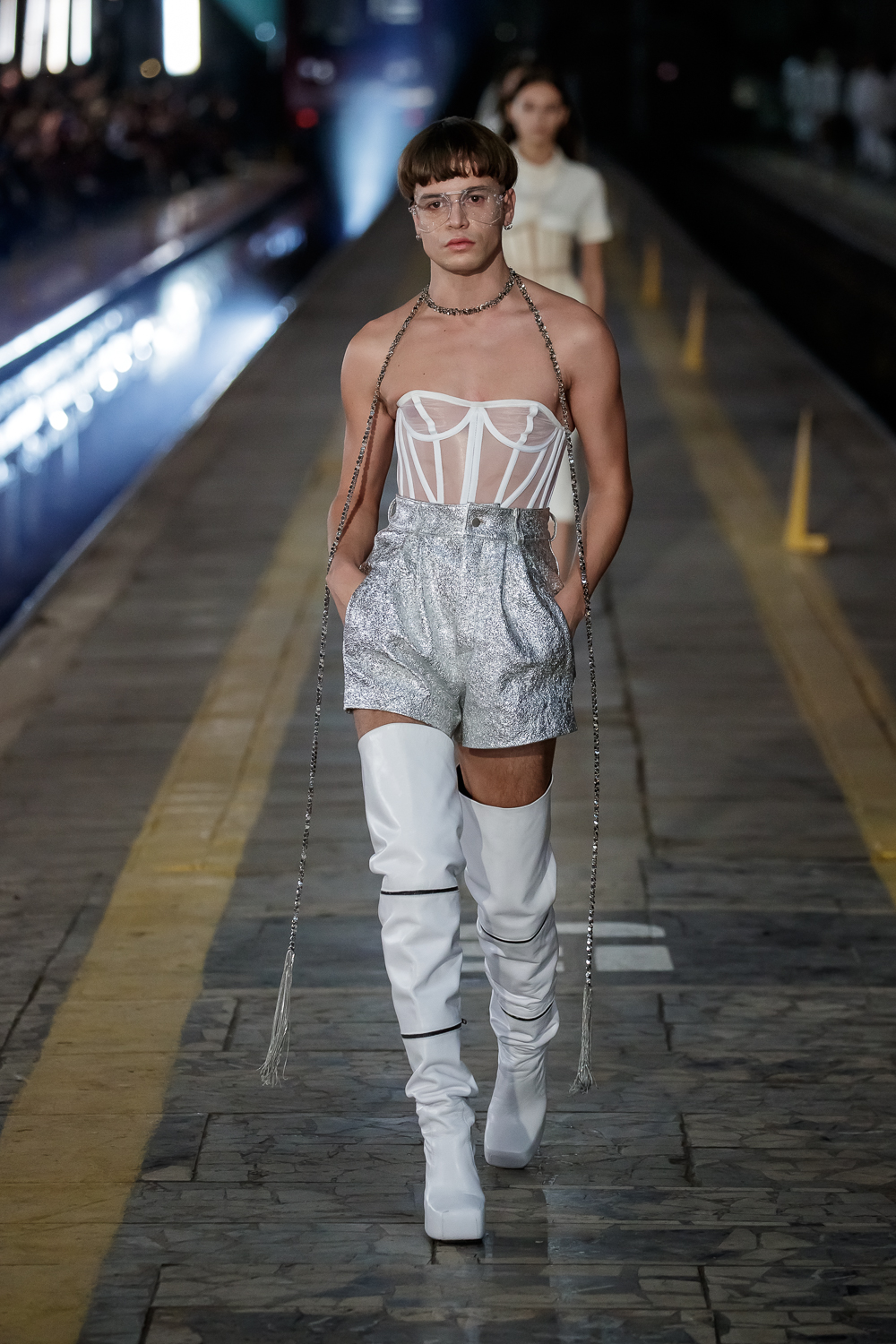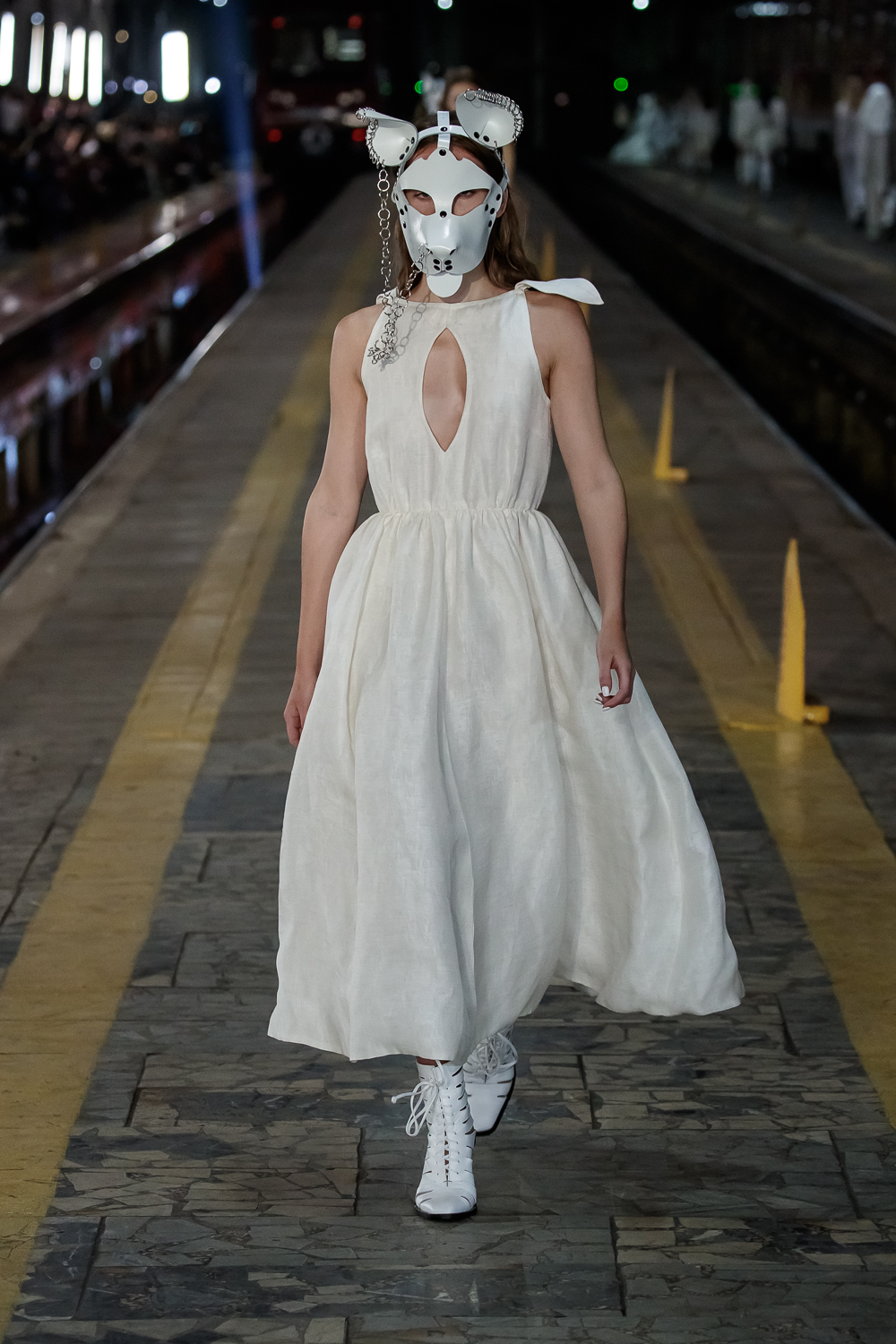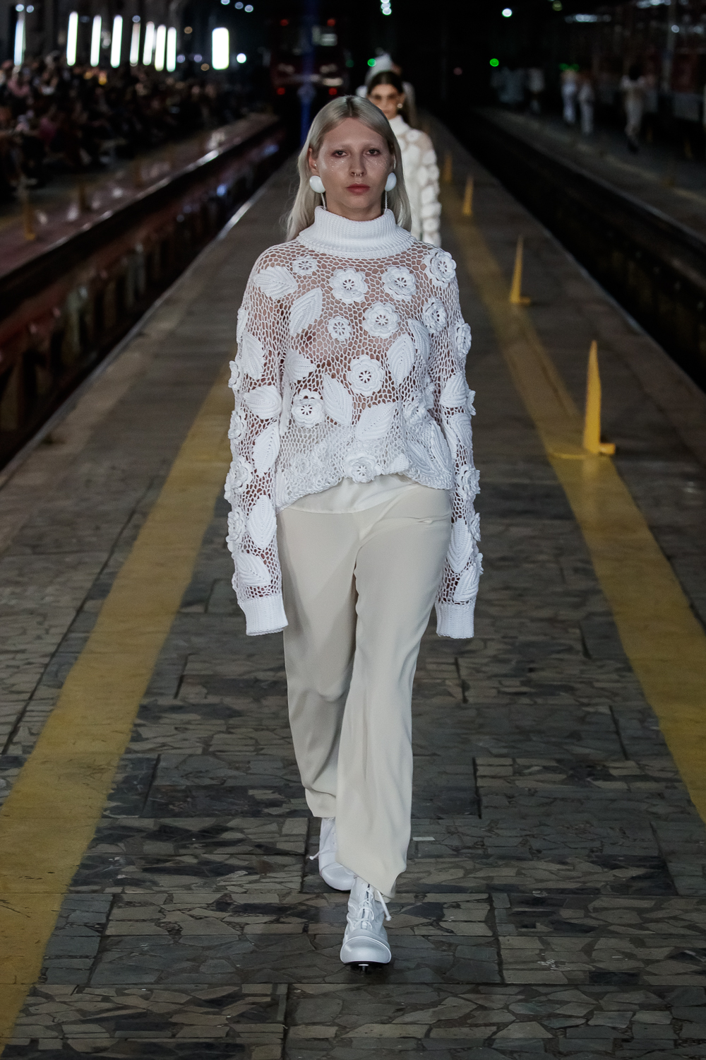 During the Mercedes – Benz Fashion Week Russia, the Russian Designer presented his SS20 Collection right on the railway of the train station in the heart of Moscow.