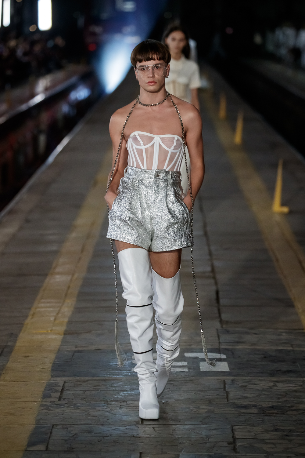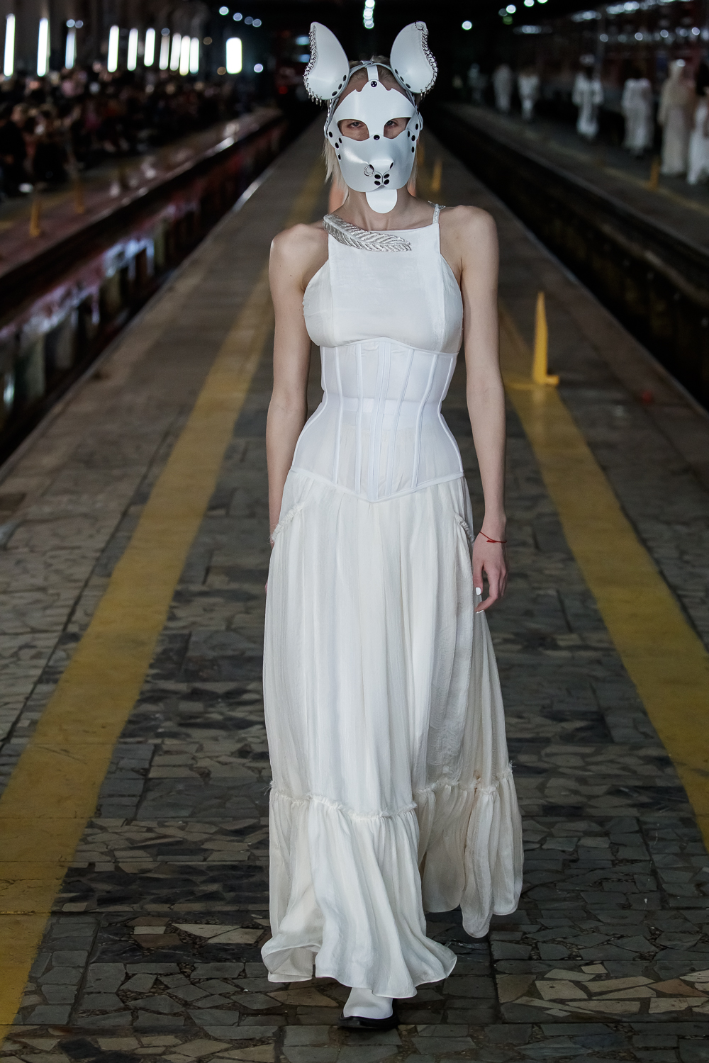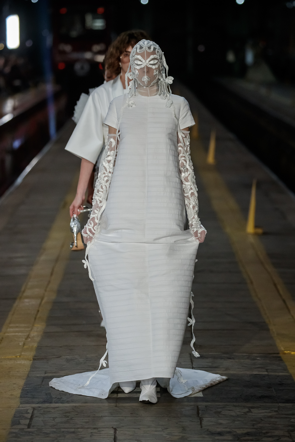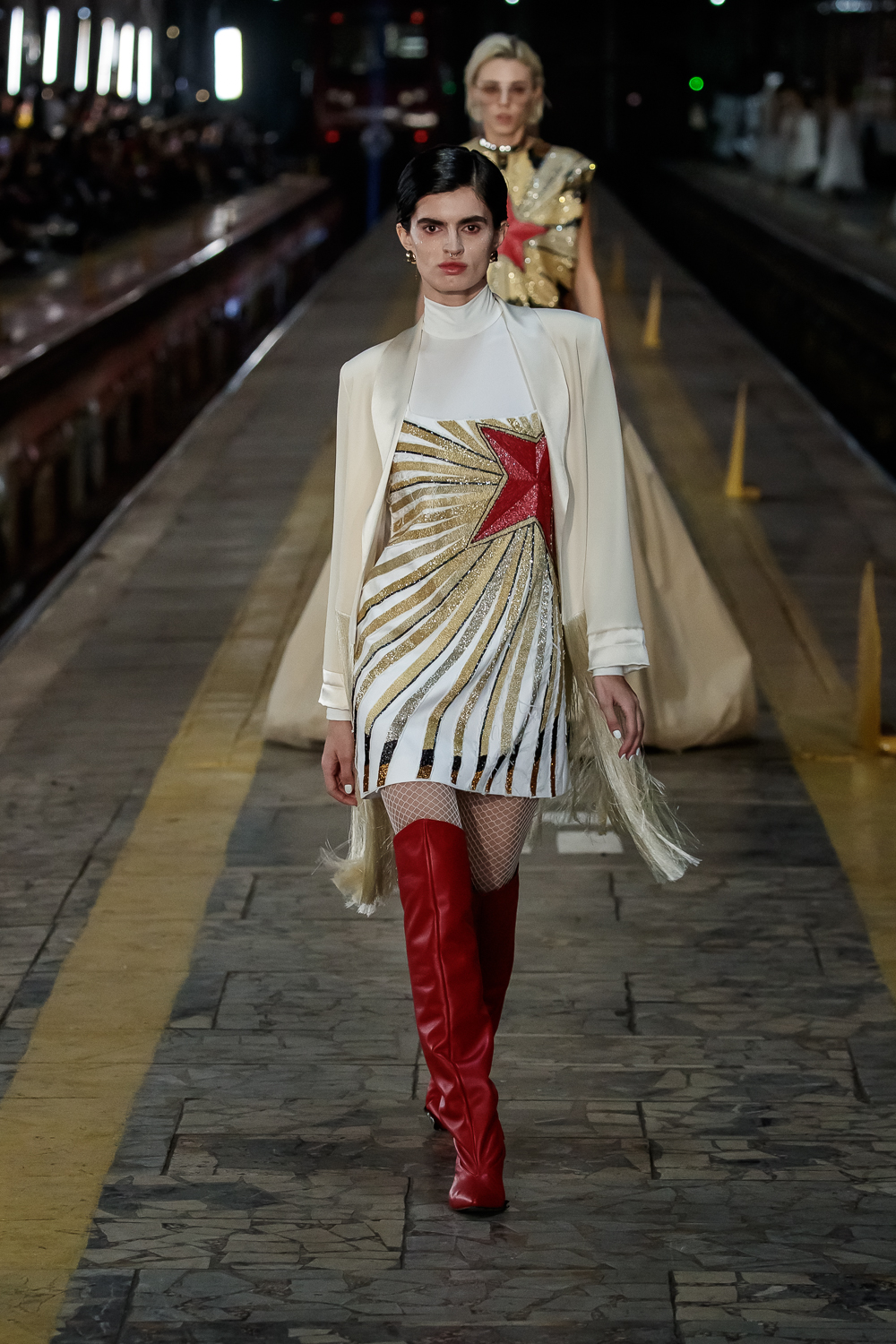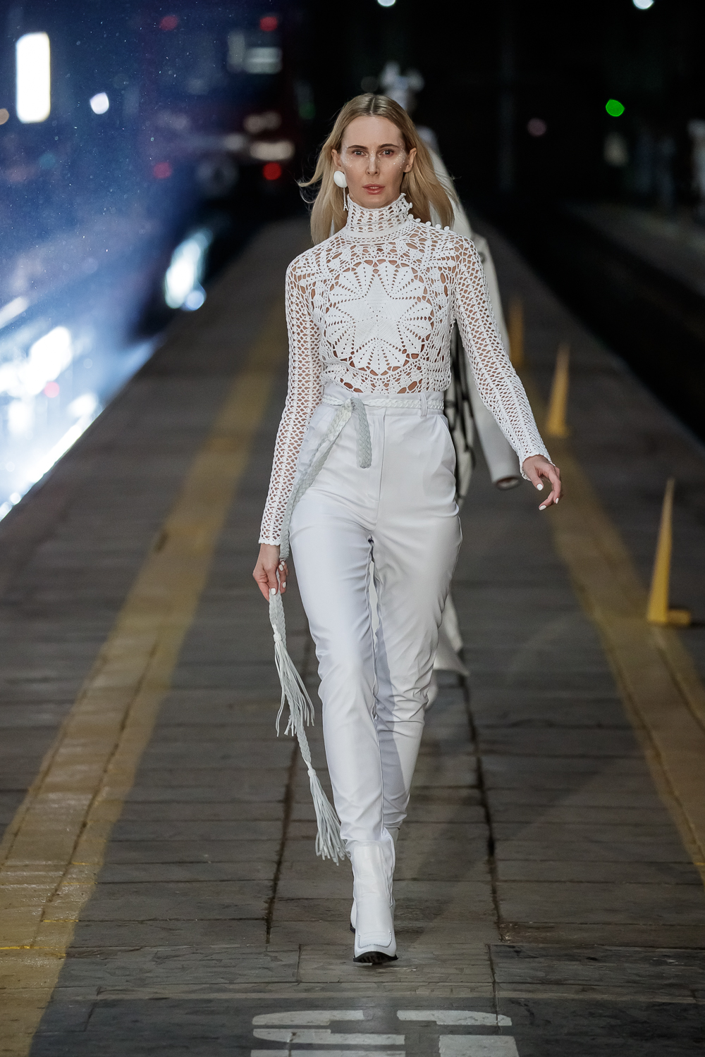 During the Mercedes – Benz Fashion Week Russia, the Russian Designer presented his SS20 Collection right on the railway of the train station in the heart of Moscow.