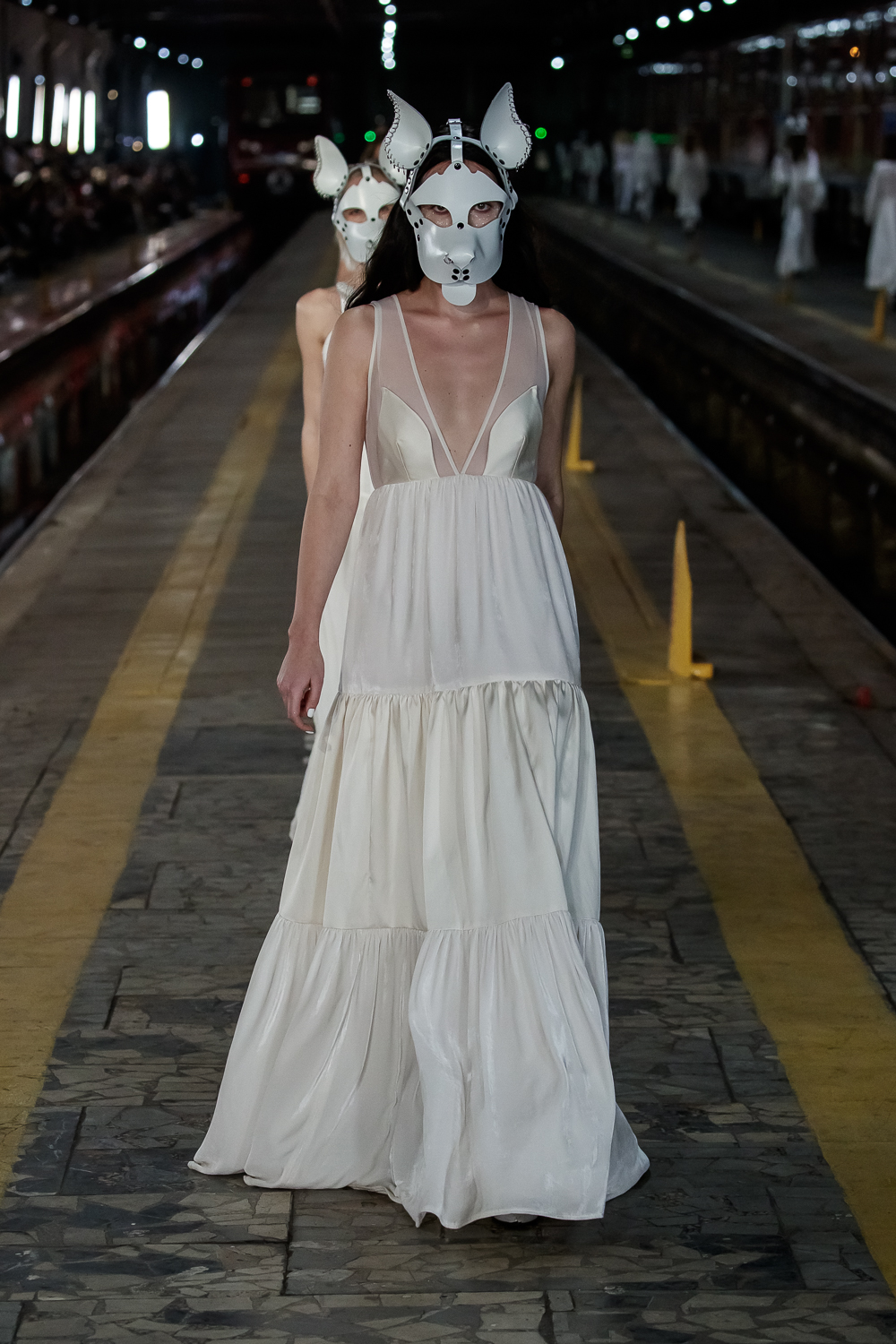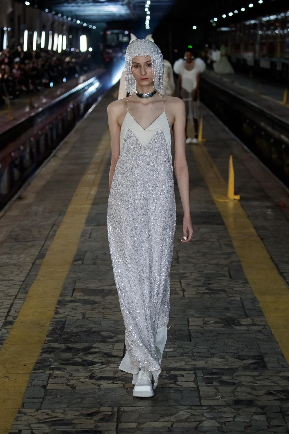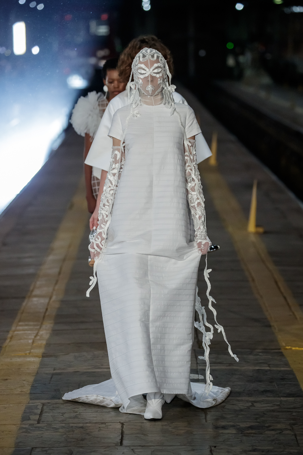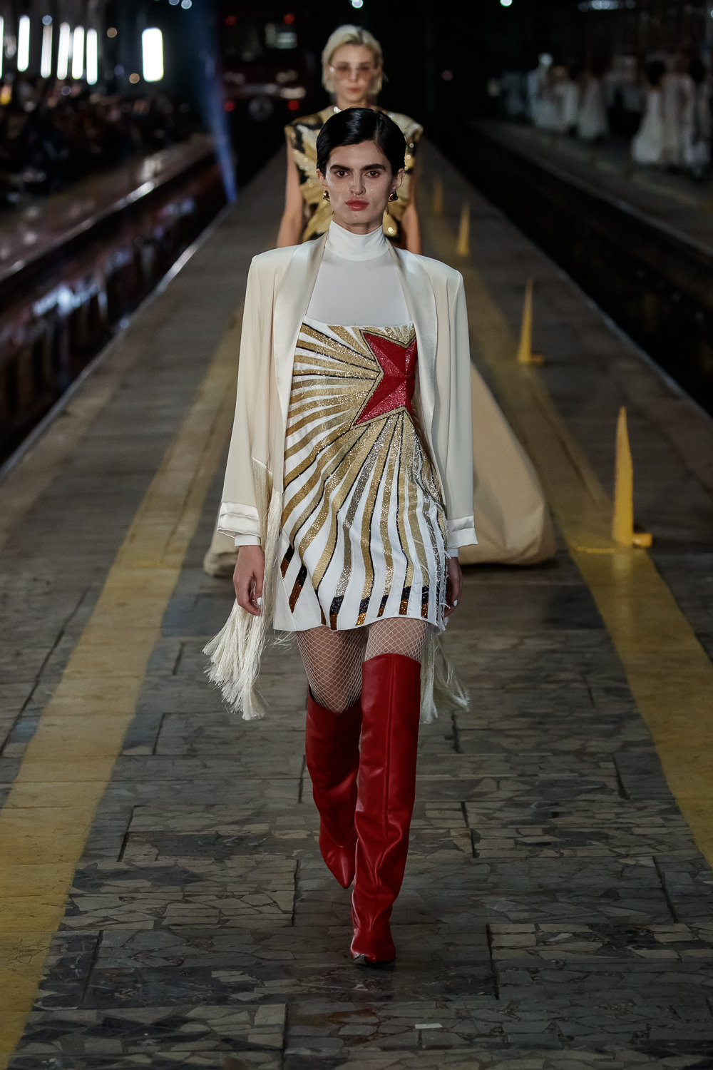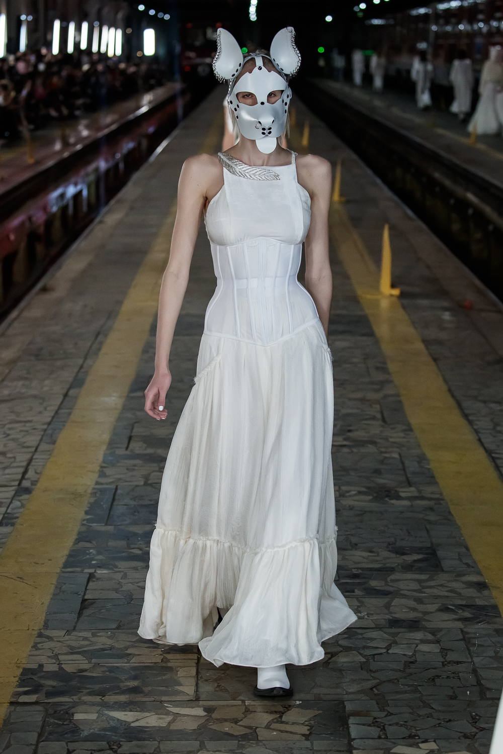 During the Mercedes – Benz Fashion Week Russia, the Russian Designer presented his SS20 Collection right on the railway of the train station in the heart of Moscow.