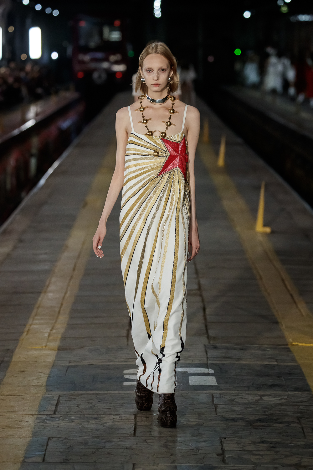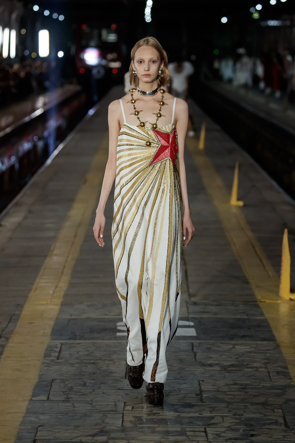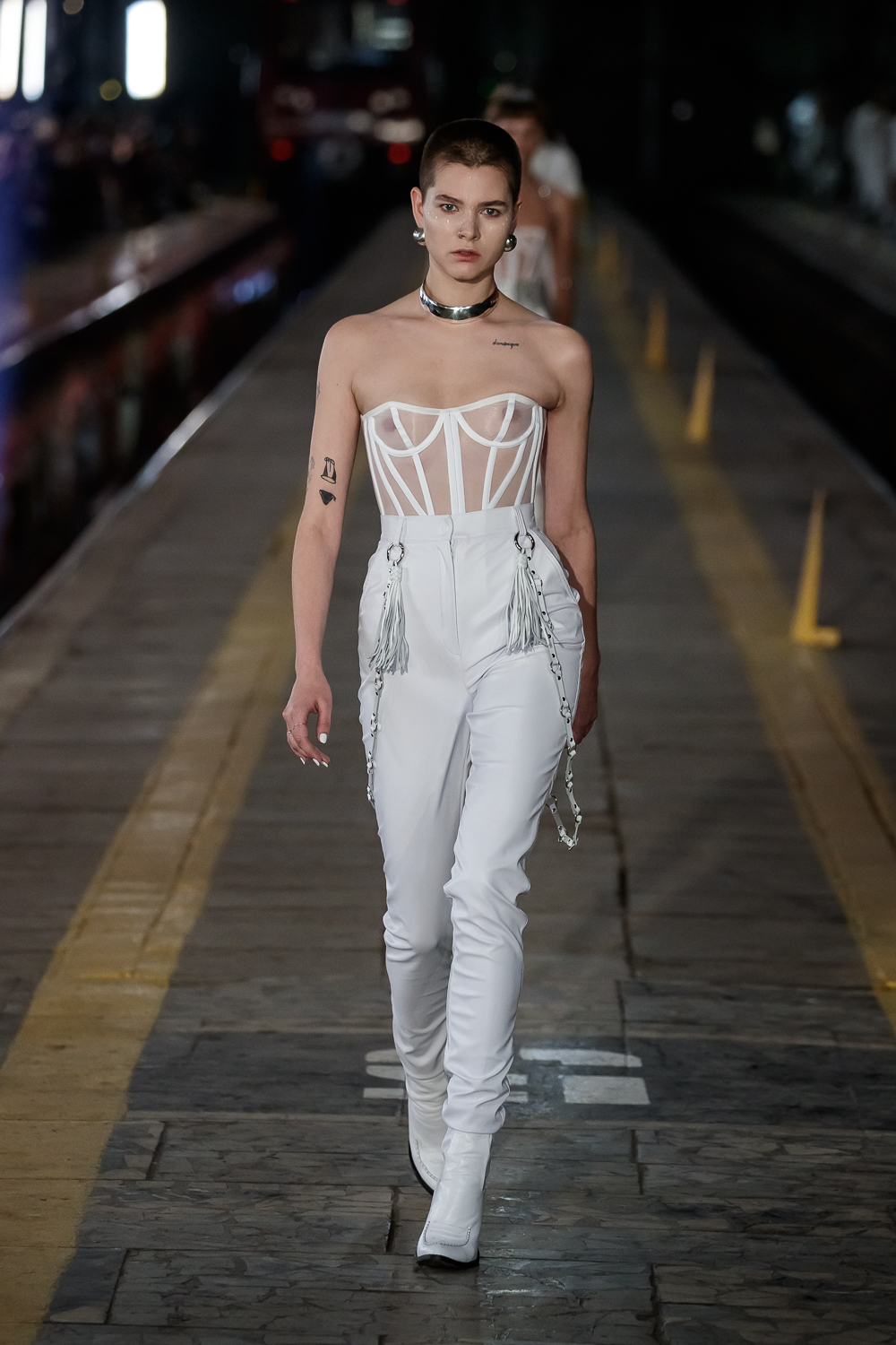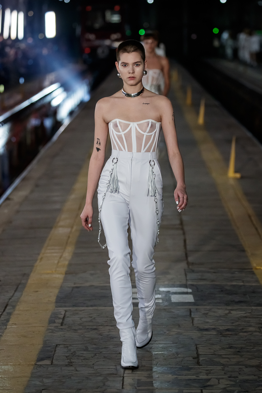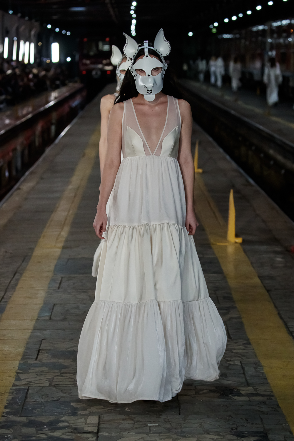 During the Mercedes – Benz Fashion Week Russia, the Russian Designer presented his SS20 Collection right on the railway of the train station in the heart of Moscow.