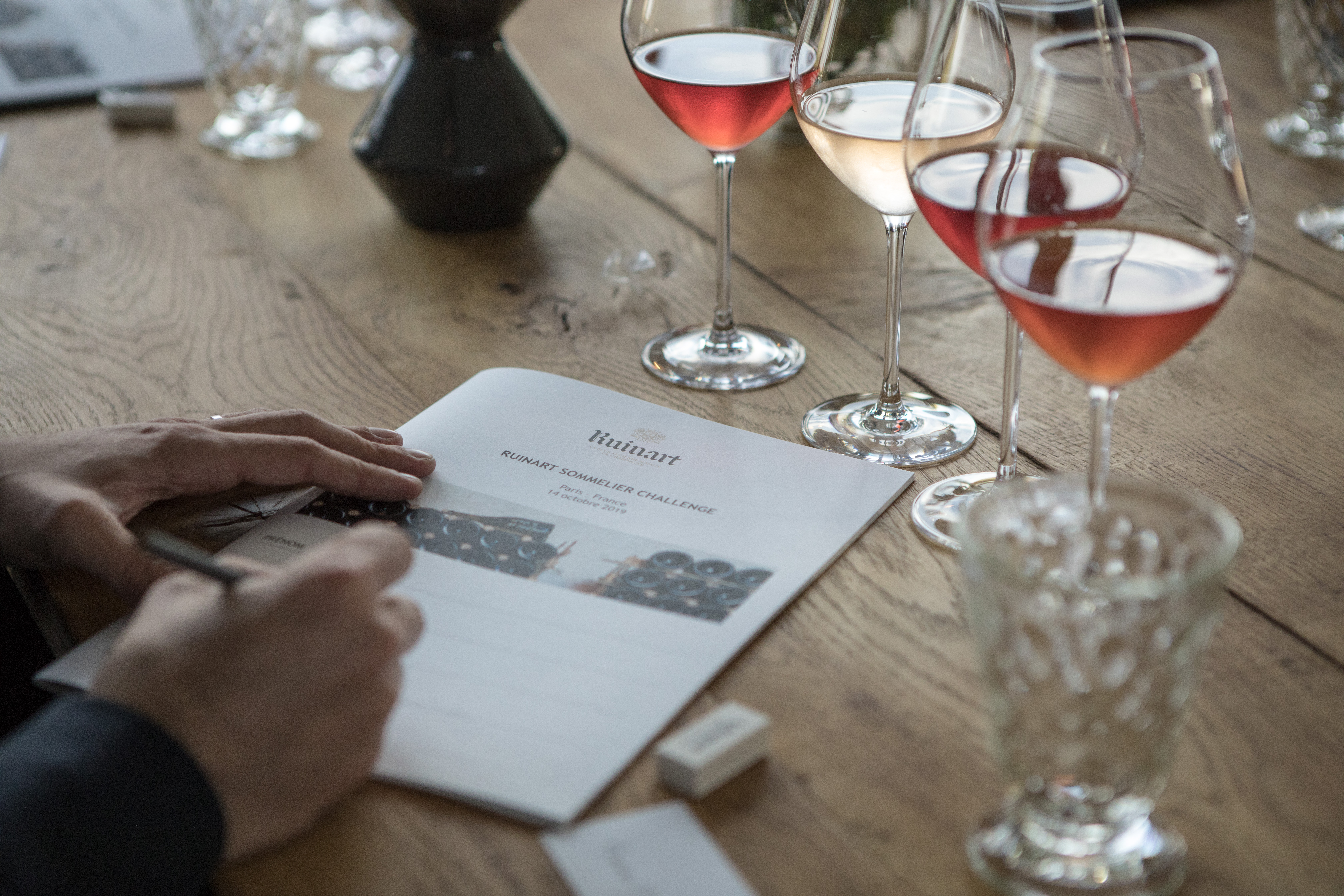 La journée de compétition a été rythmée d’une dégustation à l’aveugle d’une durée de 40 minutes de 4 vins rosés provenant de différentes régions du monde. L’occasion de rappeler aux participants que Ruinart fut la première maison de champagne à fabriquer du champagne rosé en 1764 et de leur faire découvrir en avant-première le Dom Ruinart Rosé 2007..