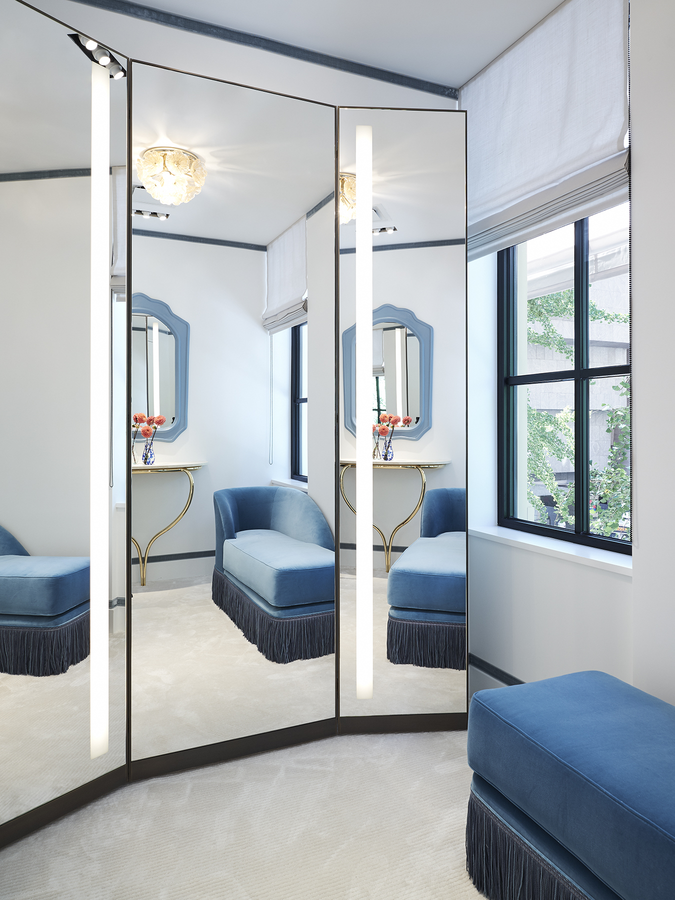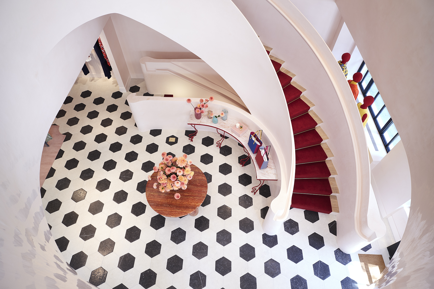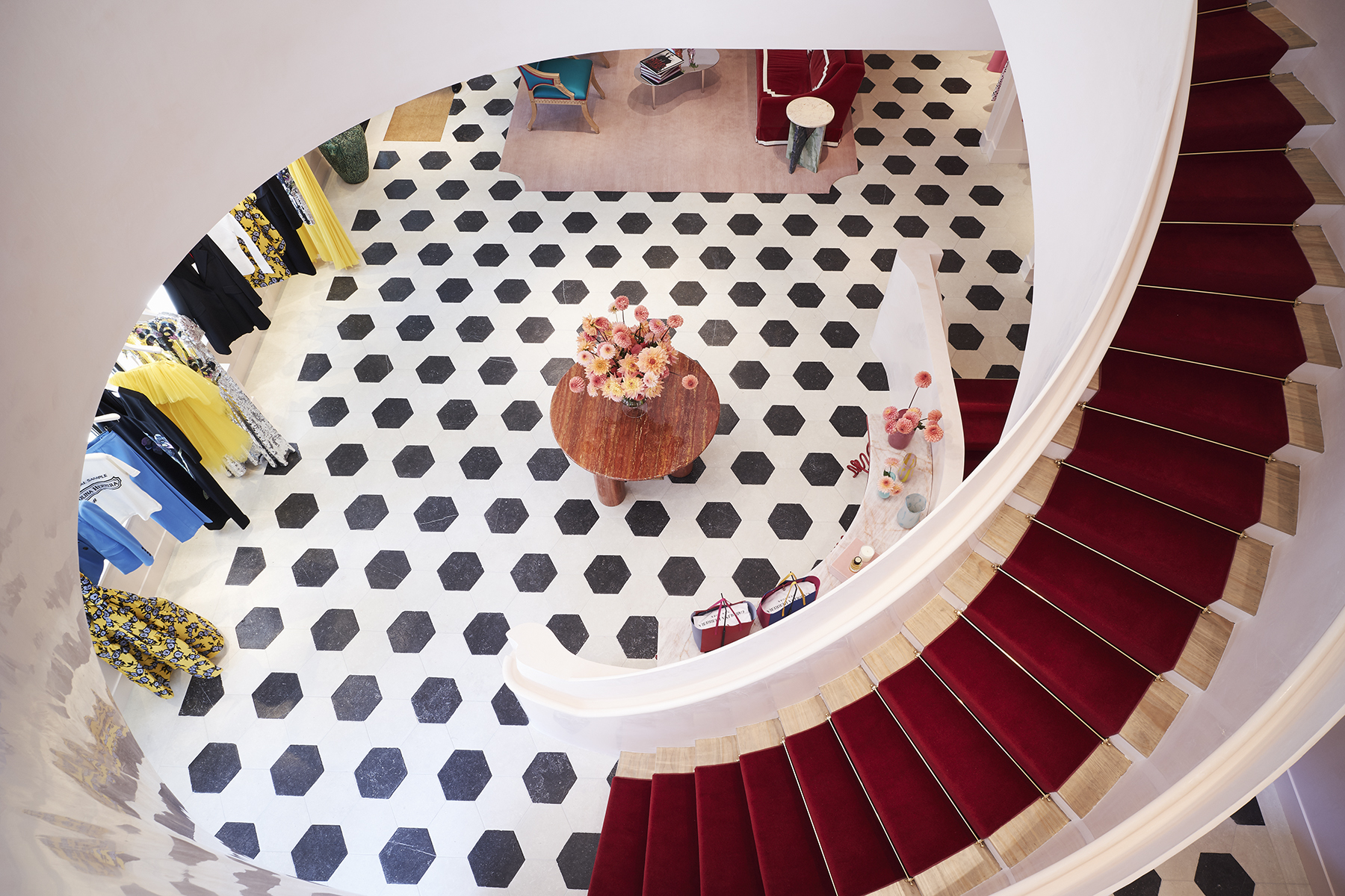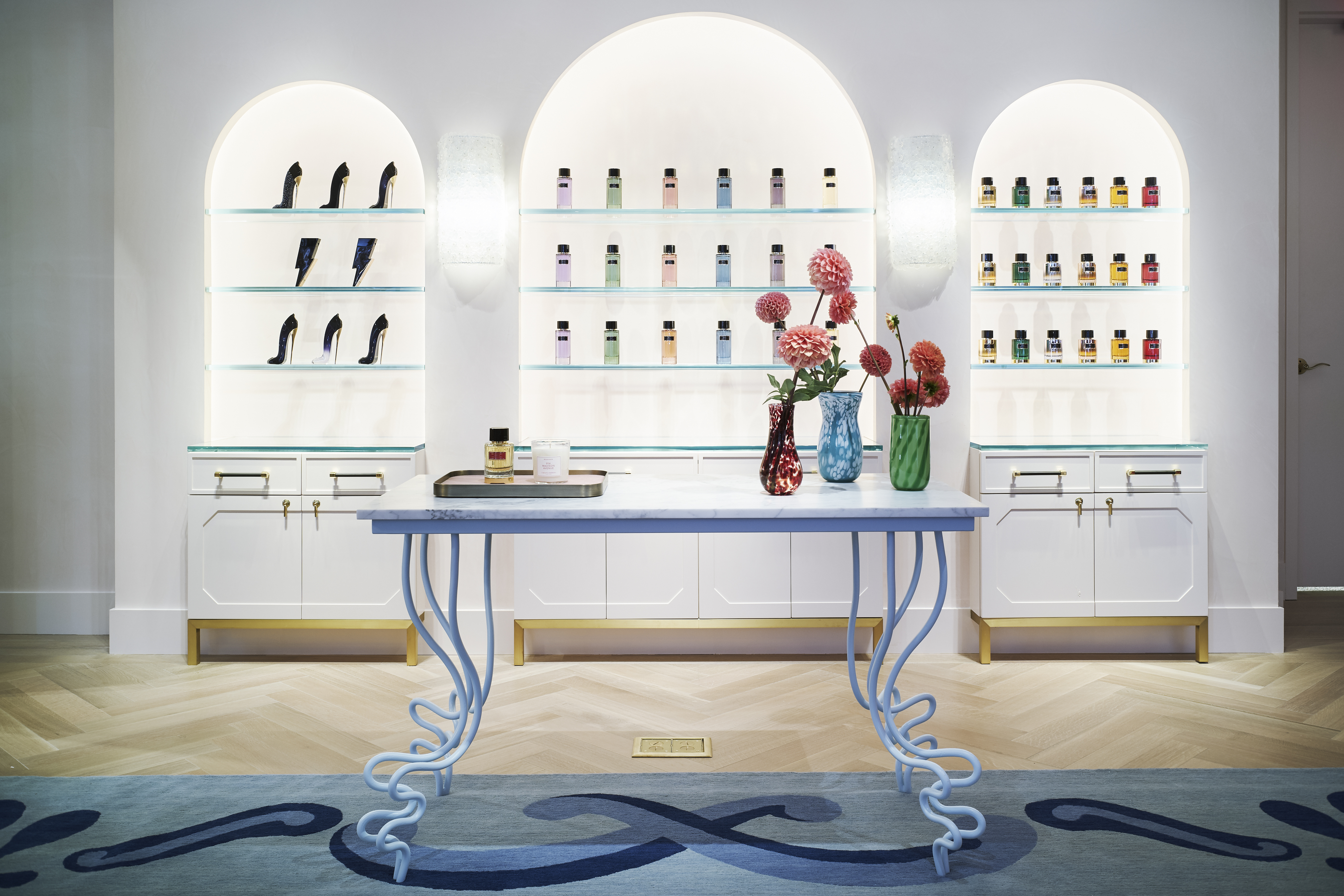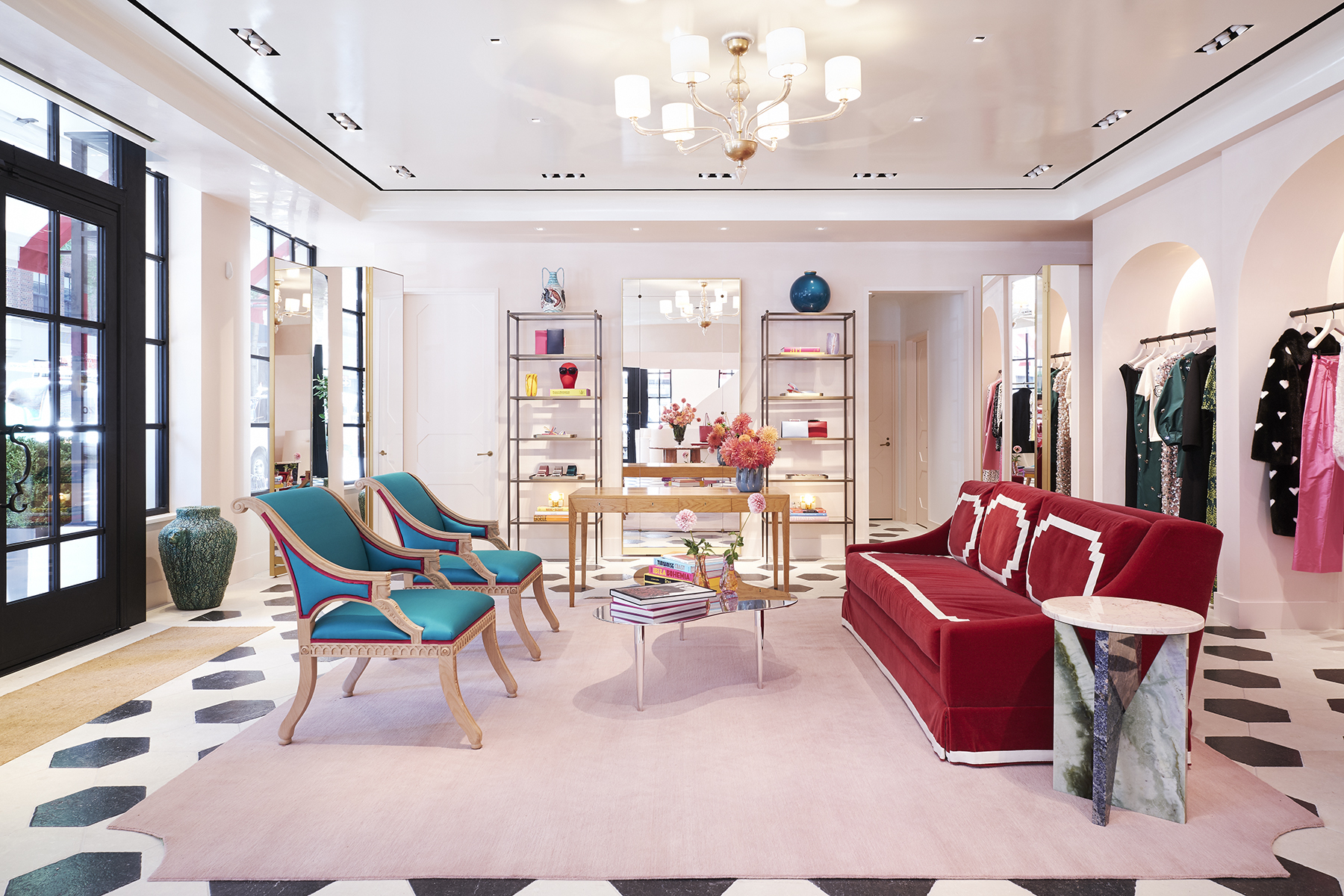 L’espace a été conçu dans l’intention de préserver la provenance et l’histoire du bâtiment Upper East Side, tout en le modernisant au moyen de meubles et d’éléments décoratifs faisant entrer dans la modernité, la jeunesse, la couleur, la fantaisie, le jeu et le divertissement, à l’instar de ses collections.