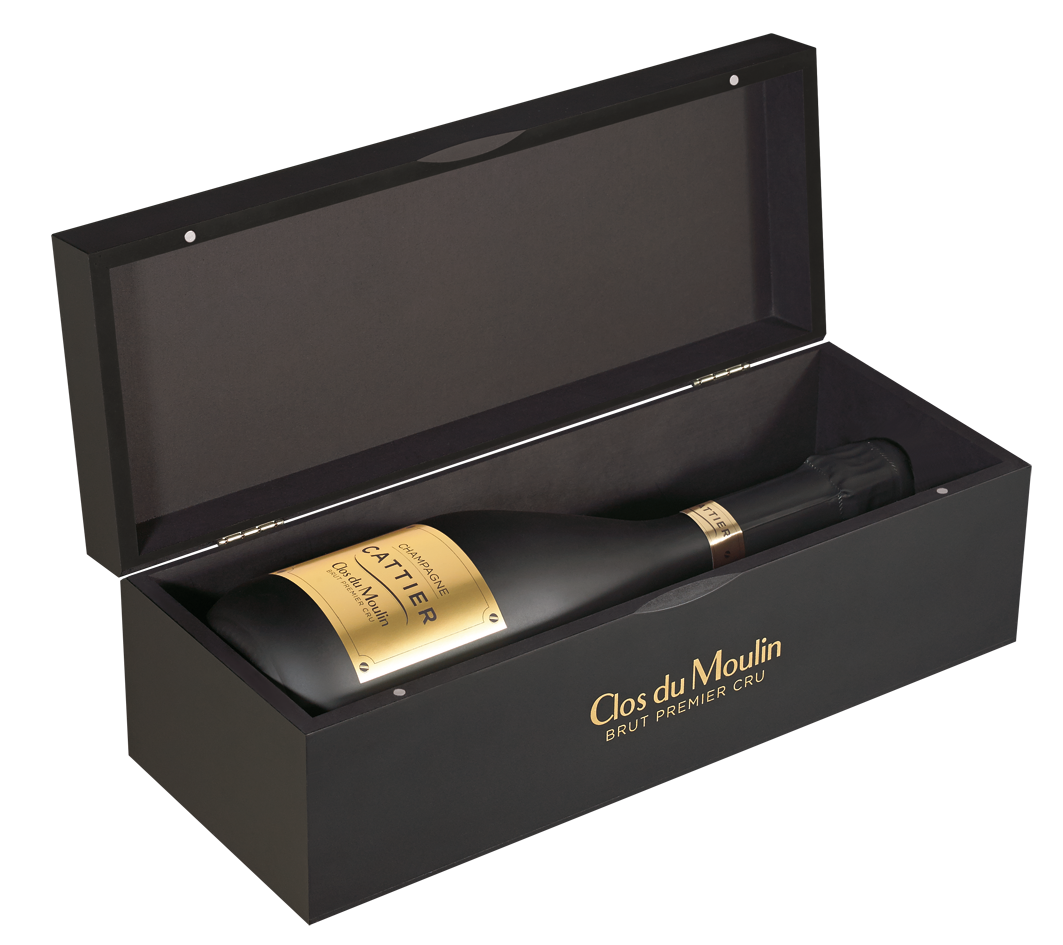 - LE COFFRET CLOS DU MOULIN, BRUT PREMIER CRU Le Clos du Moulin Brut Premier Cru joue sur les codes du luxe avec sa cuvée numérotée qui se pare d’une robe noire satinée et d’une étiquette sérigaphiée dorée tout en finesse. Pour les fêtes de fin d’année, ce flacon se loge dans un élégant coffret en bois laqué noir mat pour révéler son caractère exceptionnel.