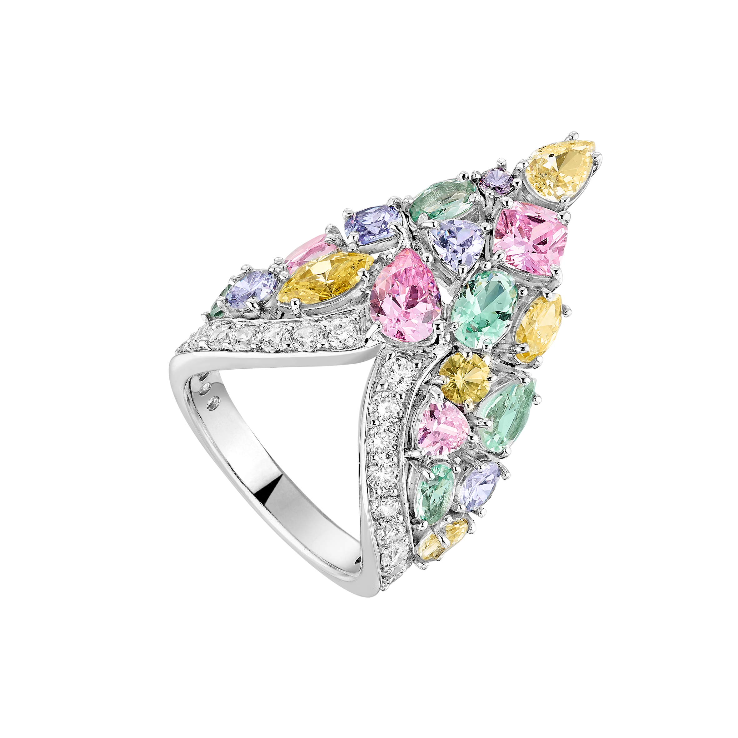 Alexandra Zarcate, 4ème génération et directrice artistique de la Maison a imaginé dix-neuf créations serties de Burmalite™ multi-pastels et blanche, gemme de synthèse signature du joaillier français, aux portés variés, définition d’une allure au quotidien.