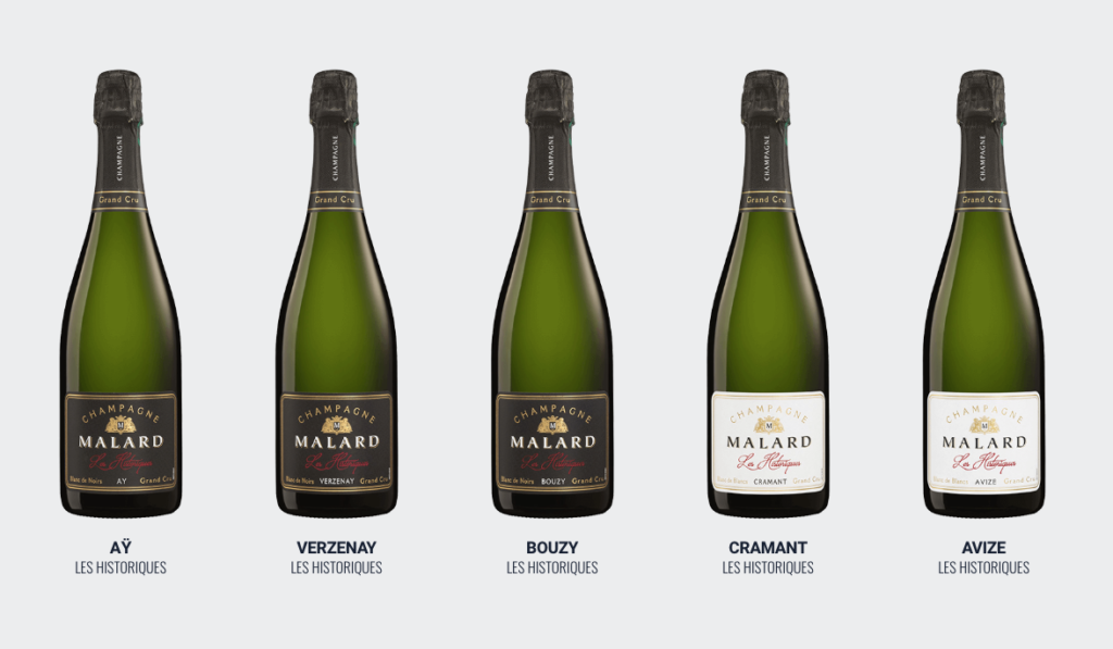 A l’occasion des fêtes de fin d’année, la Maison Malard met à l’honneur l’un de ses plus beaux coffrets : « Les Historiques ». Rigoureusement sélectionnés auprès de vignerons partenaires, les raisins de ces bouteilles sont issus des 5 villages Grands Crus : Ay, Avize, Bouzy, Cramant, et Verzenay. Un cadeau idéal pour une occasion spéciale !