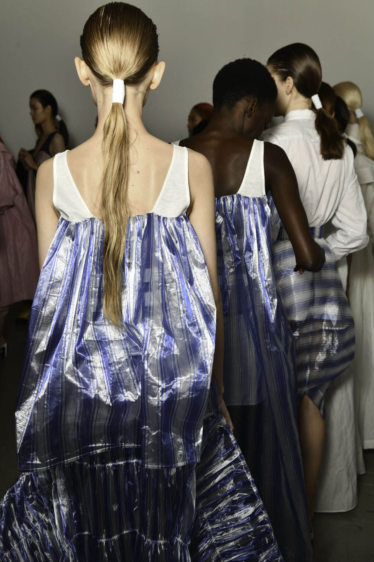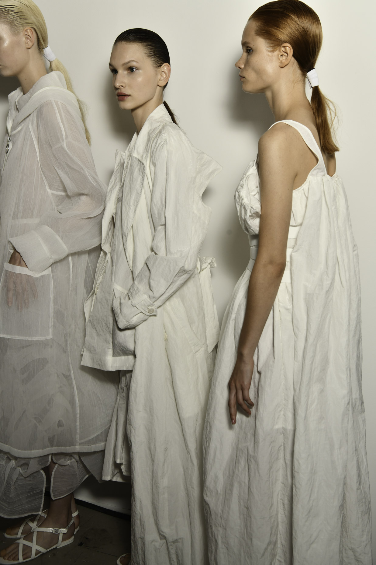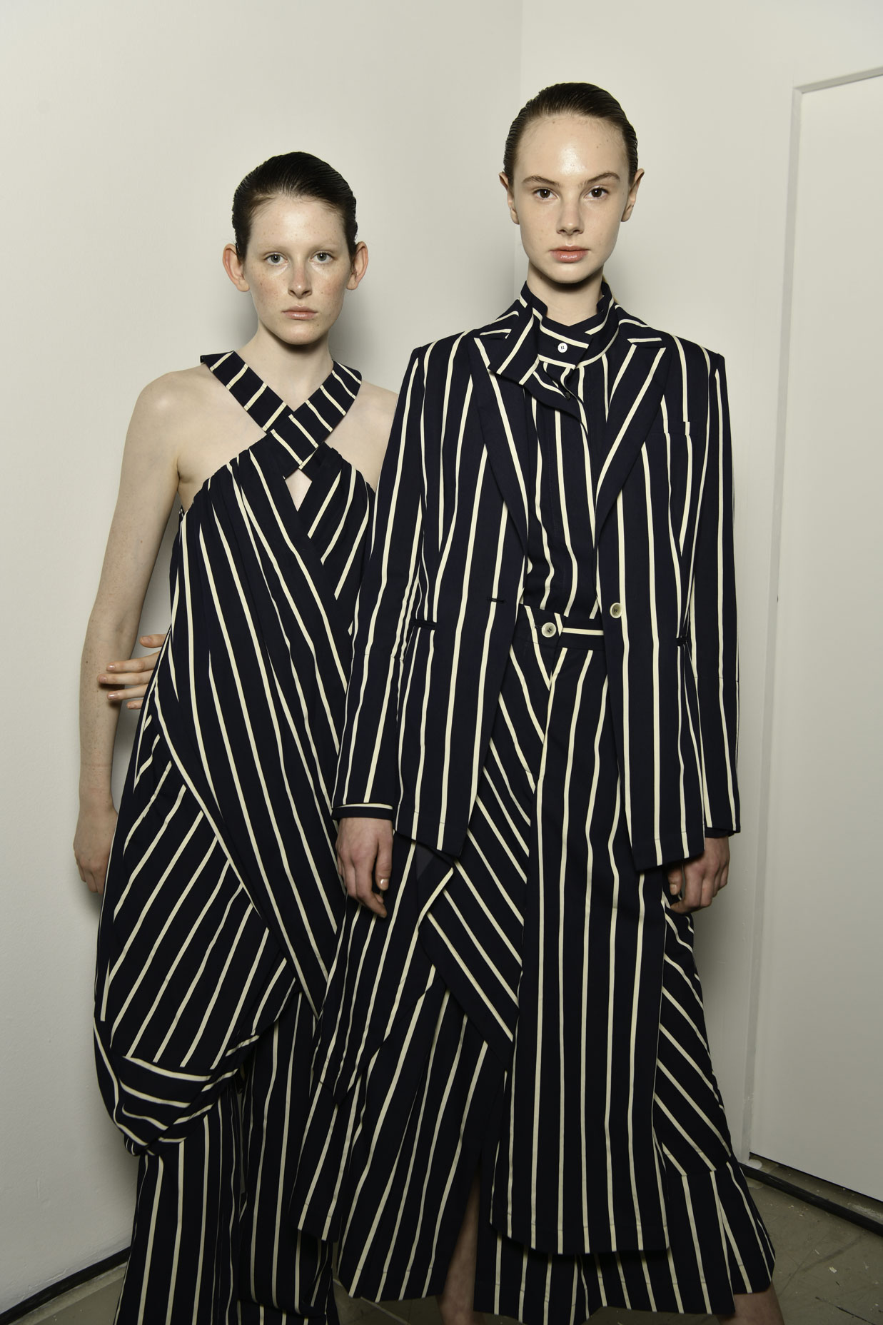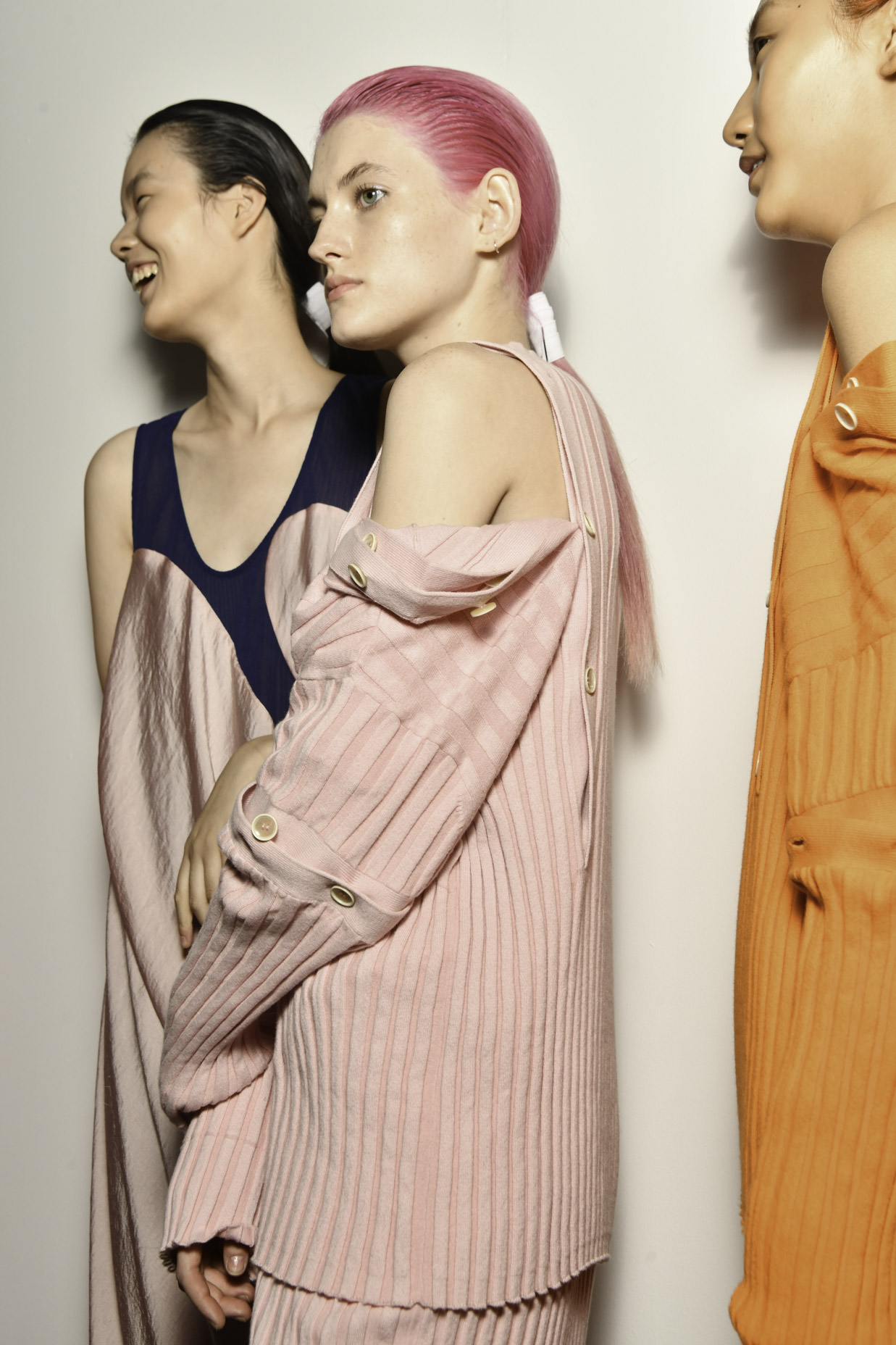 In DAWEI’s 2020 Spring Summer collection, asymmetric draping and ruffles are like waves surrounding the body, creating sculpture-like silhouettes, gives away subtle hint from the ancient plain. But this is not just a scenery tour, deconstructed details on knitted maxi-dress or corset reveals the carefully curated narratives.