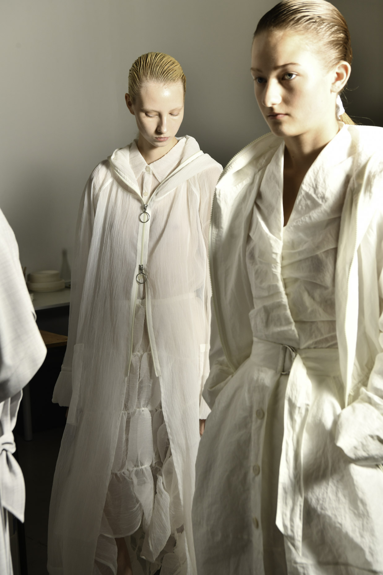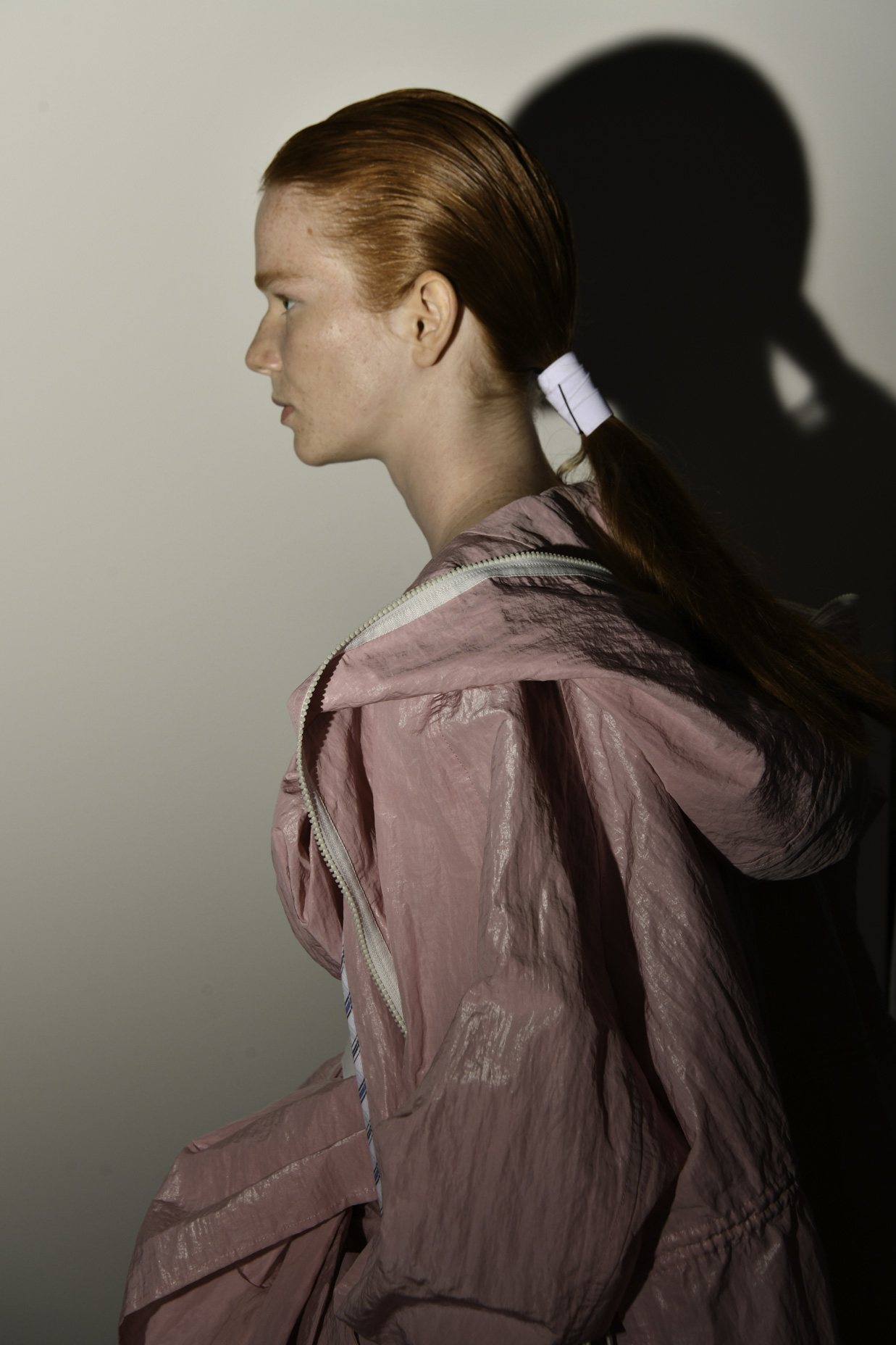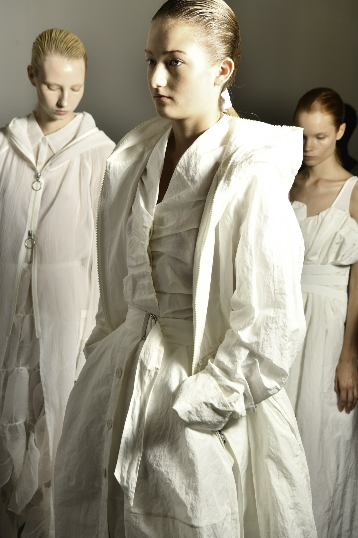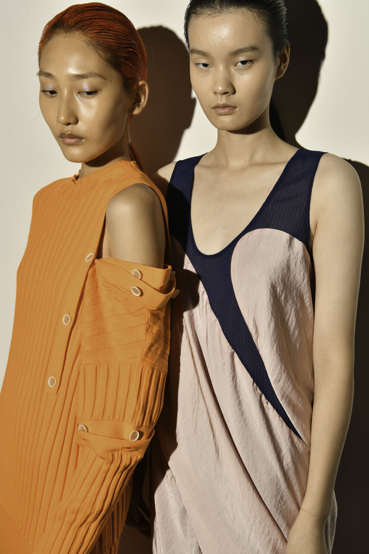 Paper-like fabric is as light as air, creating a free moving silhouette, asymmetric and sporty elements can be found in details. Among all the different shades of white, there are vibrant colours like neon lights shinning in the future-world city.