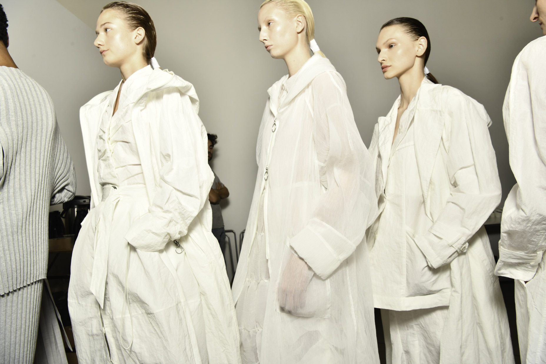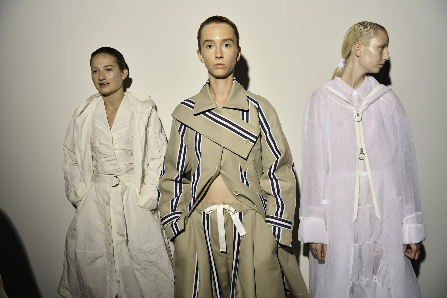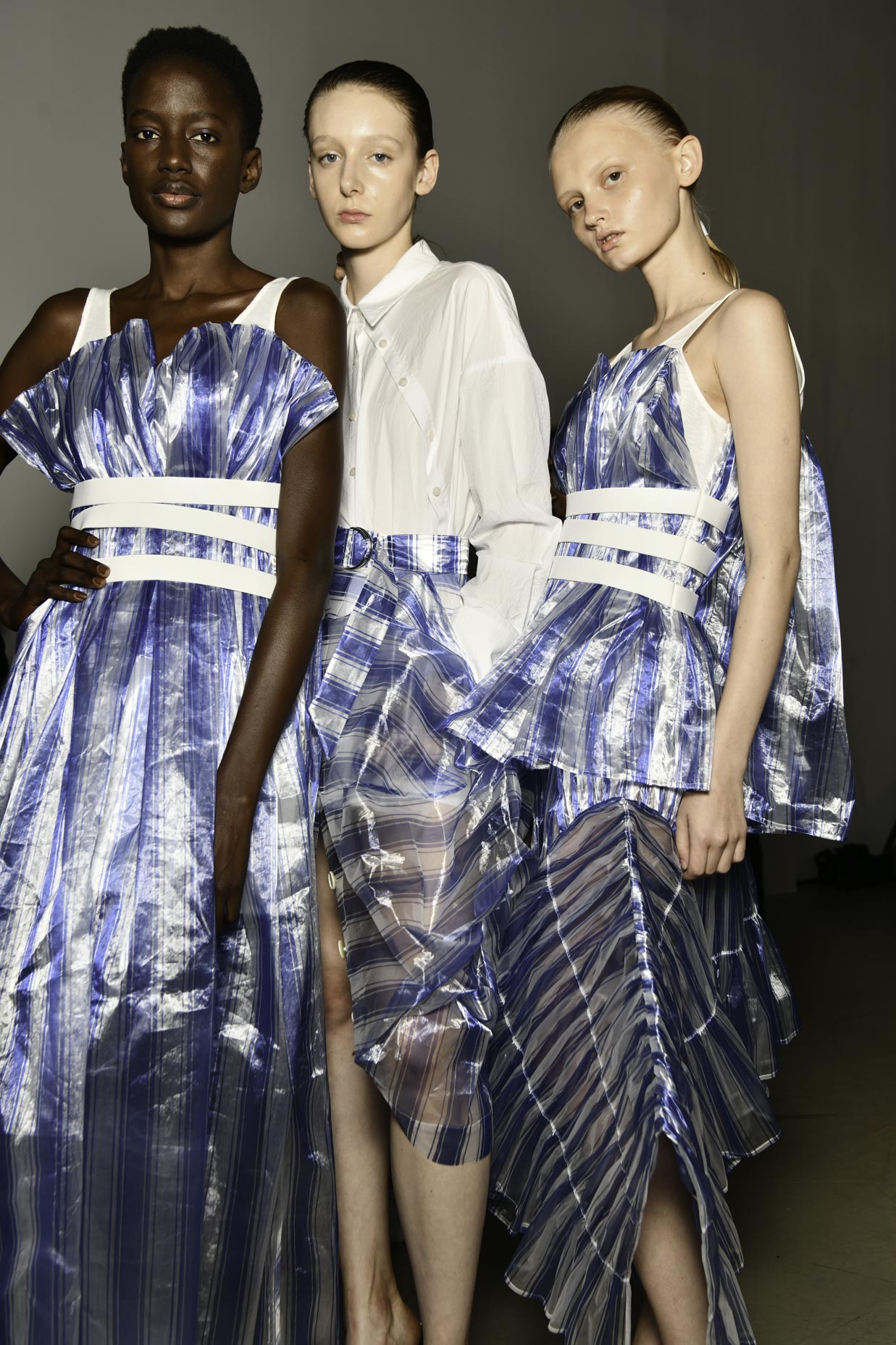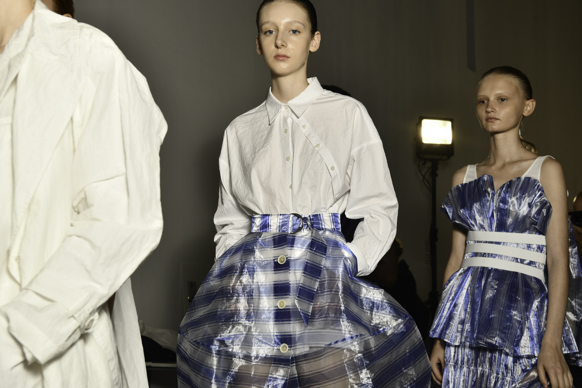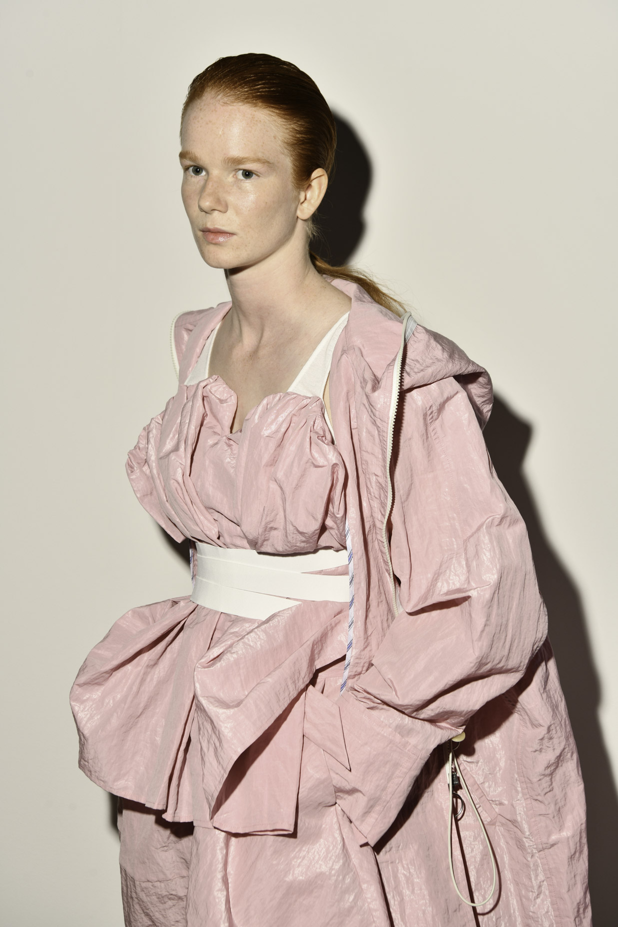 Paper-like fabric is as light as air, creating a free moving silhouette, asymmetric and sporty elements can be found in details. Among all the different shades of white, there are vibrant colours like neon lights shinning in the future-world city.