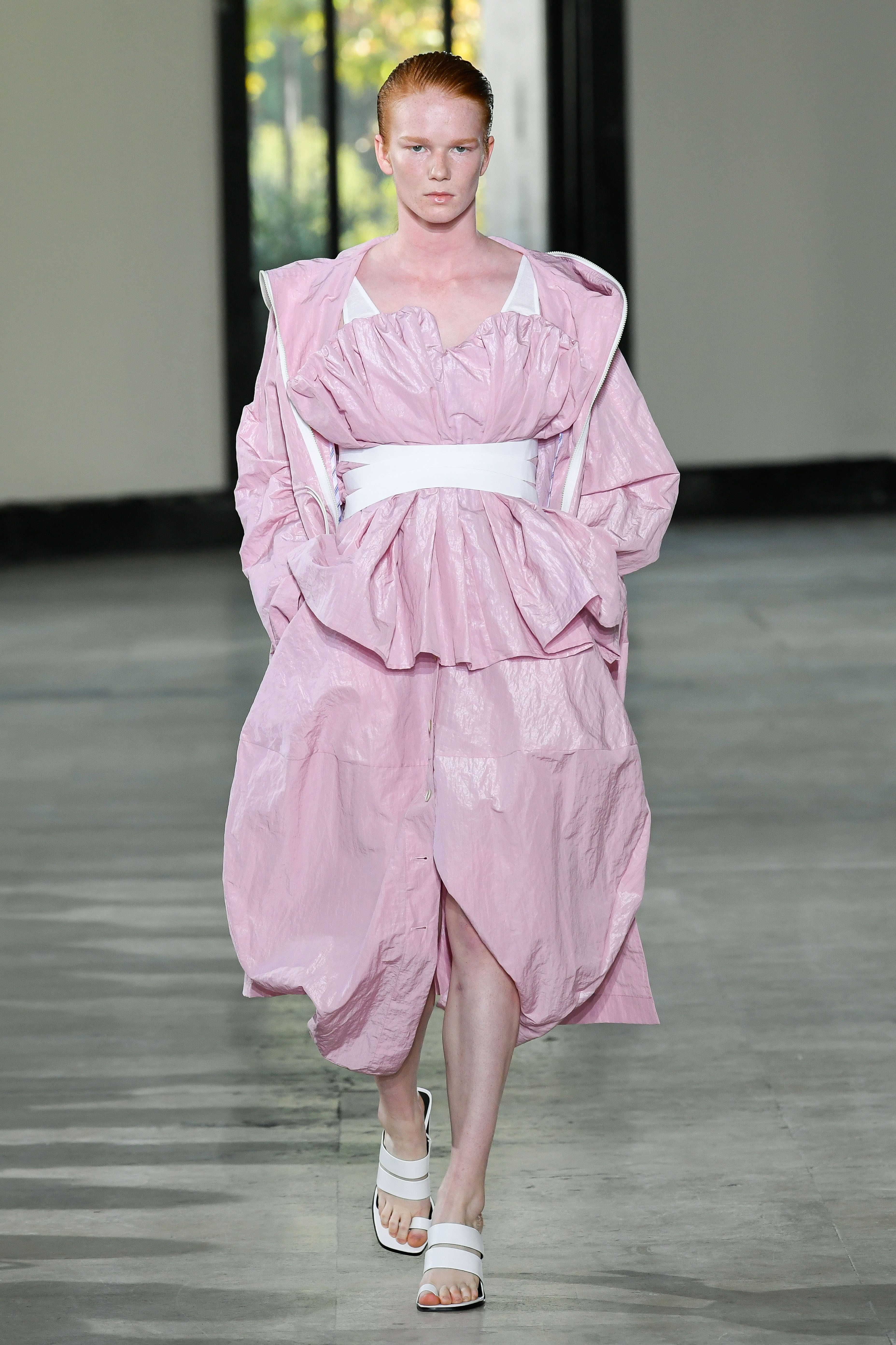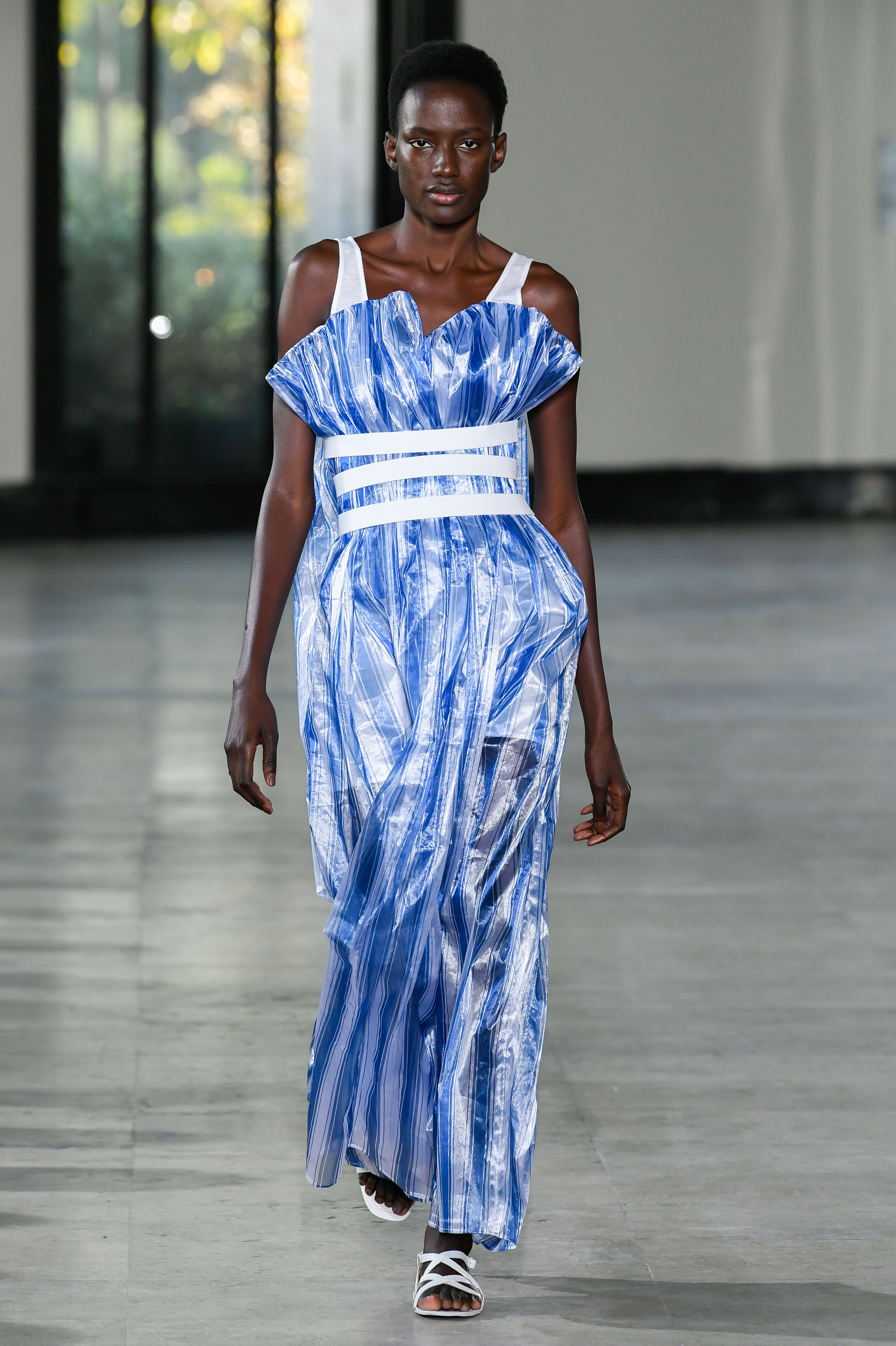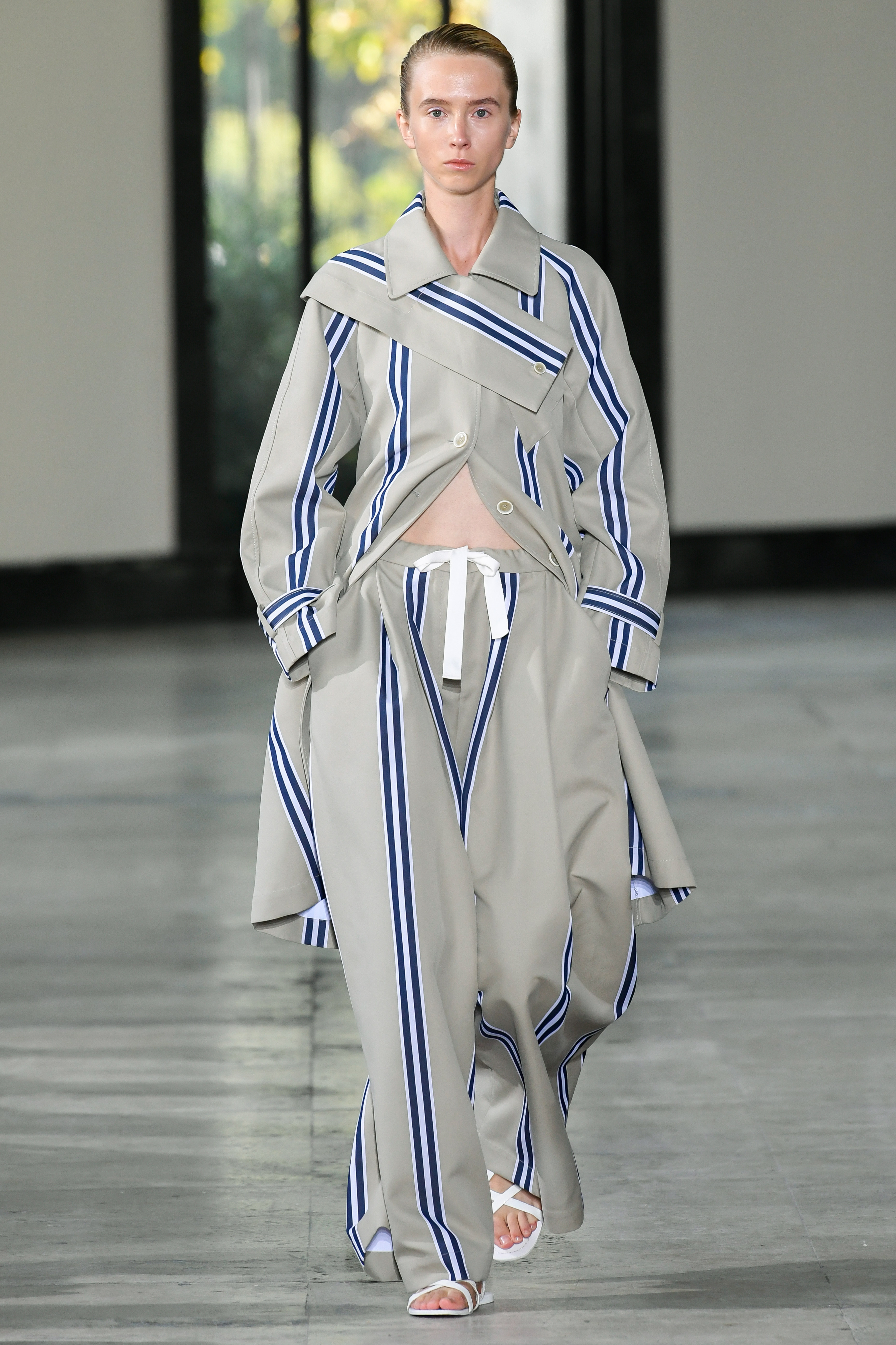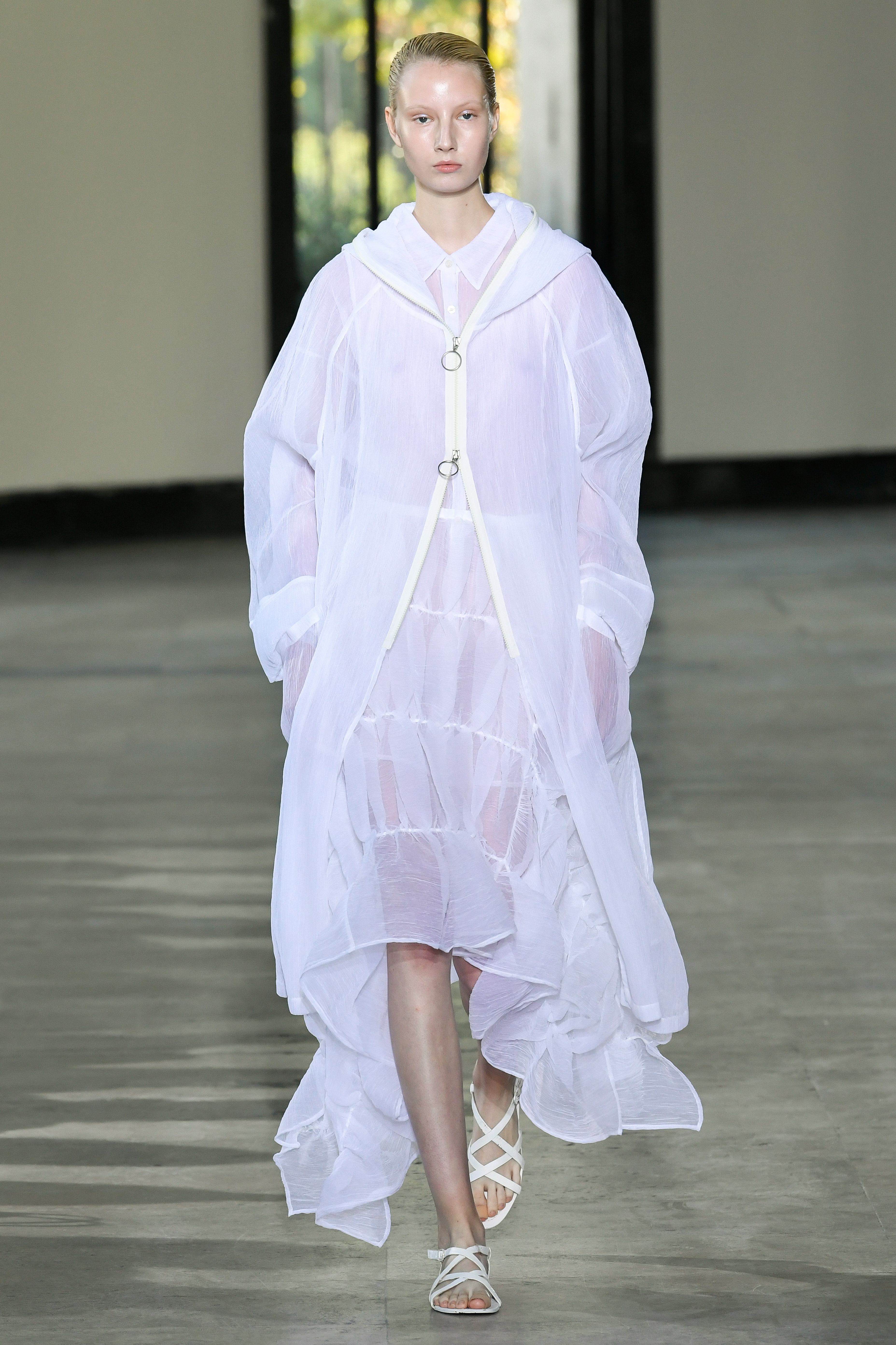 - Model wears an outfit , as part of the women ready-to-wear summer 2020, women fashion week, Milan, Ita, from the house of Dawei
