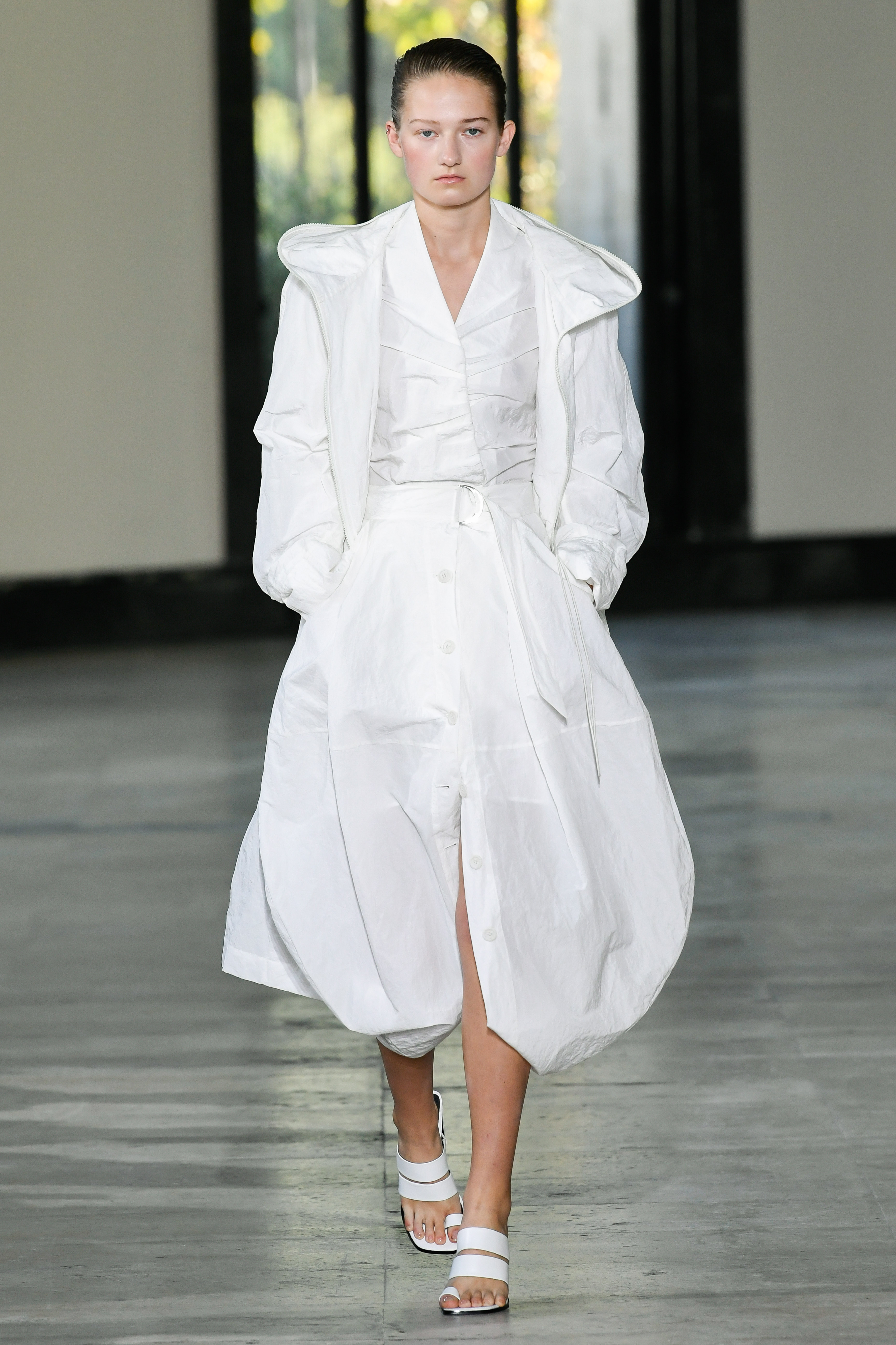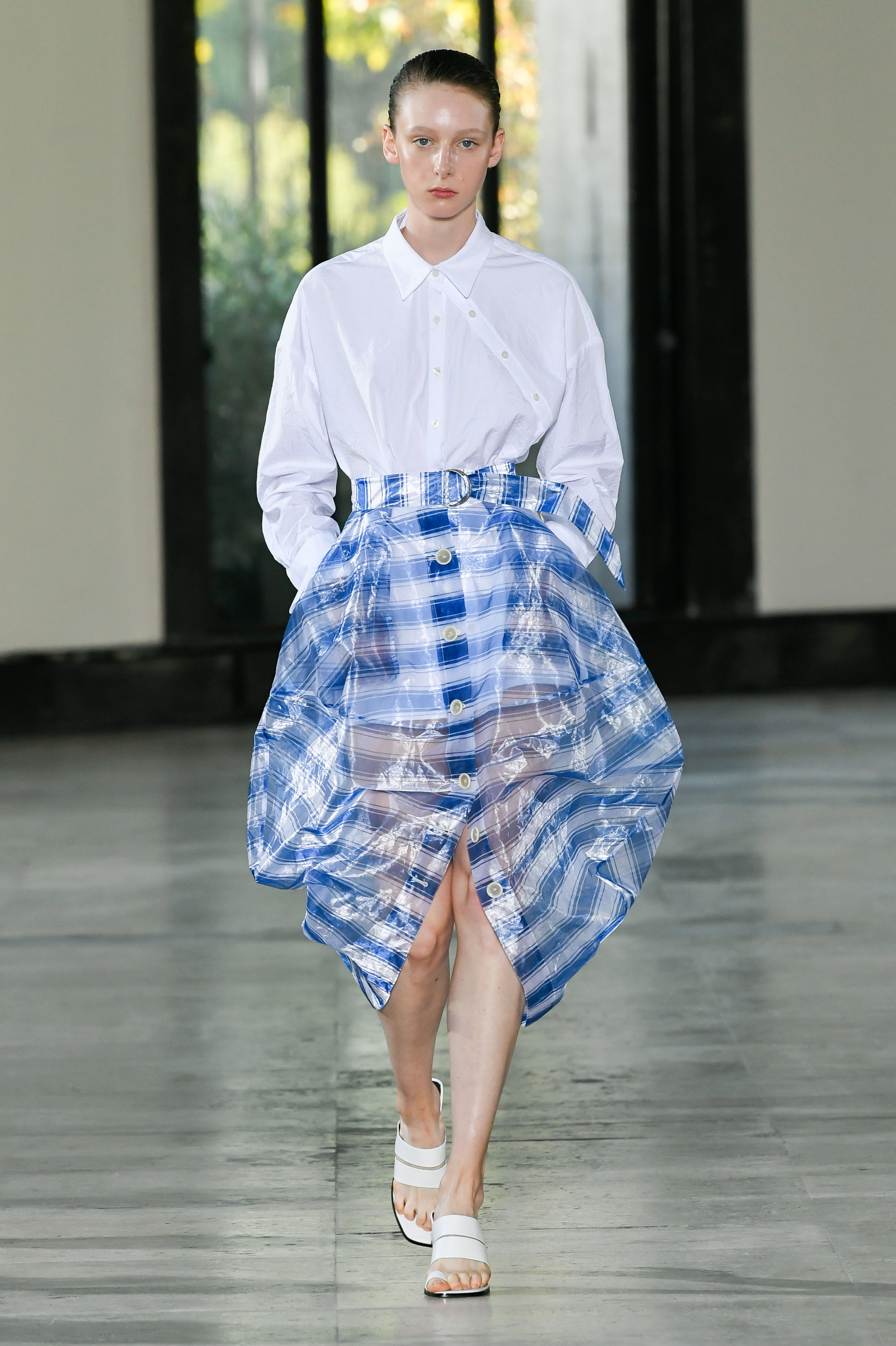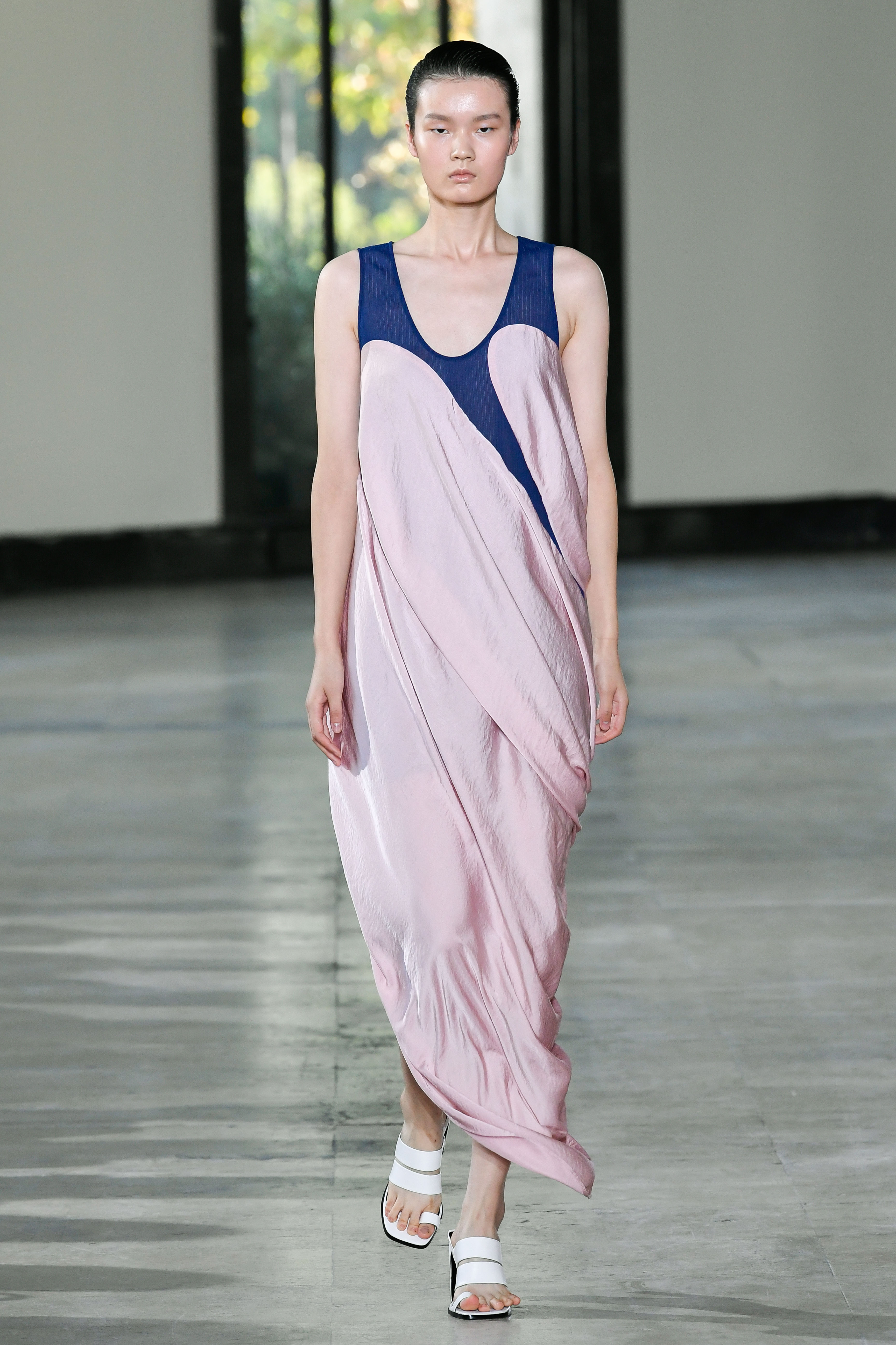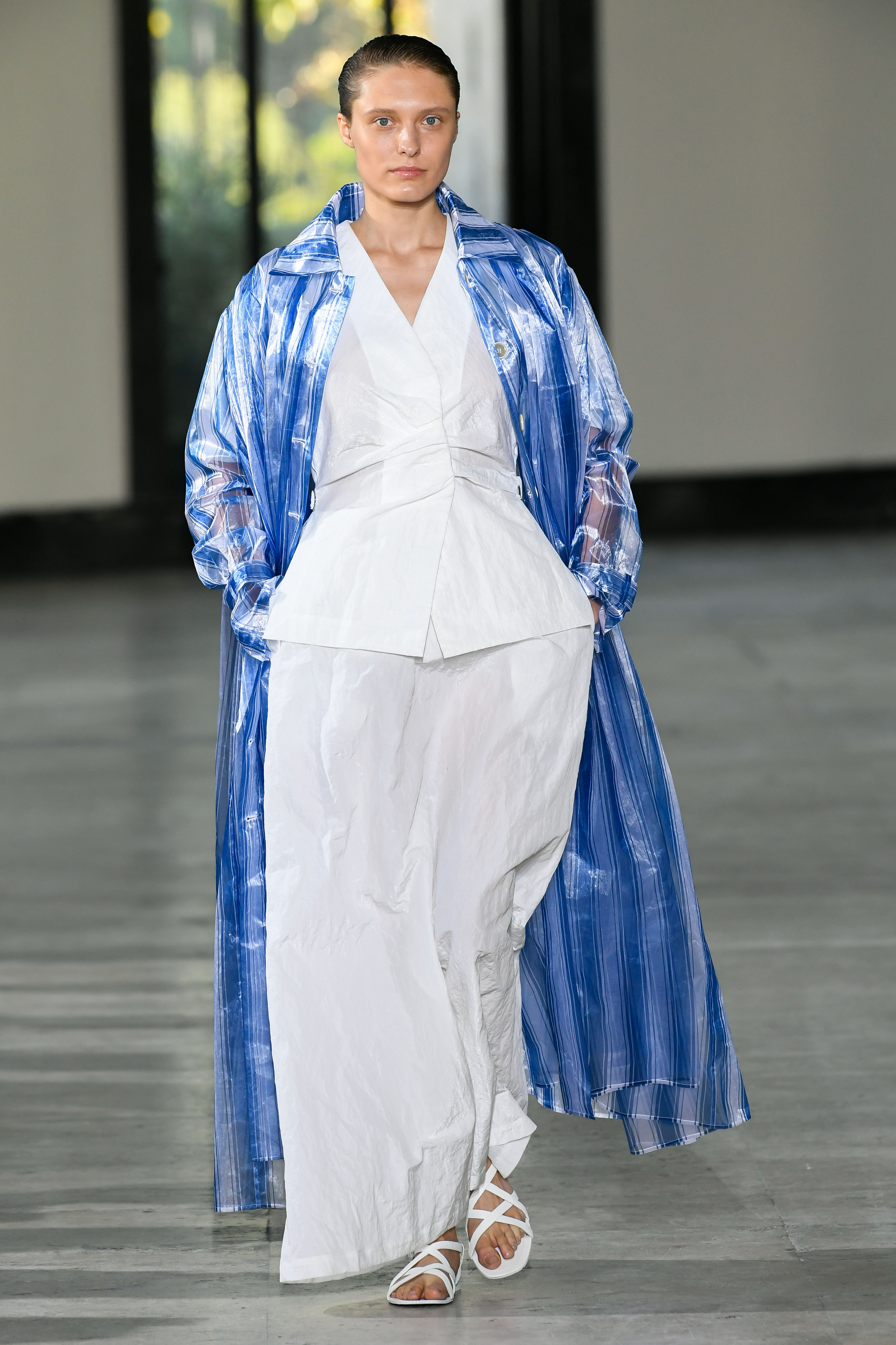 - Model wears an outfit , as part of the women ready-to-wear summer 2020, women fashion week, Milan, Ita, from the house of Dawei