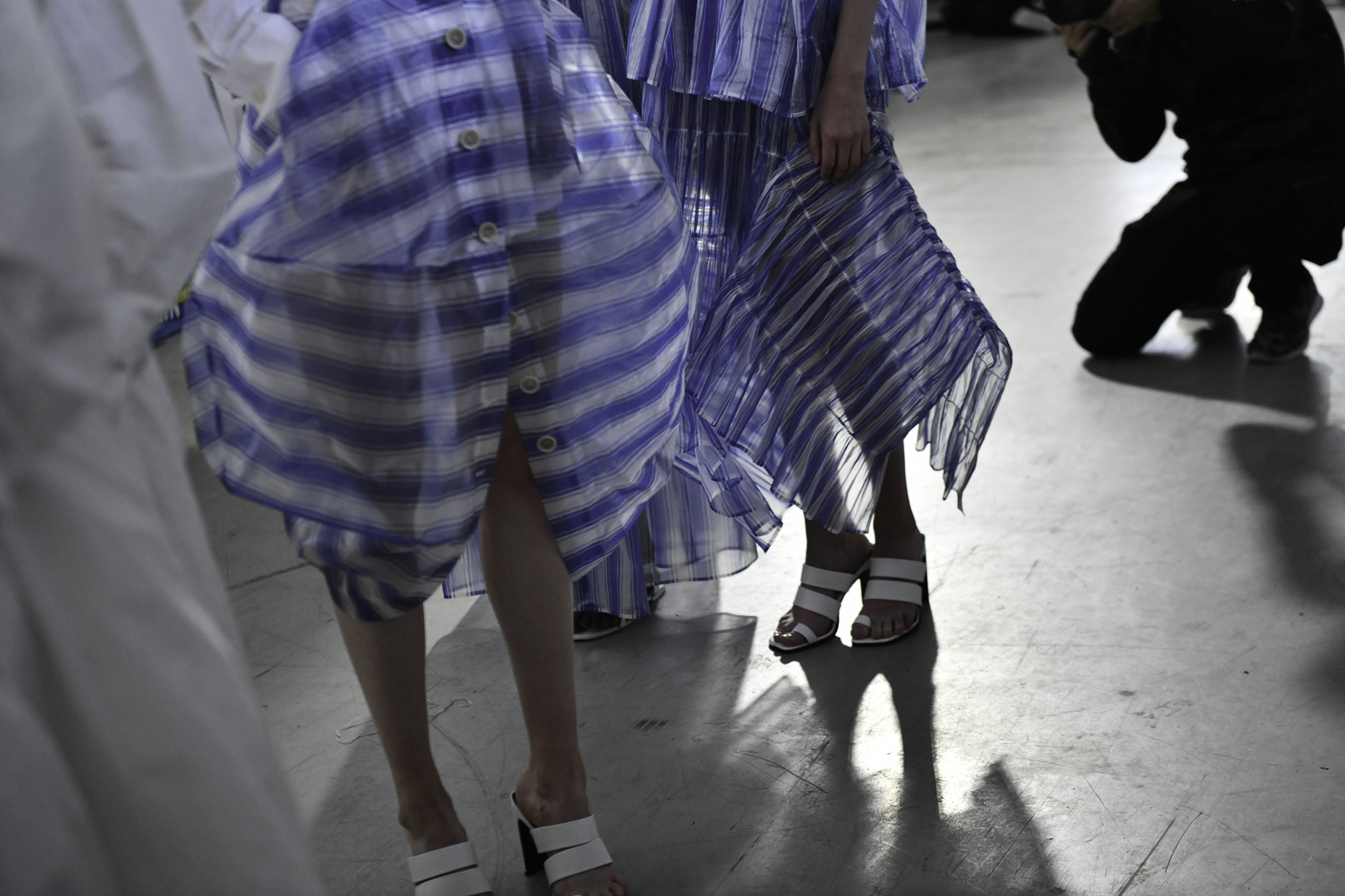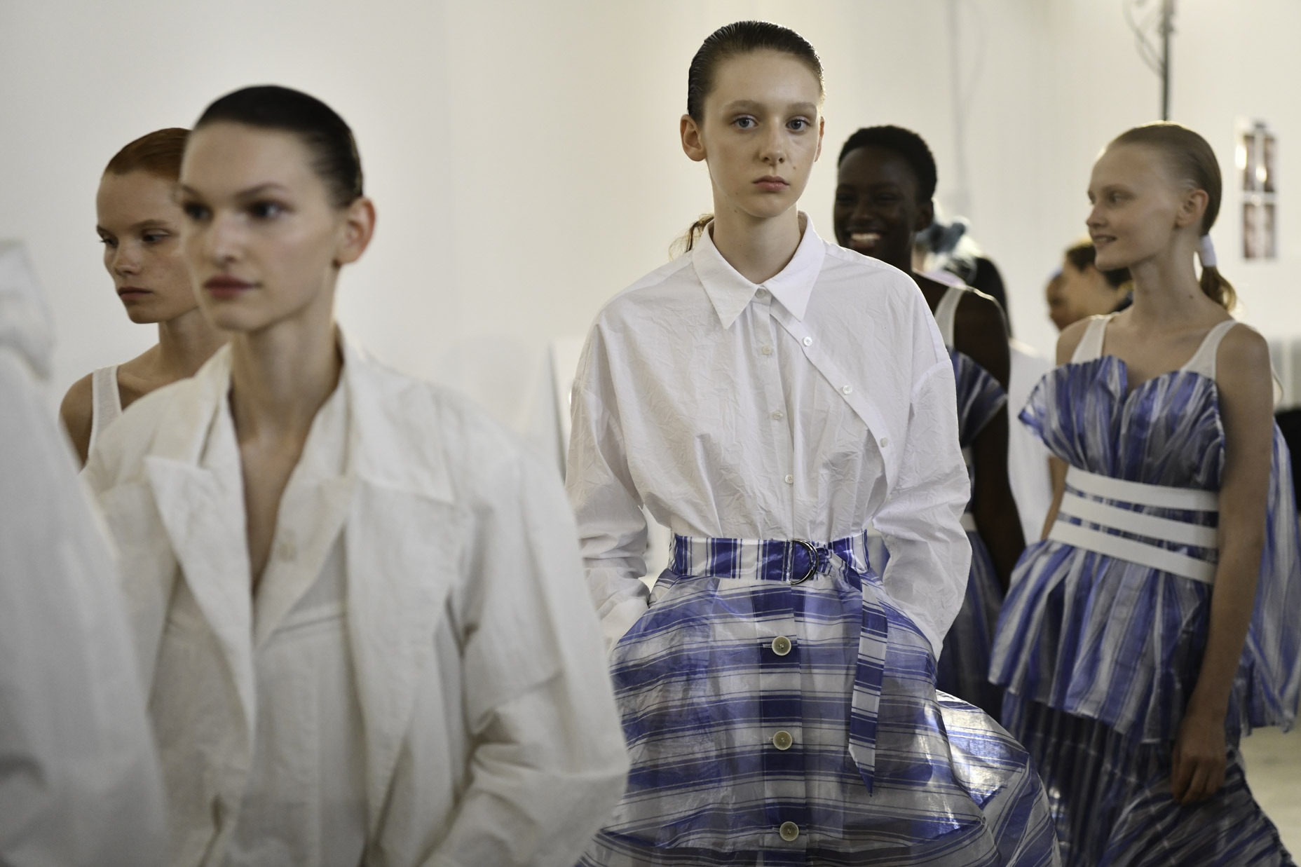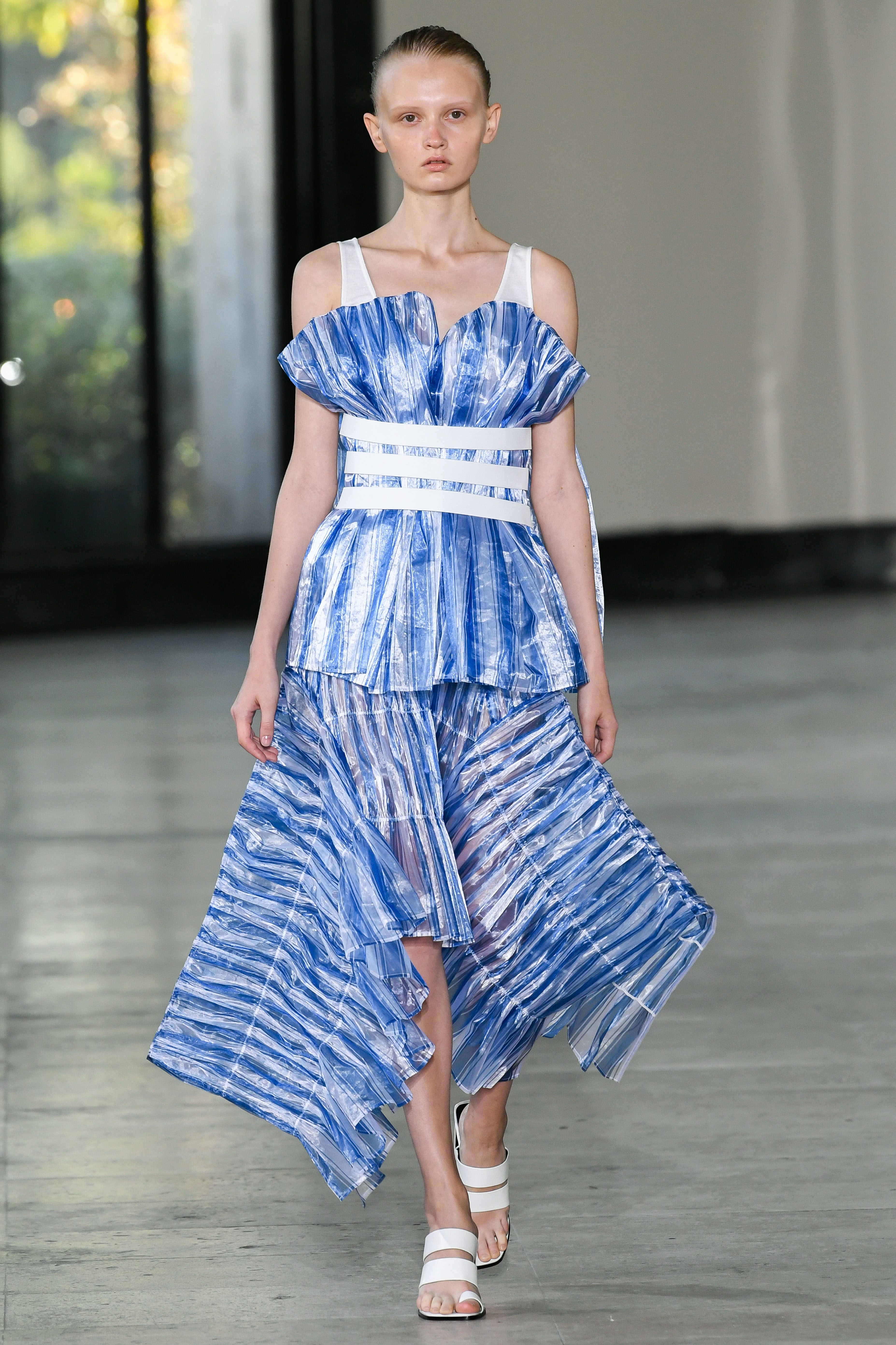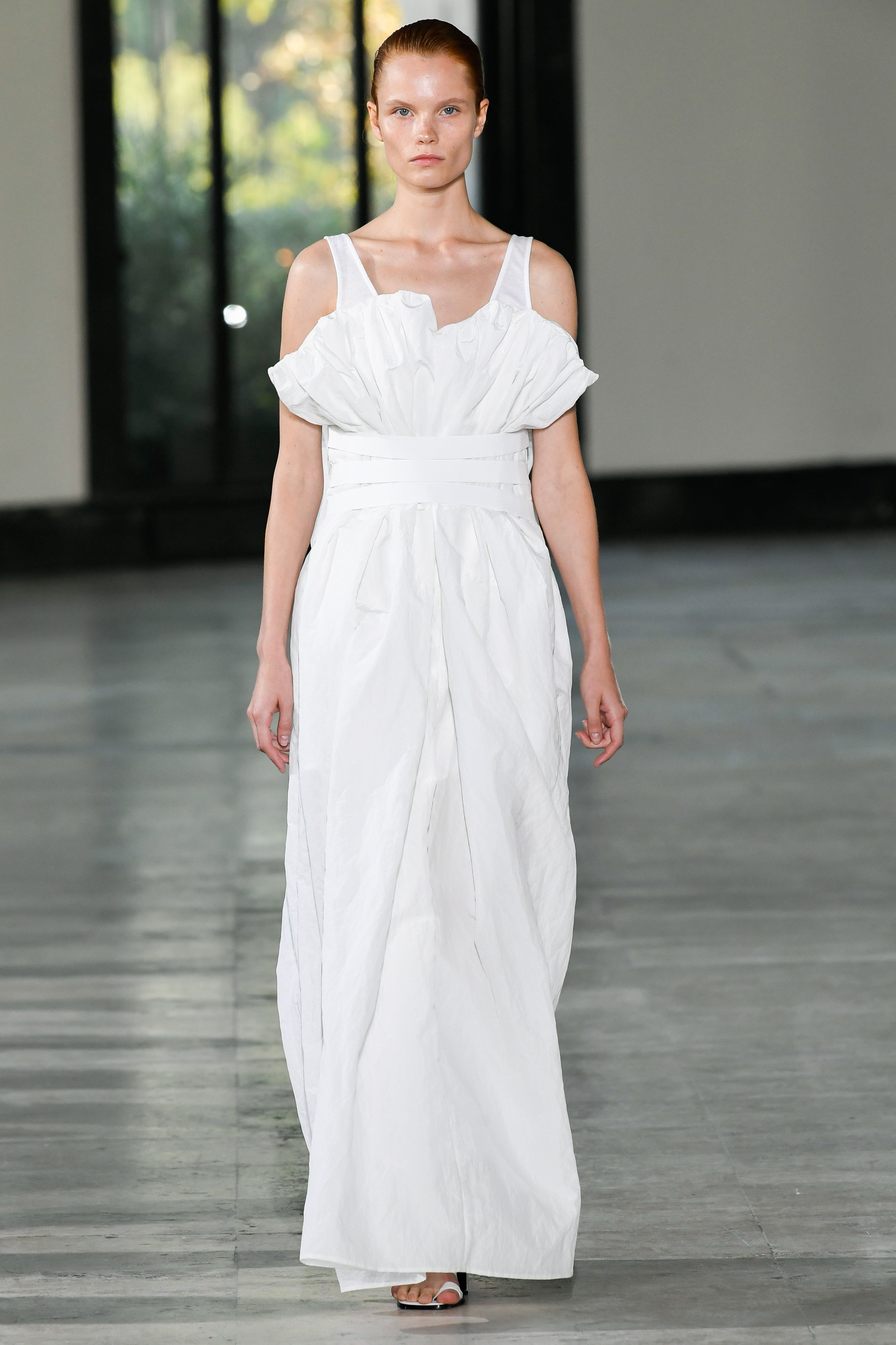 - Model wears an outfit , as part of the women ready-to-wear summer 2020, women fashion week, Milan, Ita, from the house of Dawei
