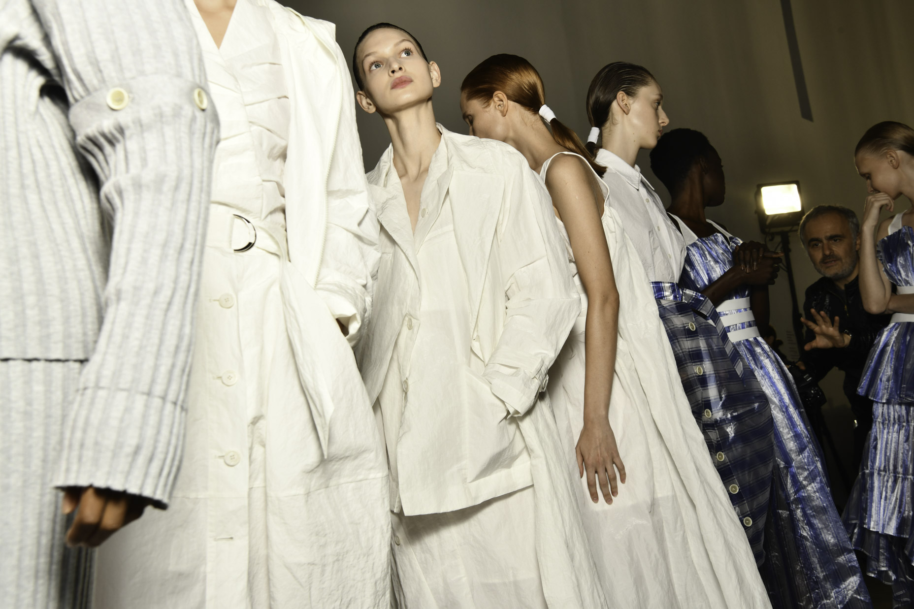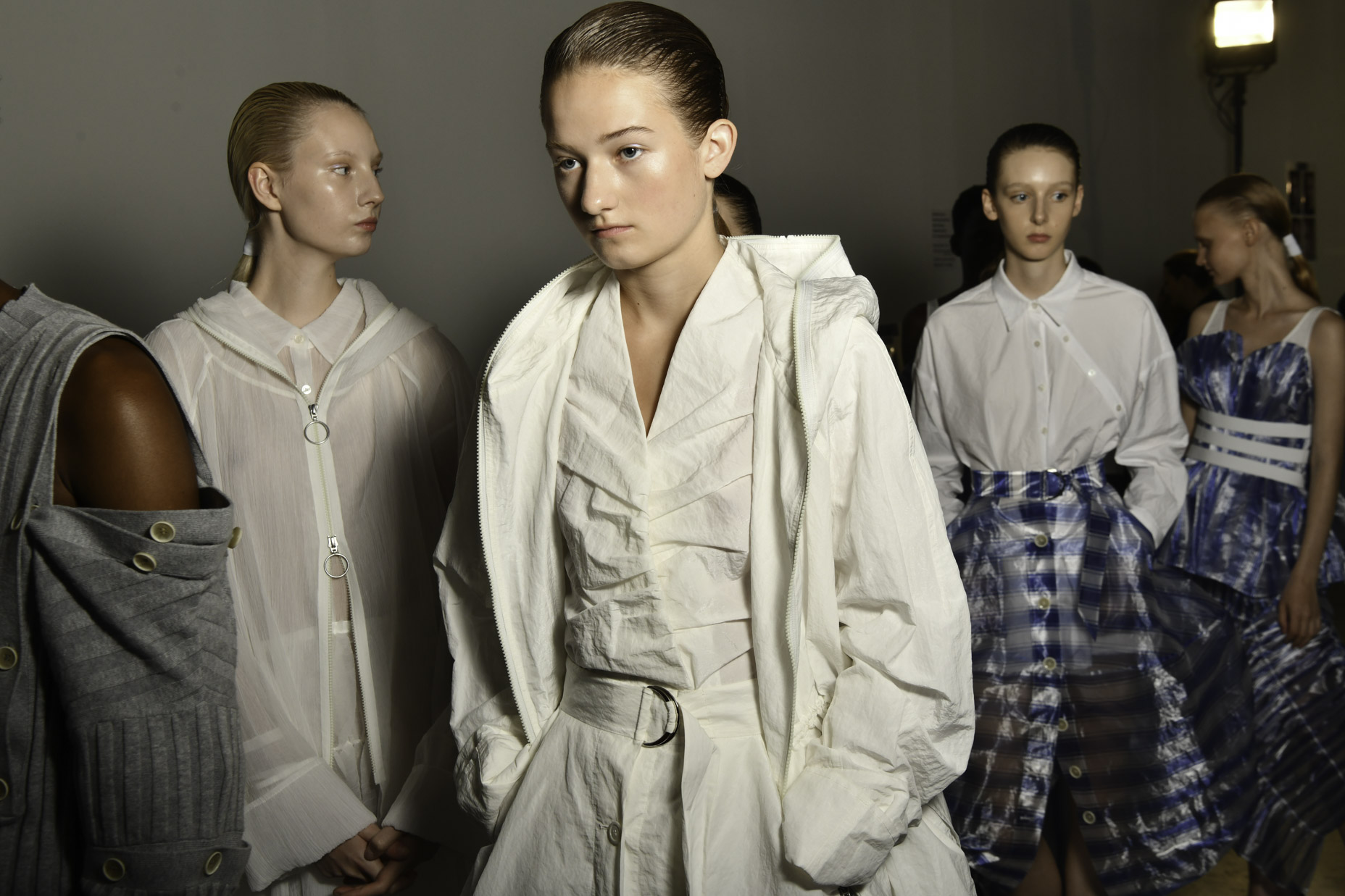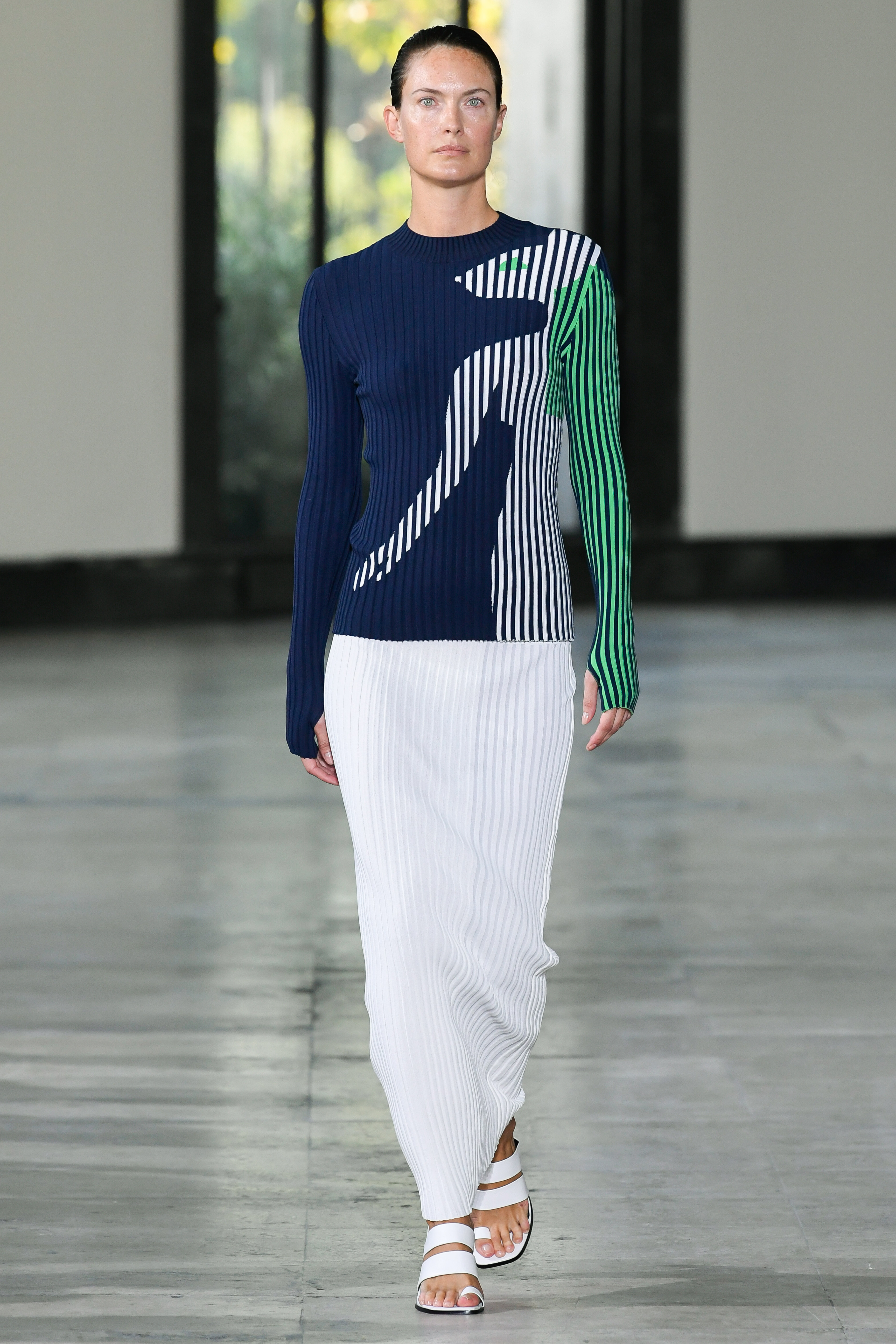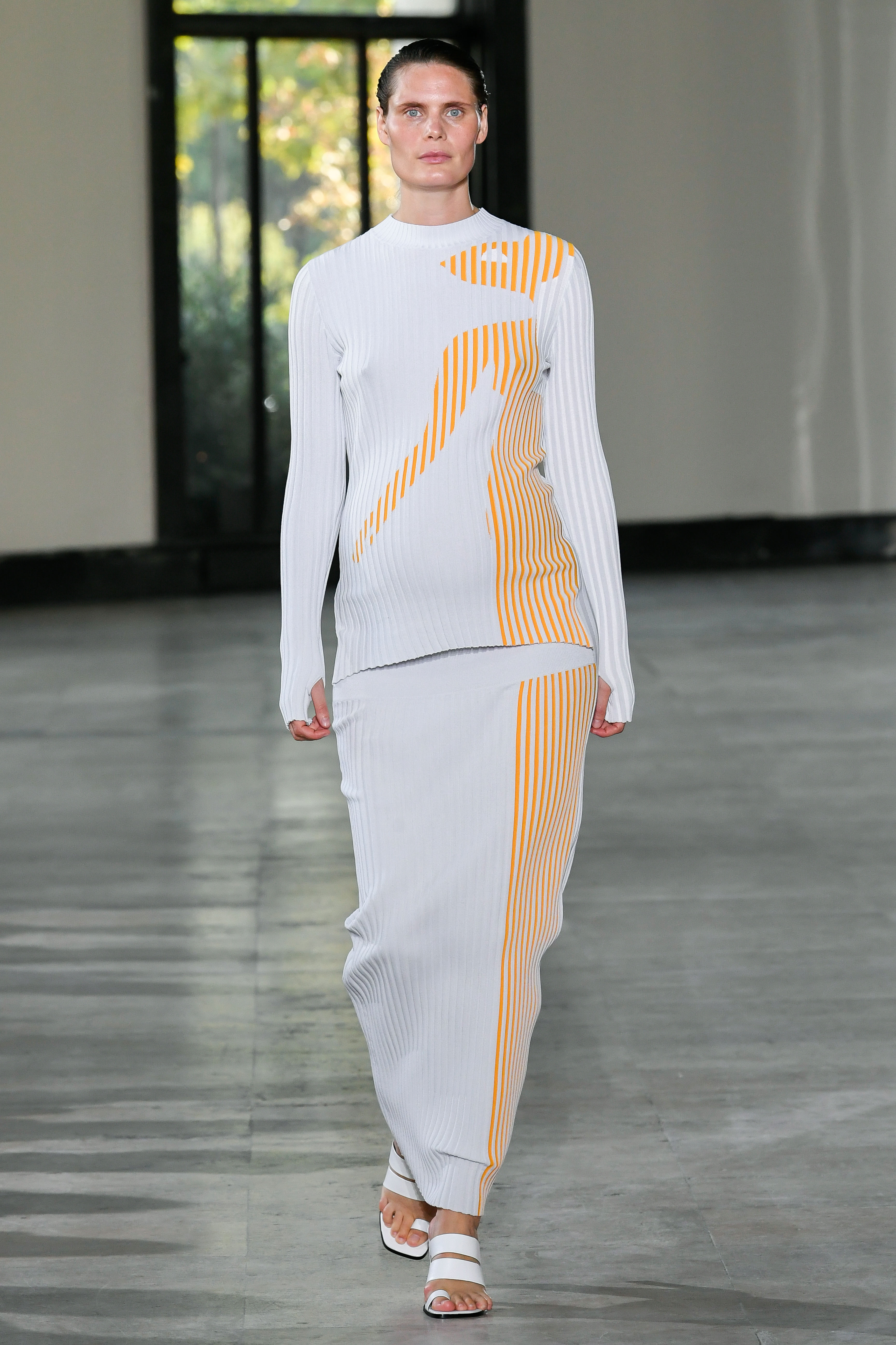- Model wears an outfit , as part of the women ready-to-wear summer 2020, women fashion week, Milan, Ita, from the house of Dawei