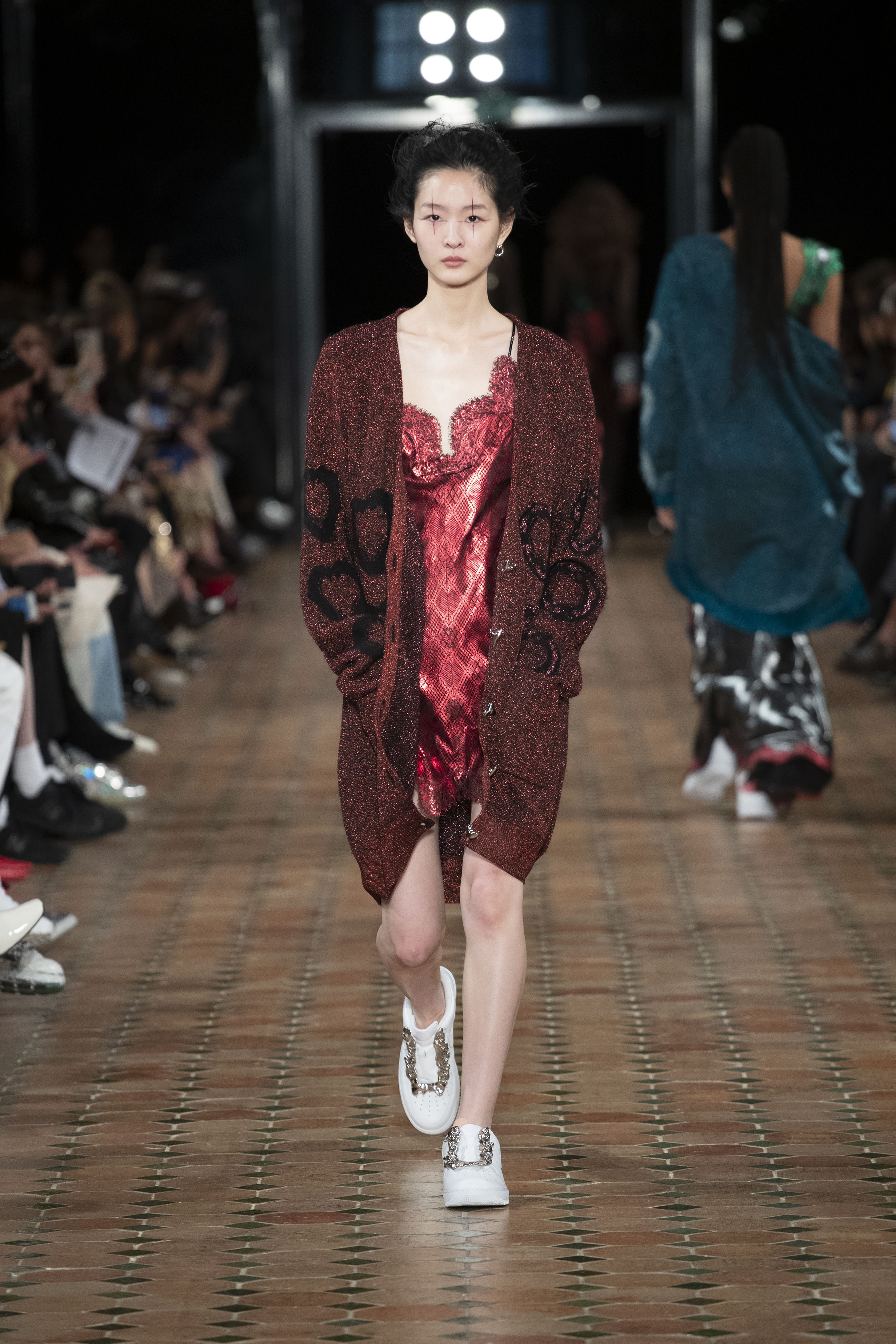 Et enveloppons nous dans de grands cardigans, leurs fermetures ornées de bijoux en forme de cœur,