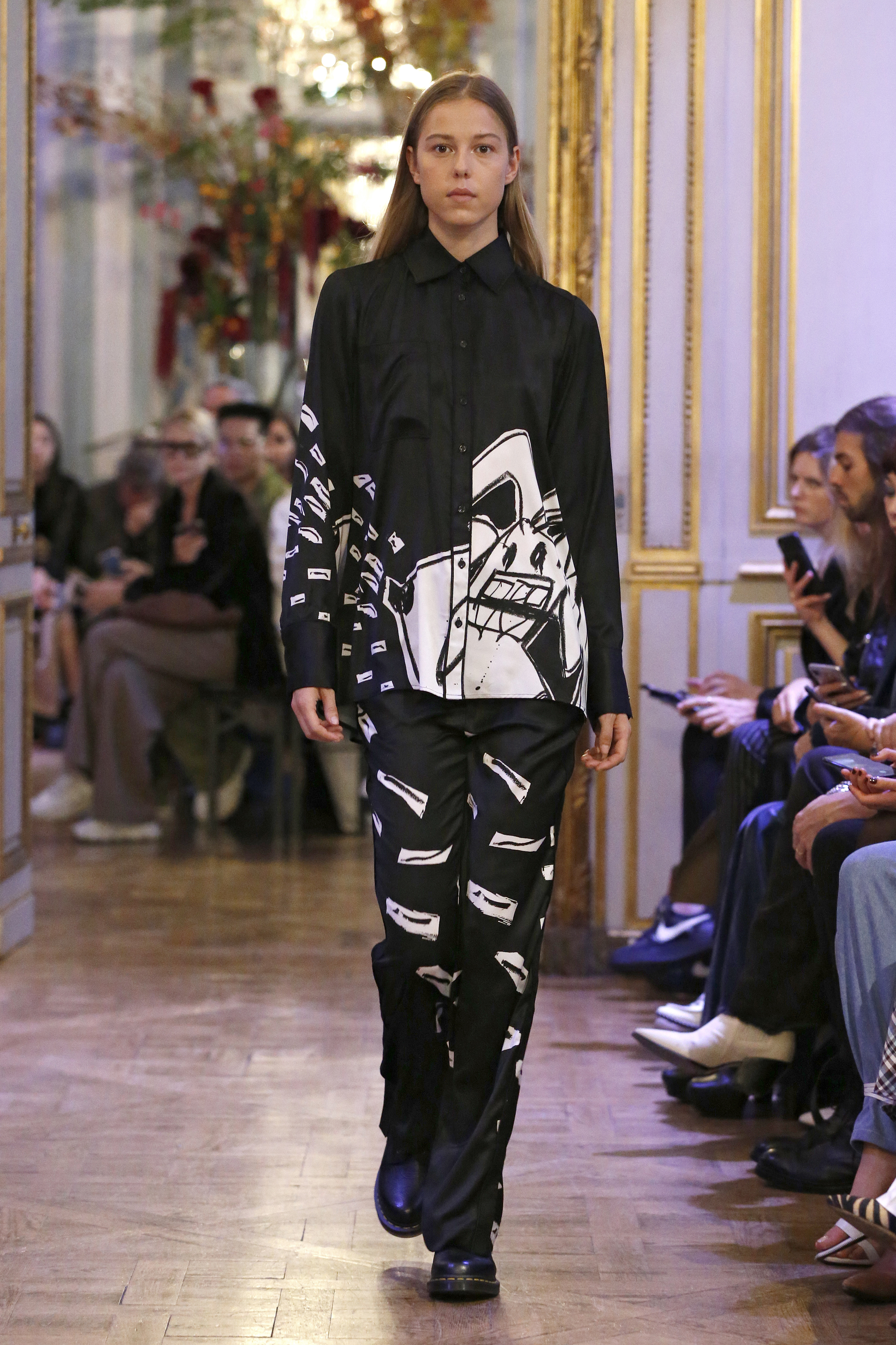 The Each Other x Austyn collection was presented at the American Center for Art & Culture in Paris during Paris Fashion Week, to music by world-renowned DJ and longtime friend of Austyn’s, Blondish. For the occasion the artist dressed her long time best friend and muse Gigi Hadid in a nostalgic look borrowed from her own childhood in Miami and inspired by her Mother: a New Yorker living in the tropics, who wore black turtlenecks year around. Gigi’s look at the Each Other show was all about playfulness and individuality, a flower print turtle-neck from the collection and brown leather jacket; channeling the idea of a dark summer. The collaboration was designed in Austyn’s studio in Los Angeles.