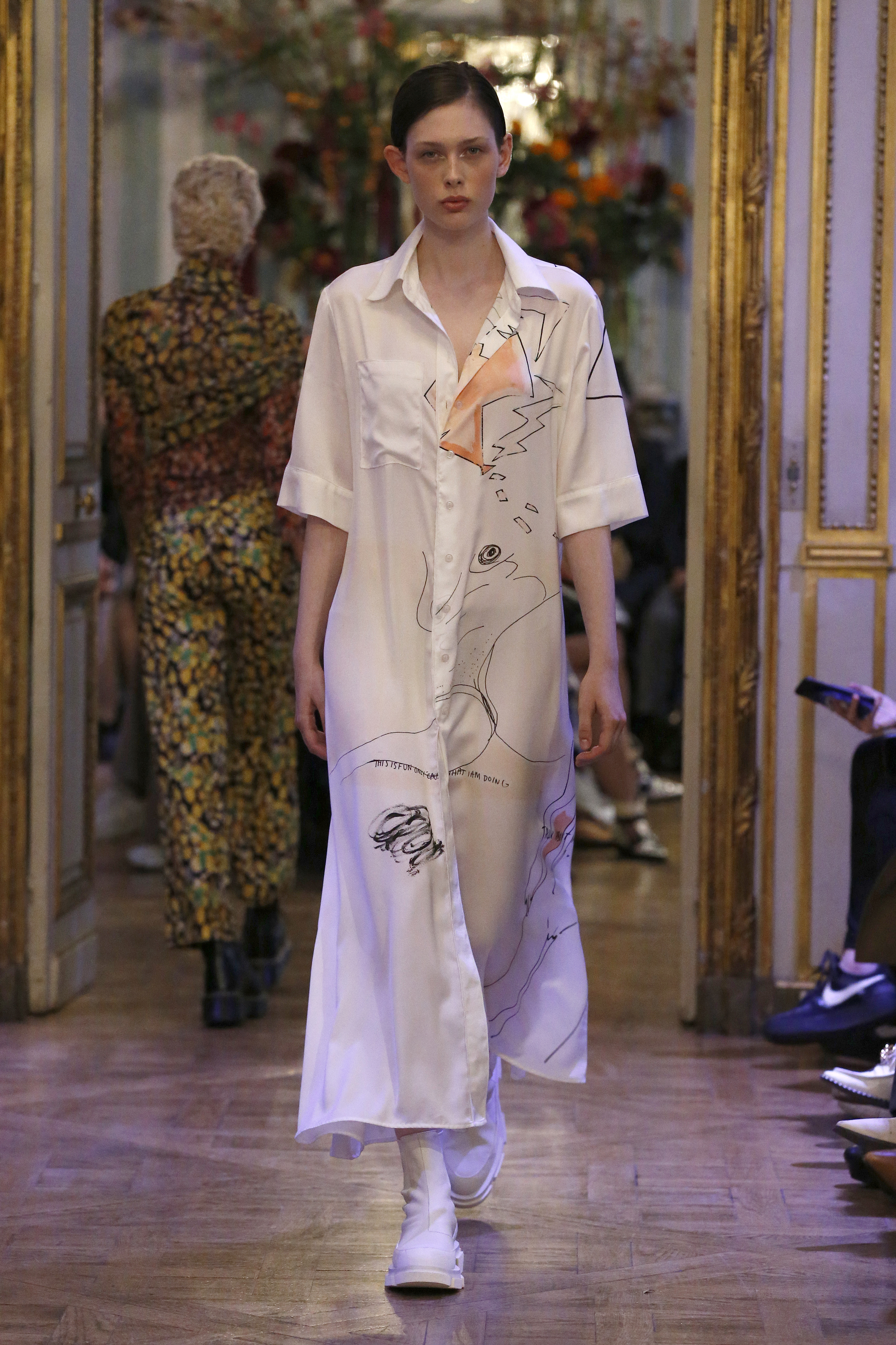 These are Austyn Weiner’s words to describe her capsule with Each Other for its Spring Summer 2020 collection, her first ever fashion collaboration. For the collaboration, the artist, Austyn, transformed a selection of her paintings, drawings and text-based works into hand-painted and printed textiles, fluid forms and silhouettes reflective of her own figure: both vulnerable and honest. Through this collaboration, Austyn has given her work an additional dimension, a new texture, and physical motion.