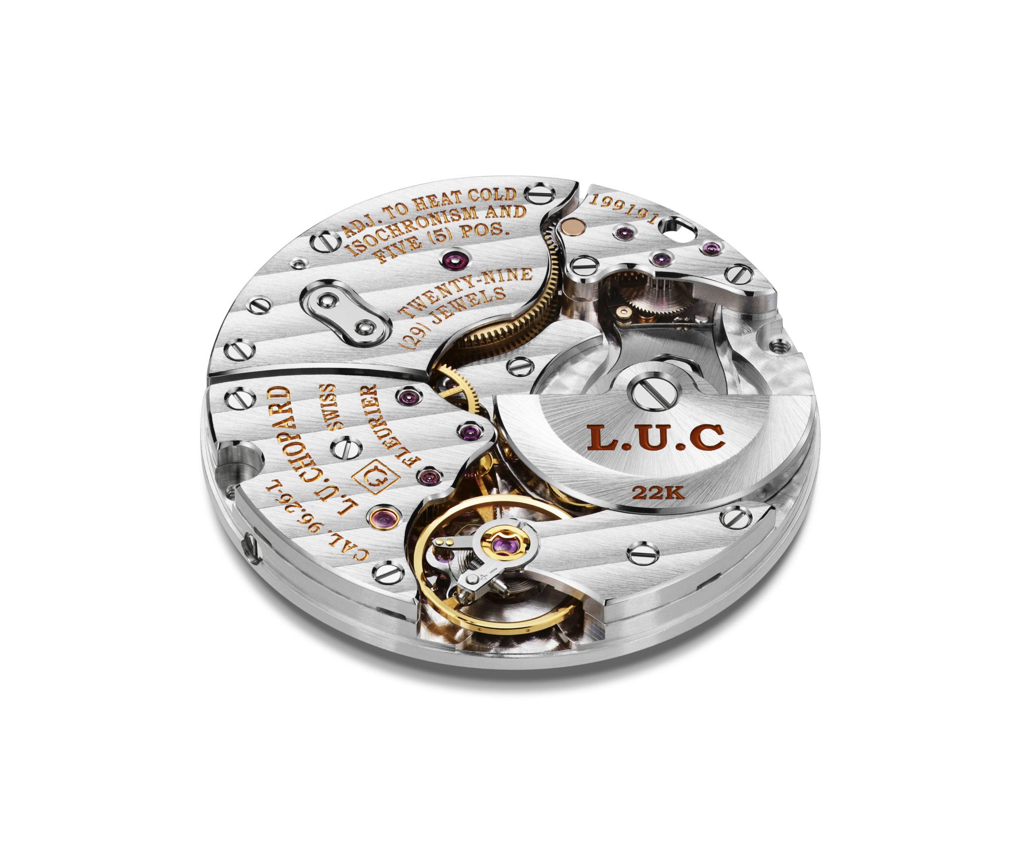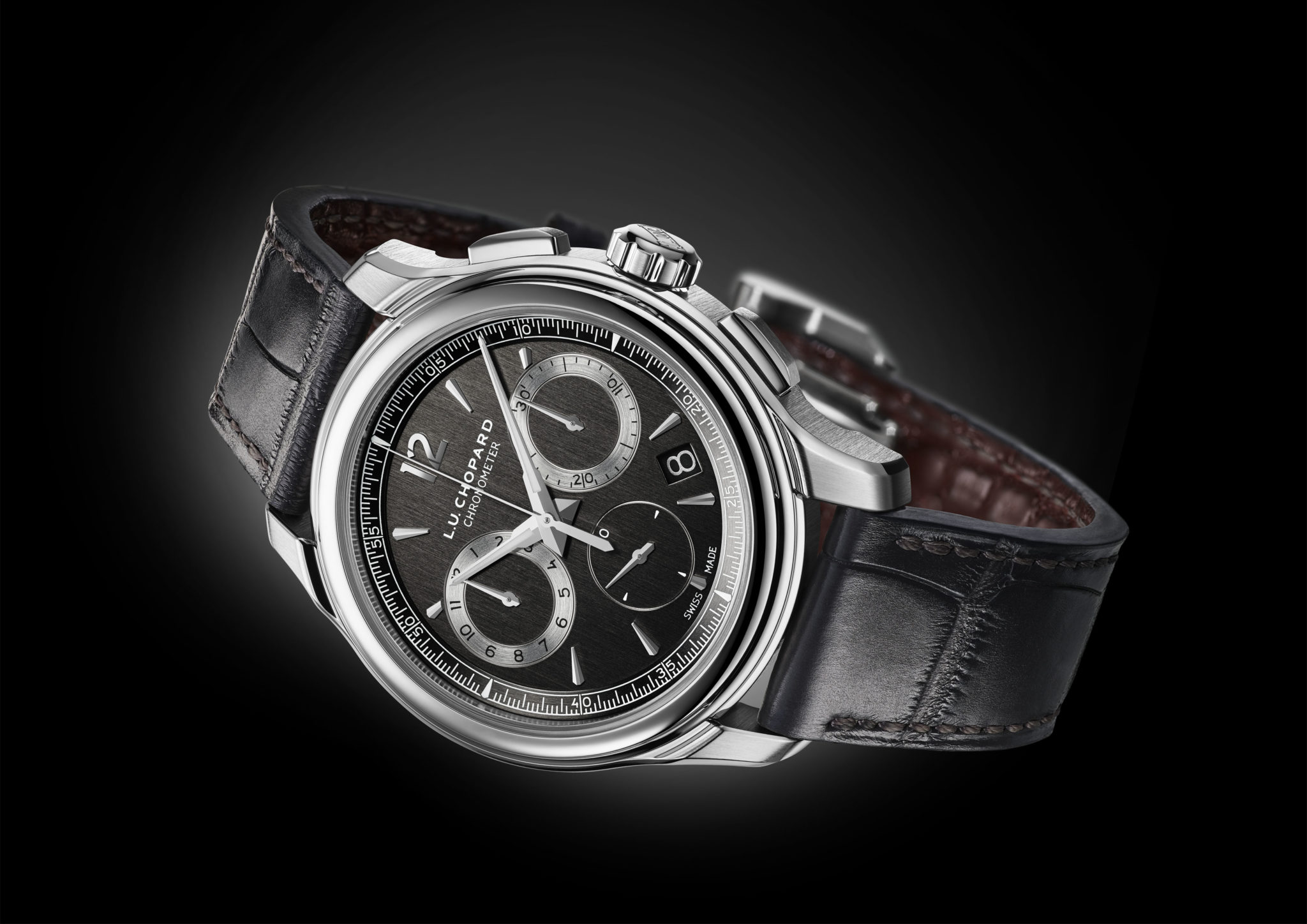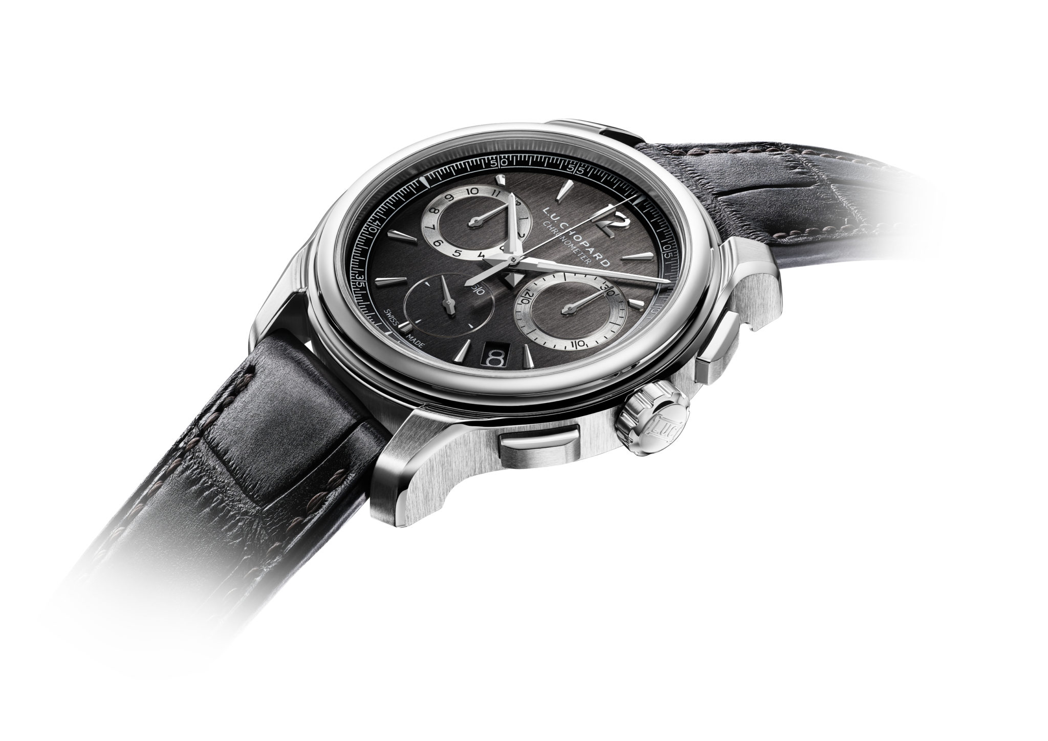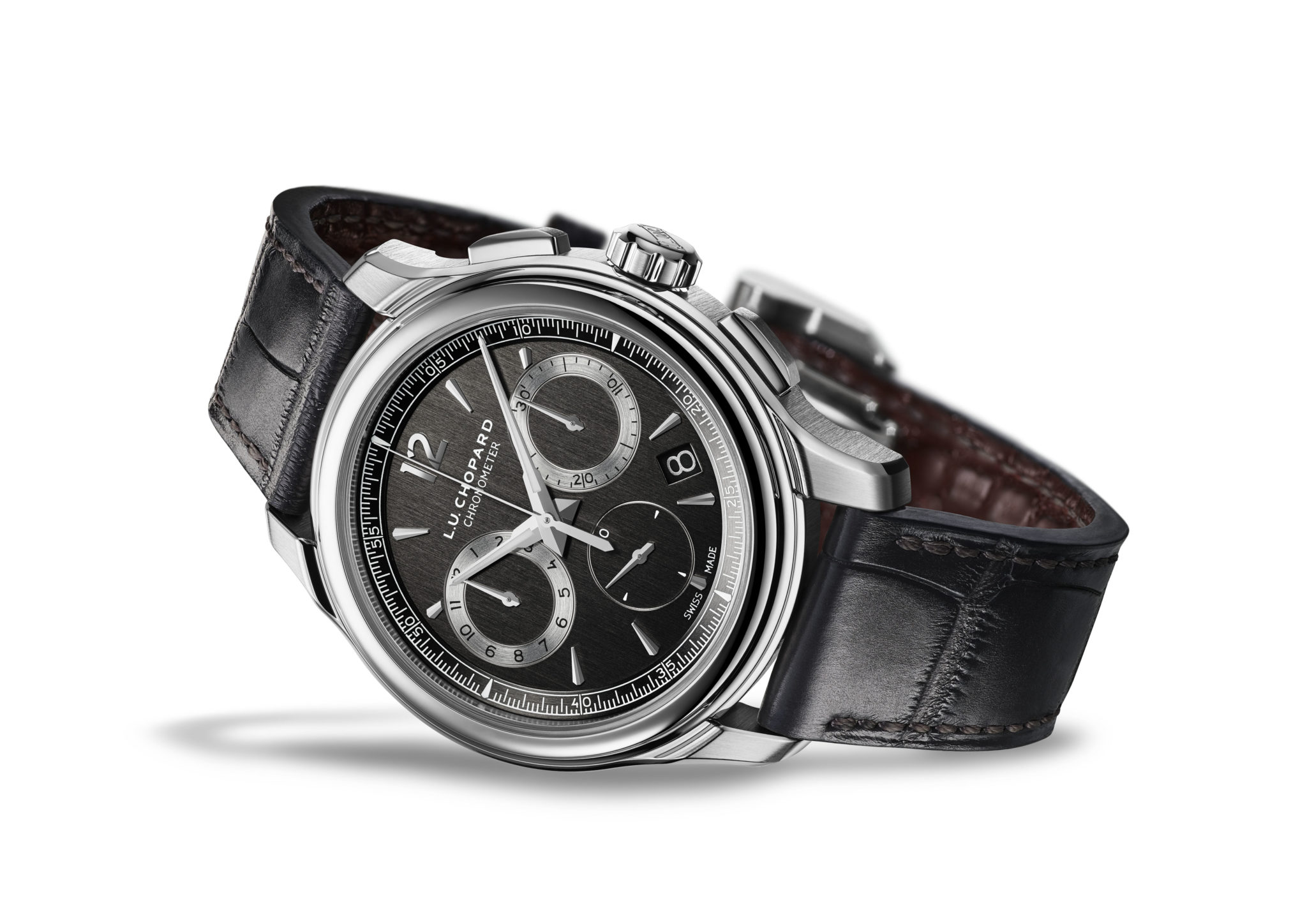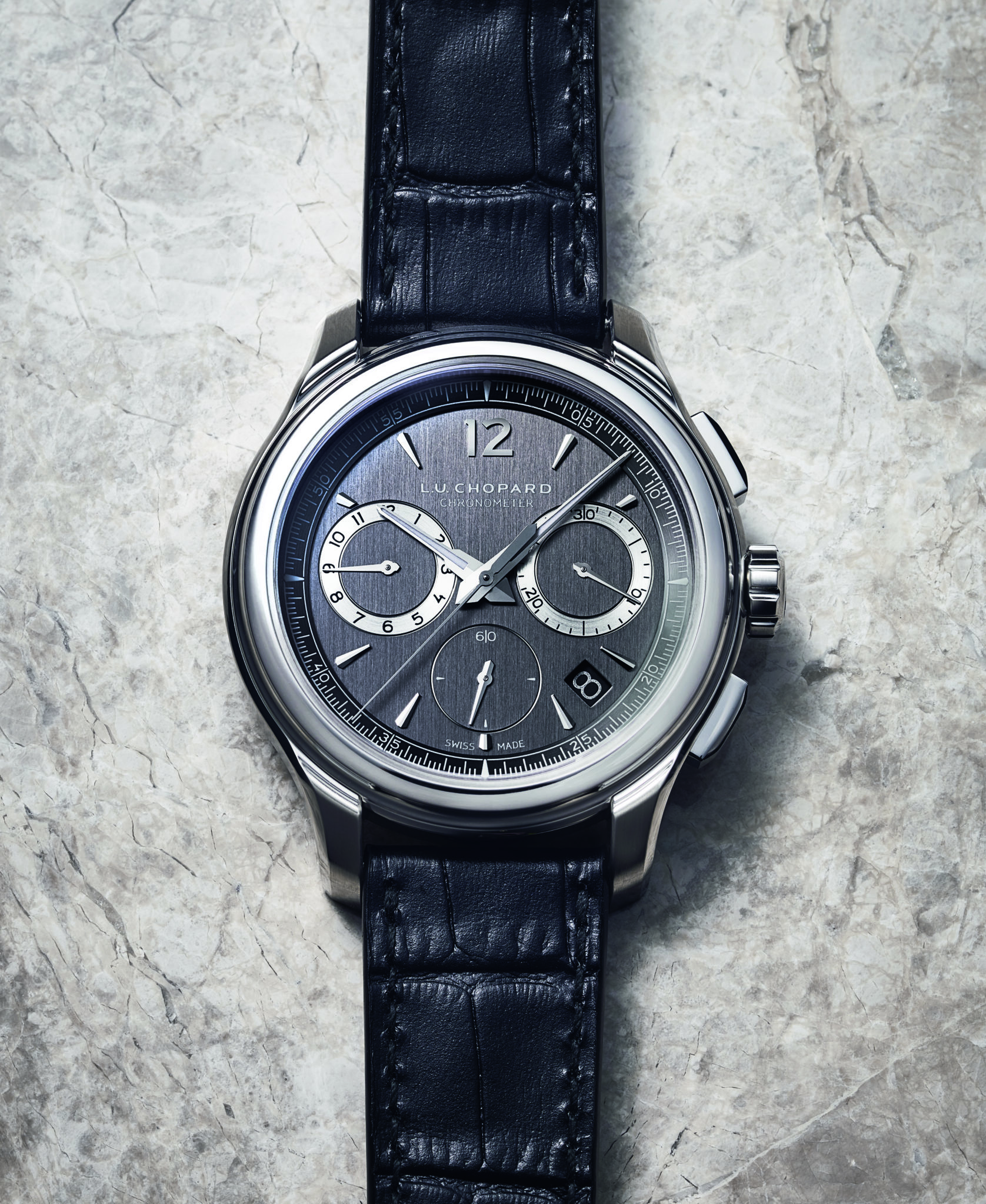 Avec le chic de son camaïeu de gris, le garde-temps L.U.C Chrono One Flyback est imprégné de l’élégance décontractée, contemporaine et maîtrisée qui est la signature unique des créations L.U.C. Limité à 250 exemplaires en acier, il est équipé d’un calibre certifié chronomètre, conçu et assemblé au sein de Chopard Manufacture. Le mouvement L.U.C 03.03-L, d’une durée de marche de 60 heures, est de type retour en vol, ce qui permet au L.U.C Chrono One Flyback de mesurer des temps courts à la volée. En effet, la fonction flyback permet de remettre les compteurs à zéro et de relancer un chronométrage d’une seule pression. Le calibre est également équipé d’un stop seconde, qui autorise une mise à l’heure de grande précision. Enfin, il est doté d’un rotor ajouré en or 22 carats. Toutes ces technologies mises au point par les équipes de recherche et développement de Chopard font l’objet de 4 brevets.