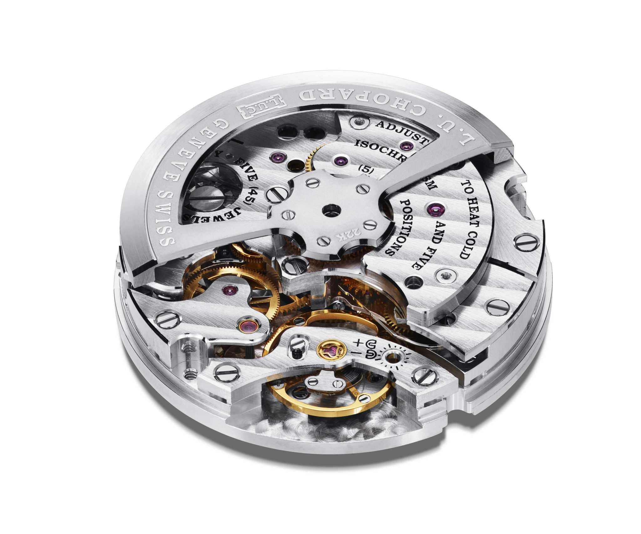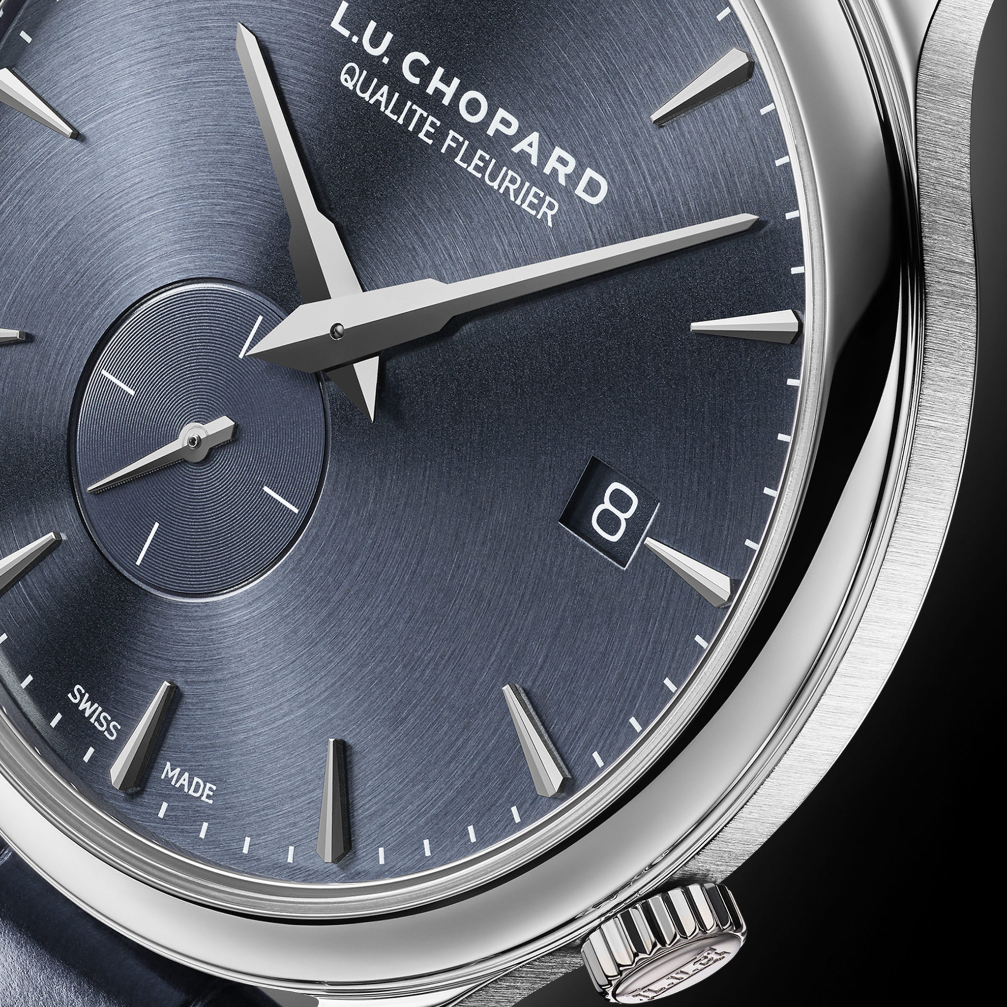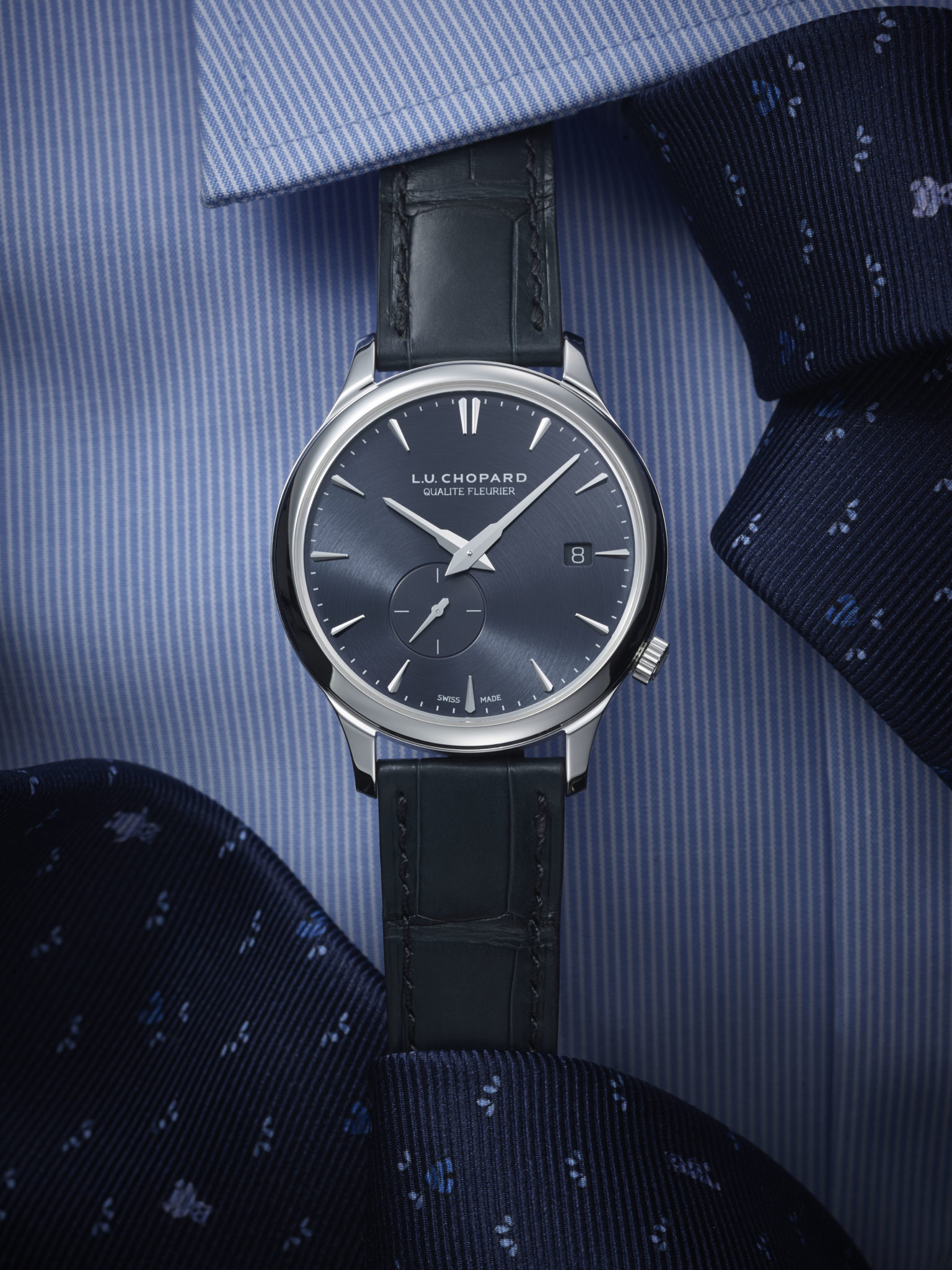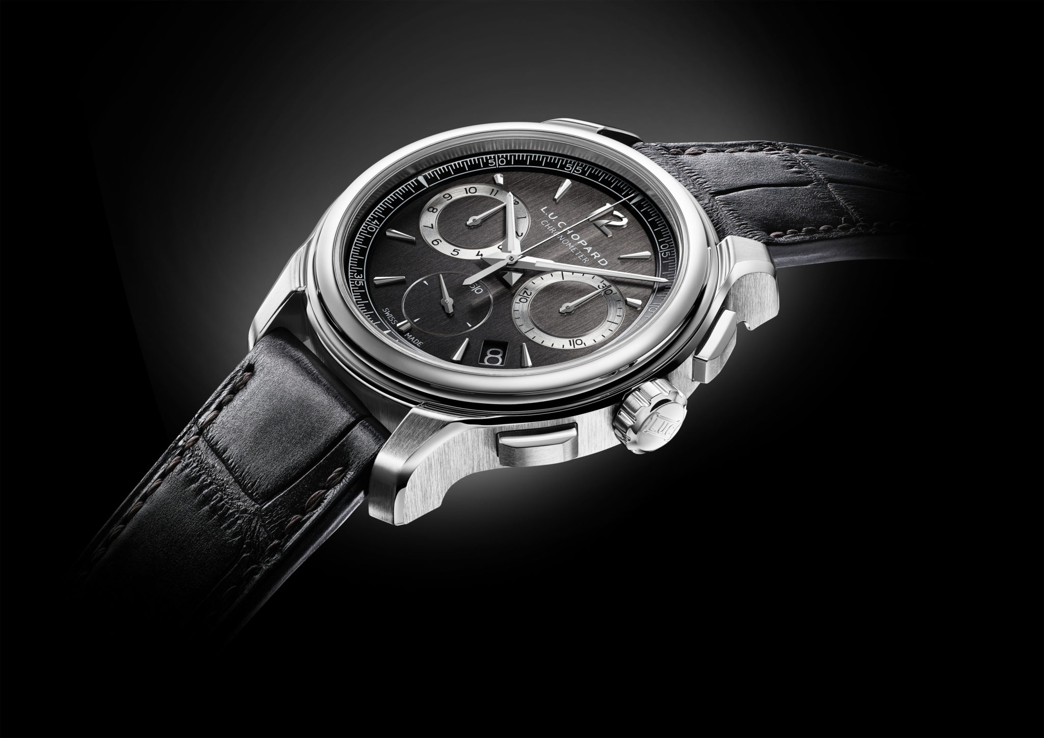 Avec le chic de son camaïeu de gris, le garde-temps L.U.C Chrono One Flyback est imprégné de l’élégance décontractée, contemporaine et maîtrisée qui est la signature unique des créations L.U.C. Limité à 250 exemplaires en acier, il est équipé d’un calibre certifié chronomètre, conçu et assemblé au sein de Chopard Manufacture. Le mouvement L.U.C 03.03-L, d’une durée de marche de 60 heures, est de type retour en vol, ce qui permet au L.U.C Chrono One Flyback de mesurer des temps courts à la volée. En effet, la fonction flyback permet de remettre les compteurs à zéro et de relancer un chronométrage d’une seule pression. Le calibre est également équipé d’un stop seconde, qui autorise une mise à l’heure de grande précision. Enfin, il est doté d’un rotor ajouré en or 22 carats. Toutes ces technologies mises au point par les équipes de recherche et développement de Chopard font l’objet de 4 brevets.